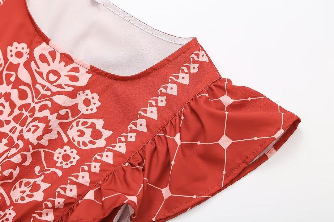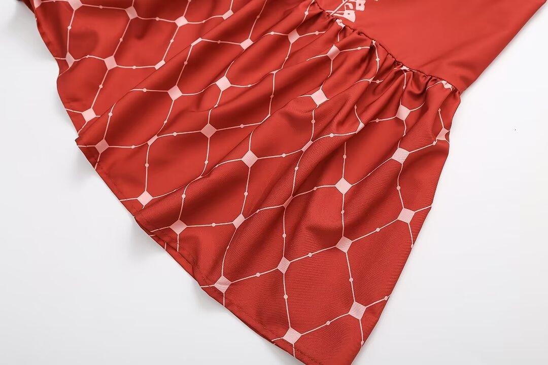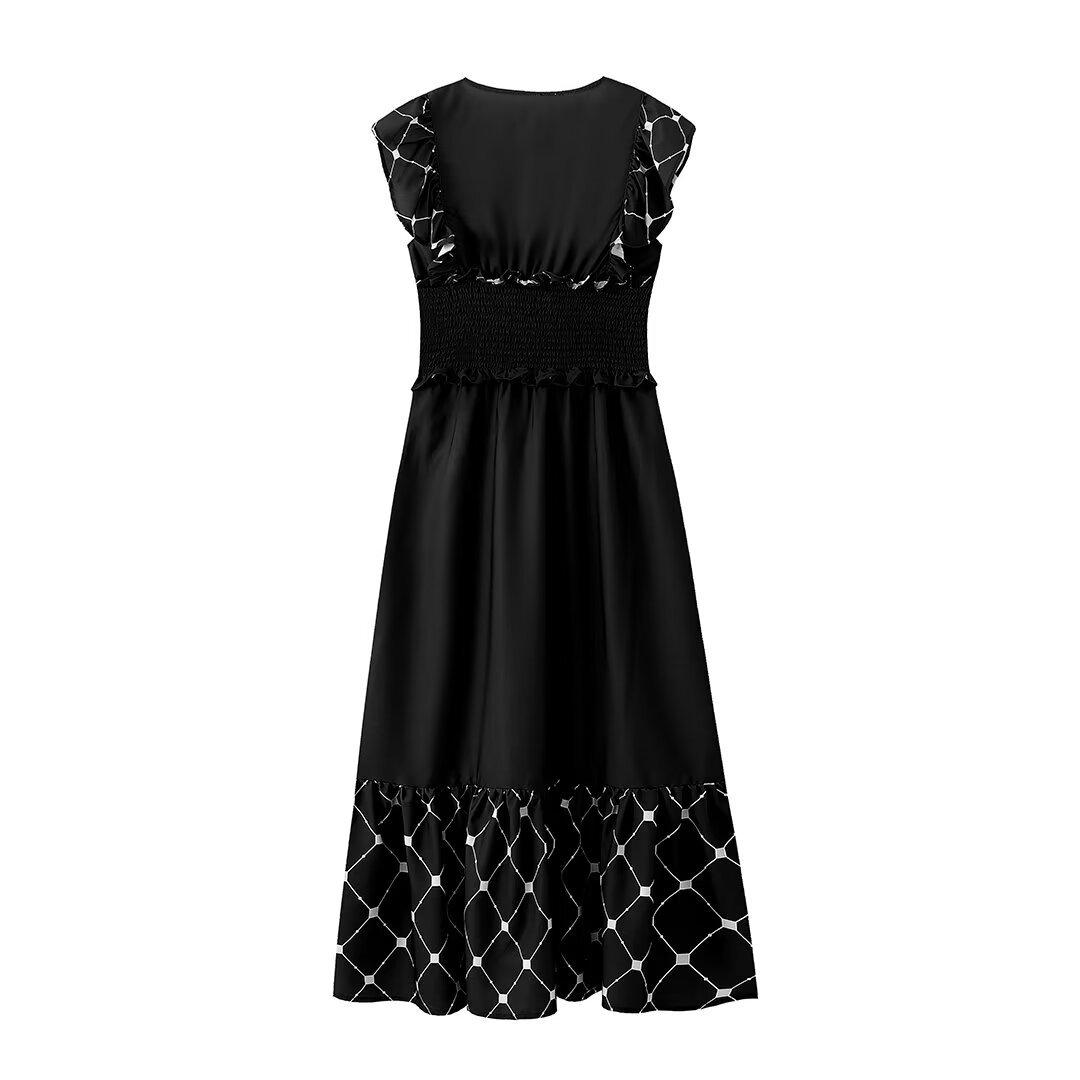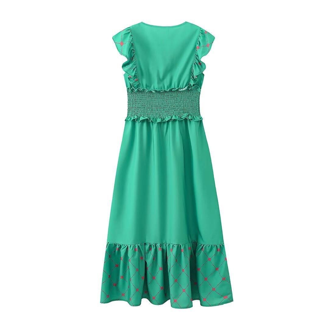 2024 Verano Nuevo Ropa de Mujer Estilo Europeo y Americano Moda Casual Vestido Estampado Tricolor Cintura Ajustada
