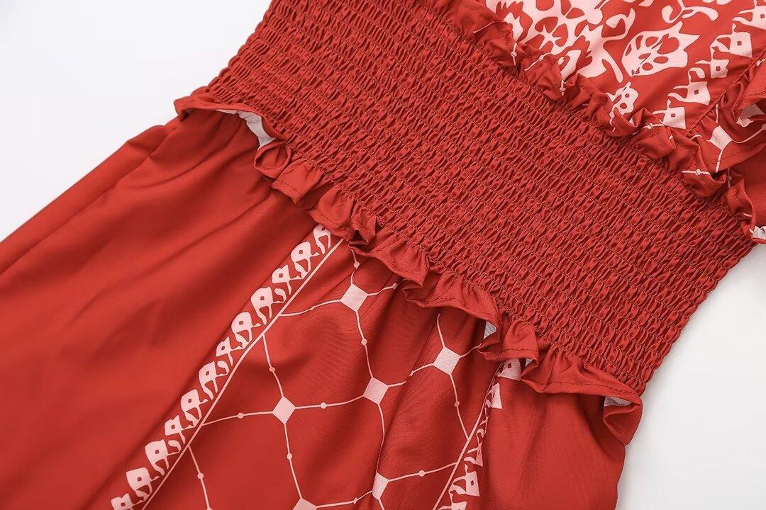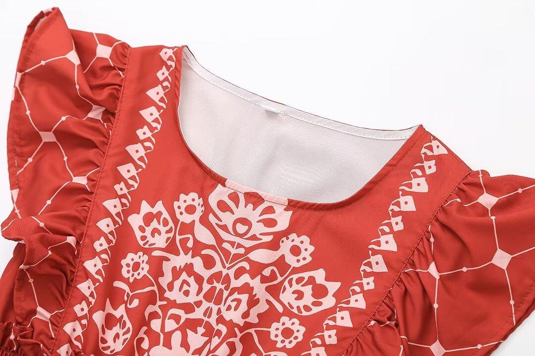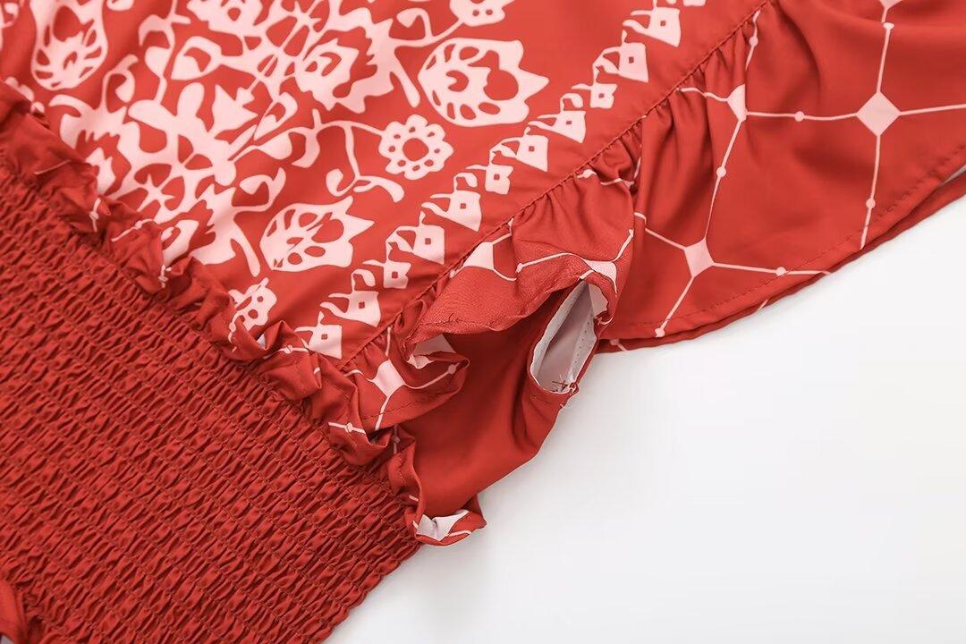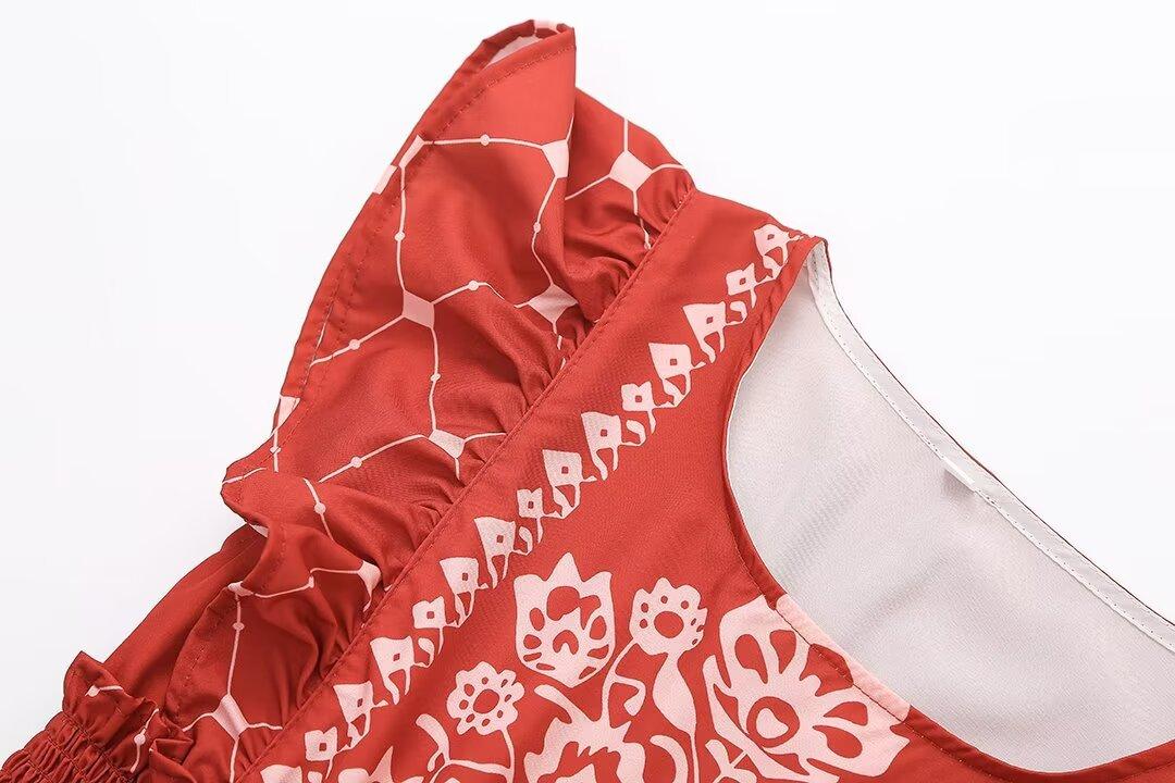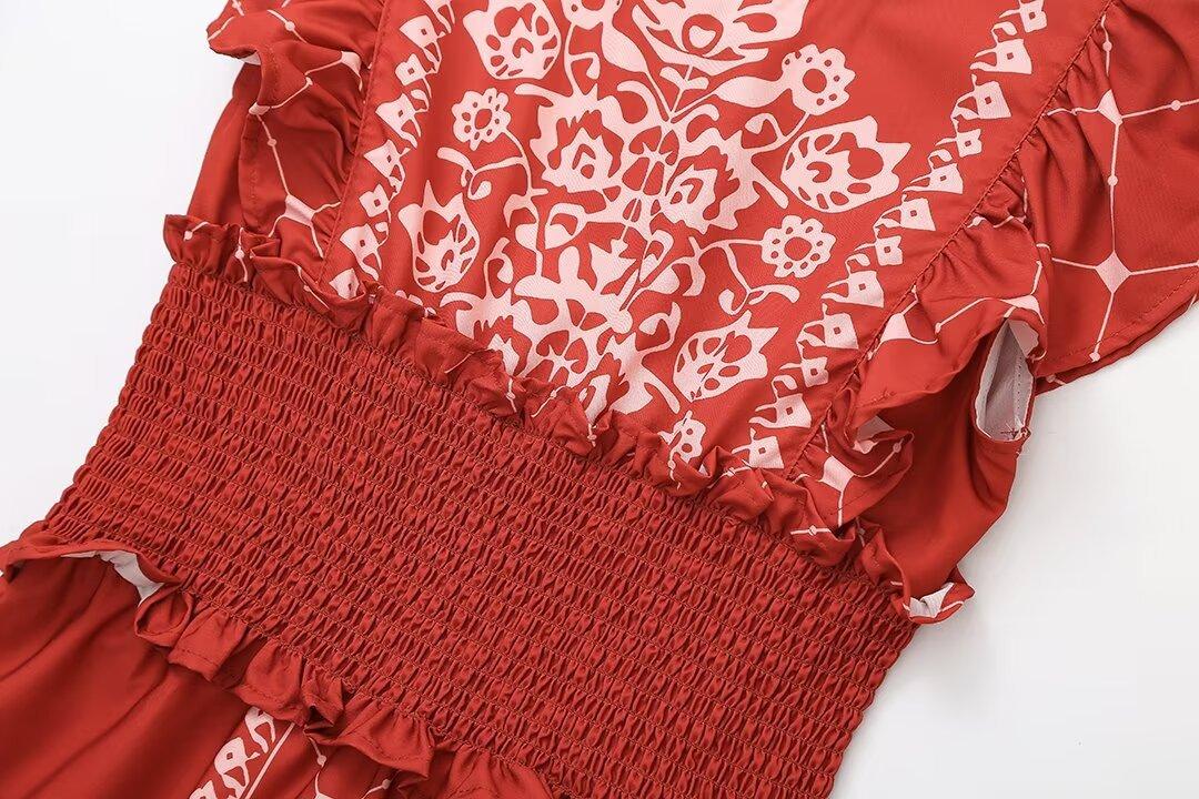 2024 Verano Nuevo Ropa de Mujer Estilo Europeo y Americano Moda Casual Vestido Estampado Tricolor Cintura Ajustada