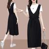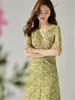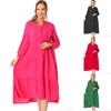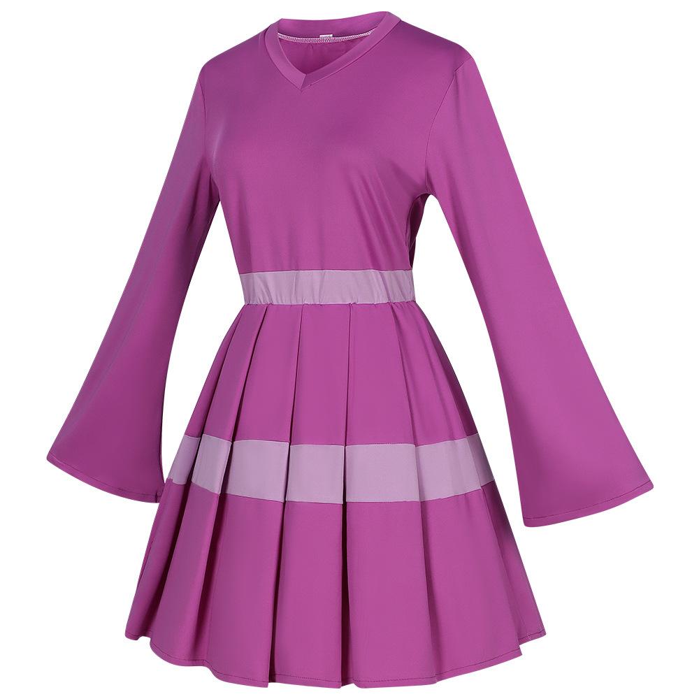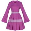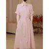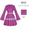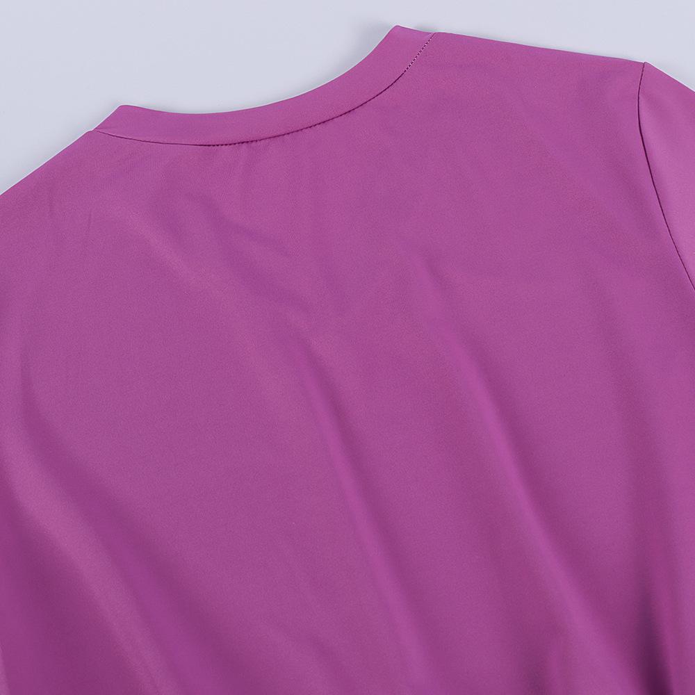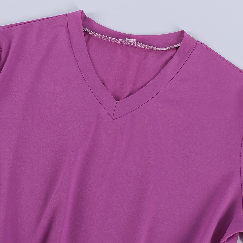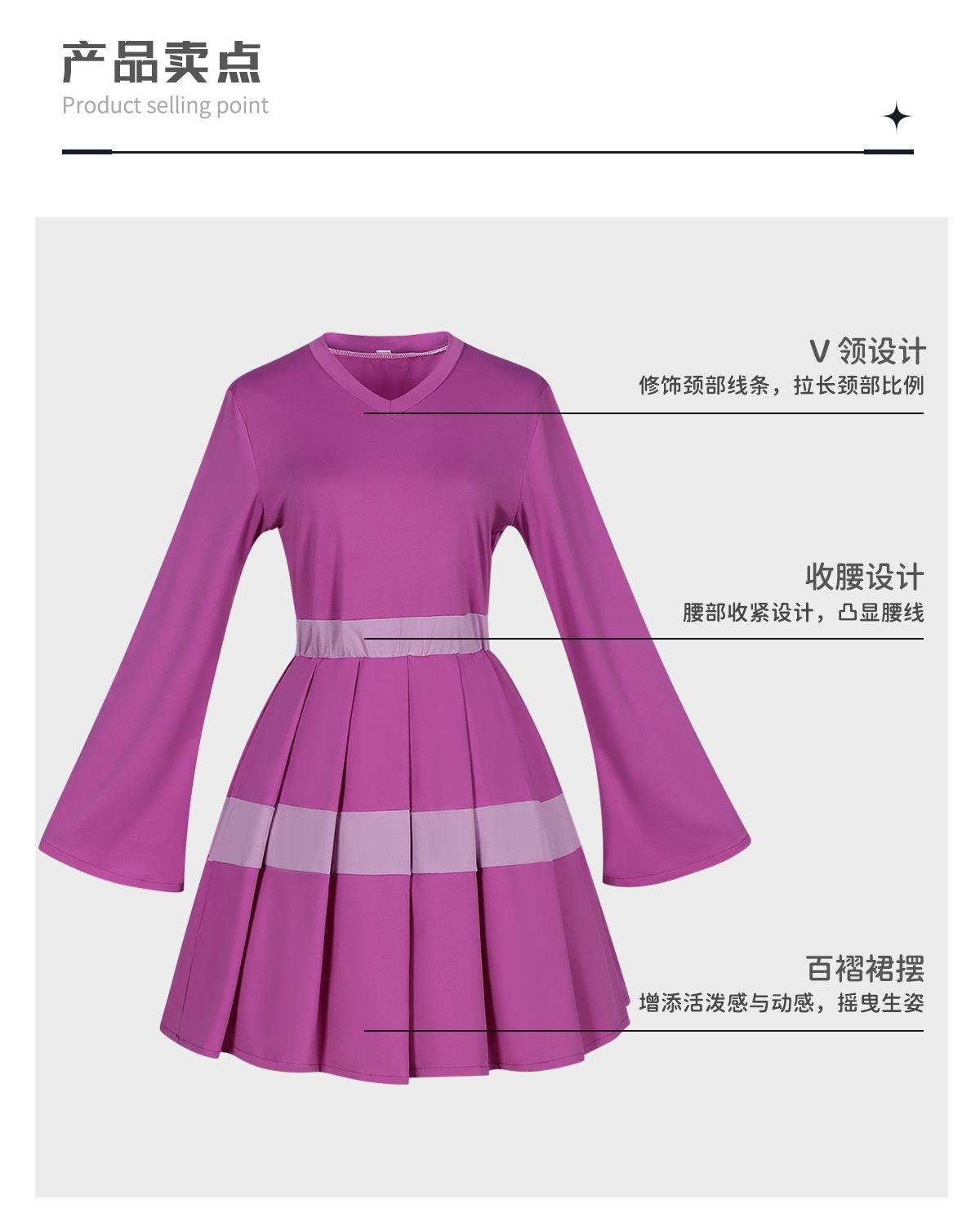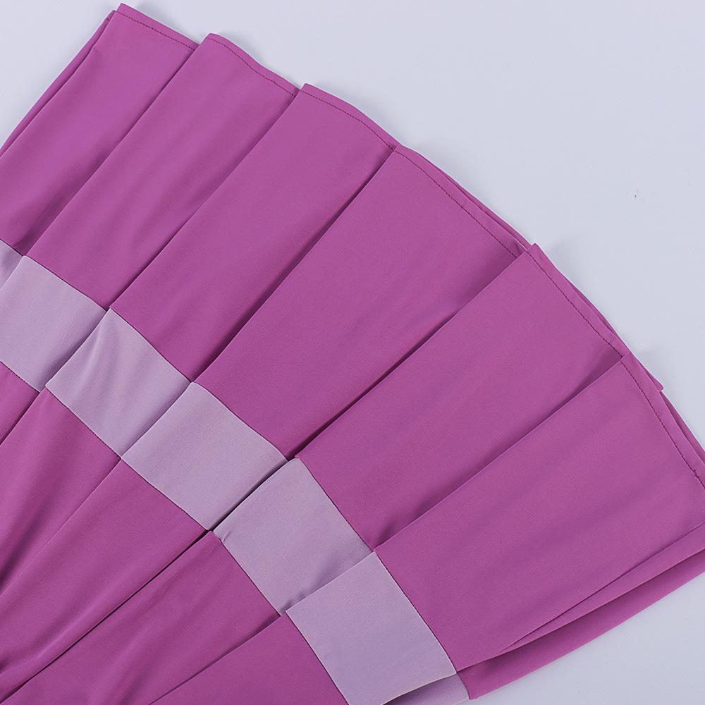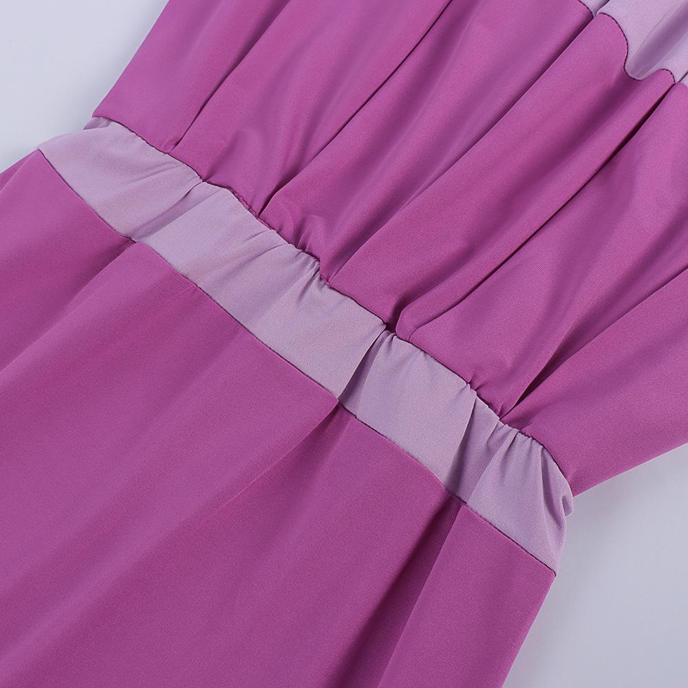 2025 Nuevo Vestido Morado Plisado para Mujer Europea y Americana Cuello en V Cintura Talla Grande Vestido Midi