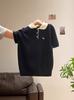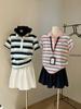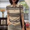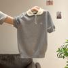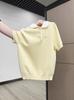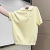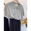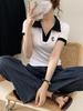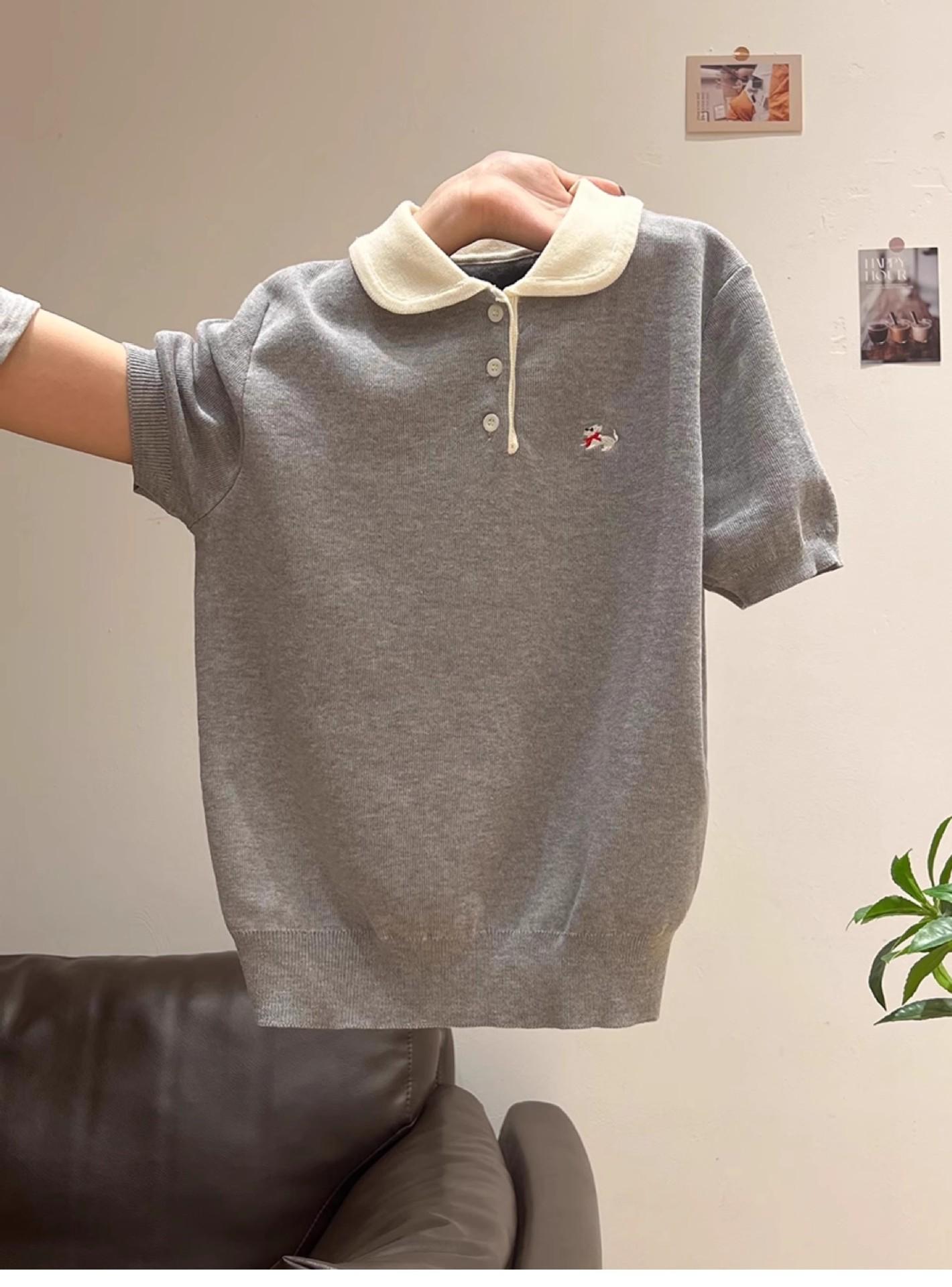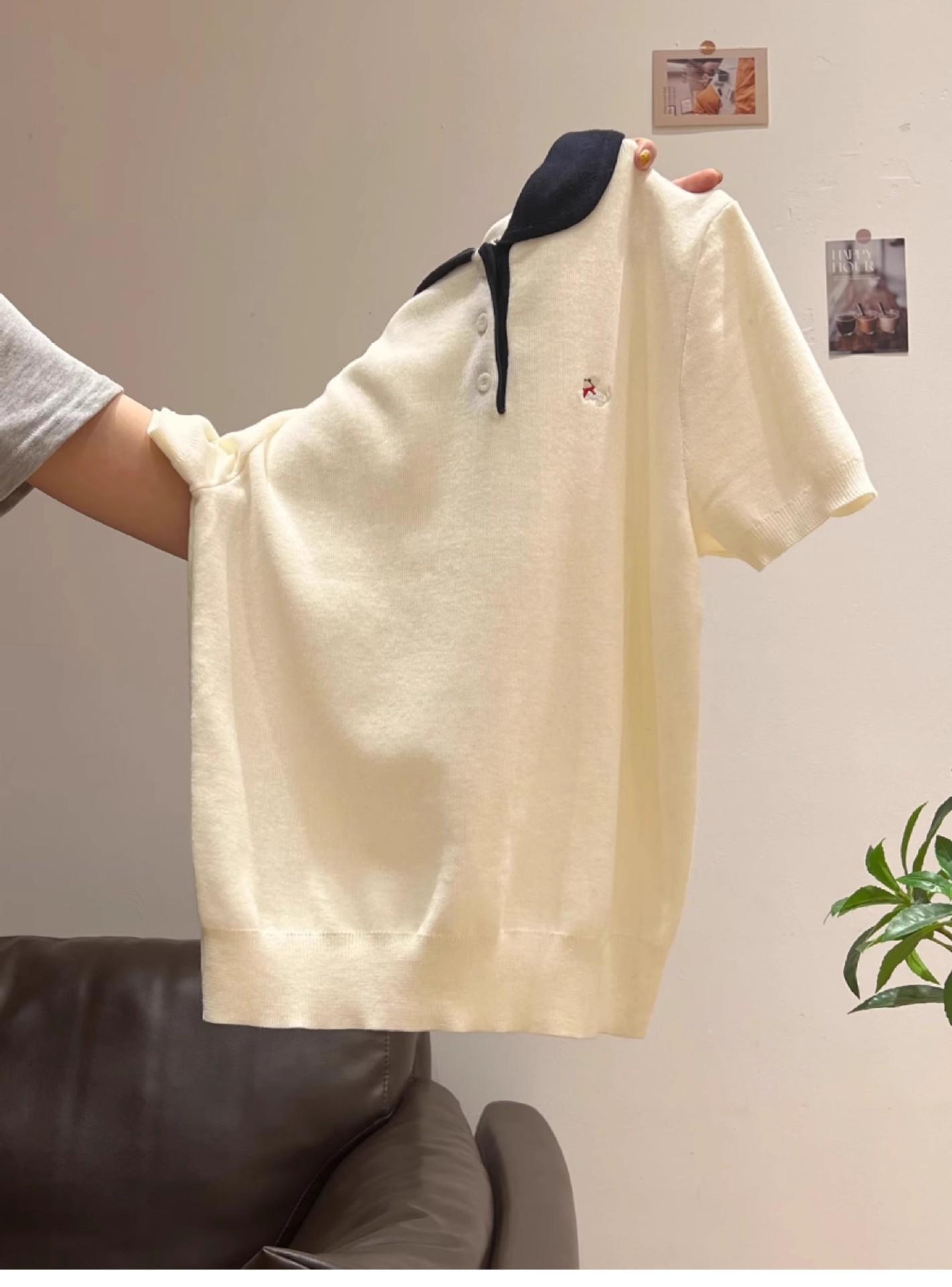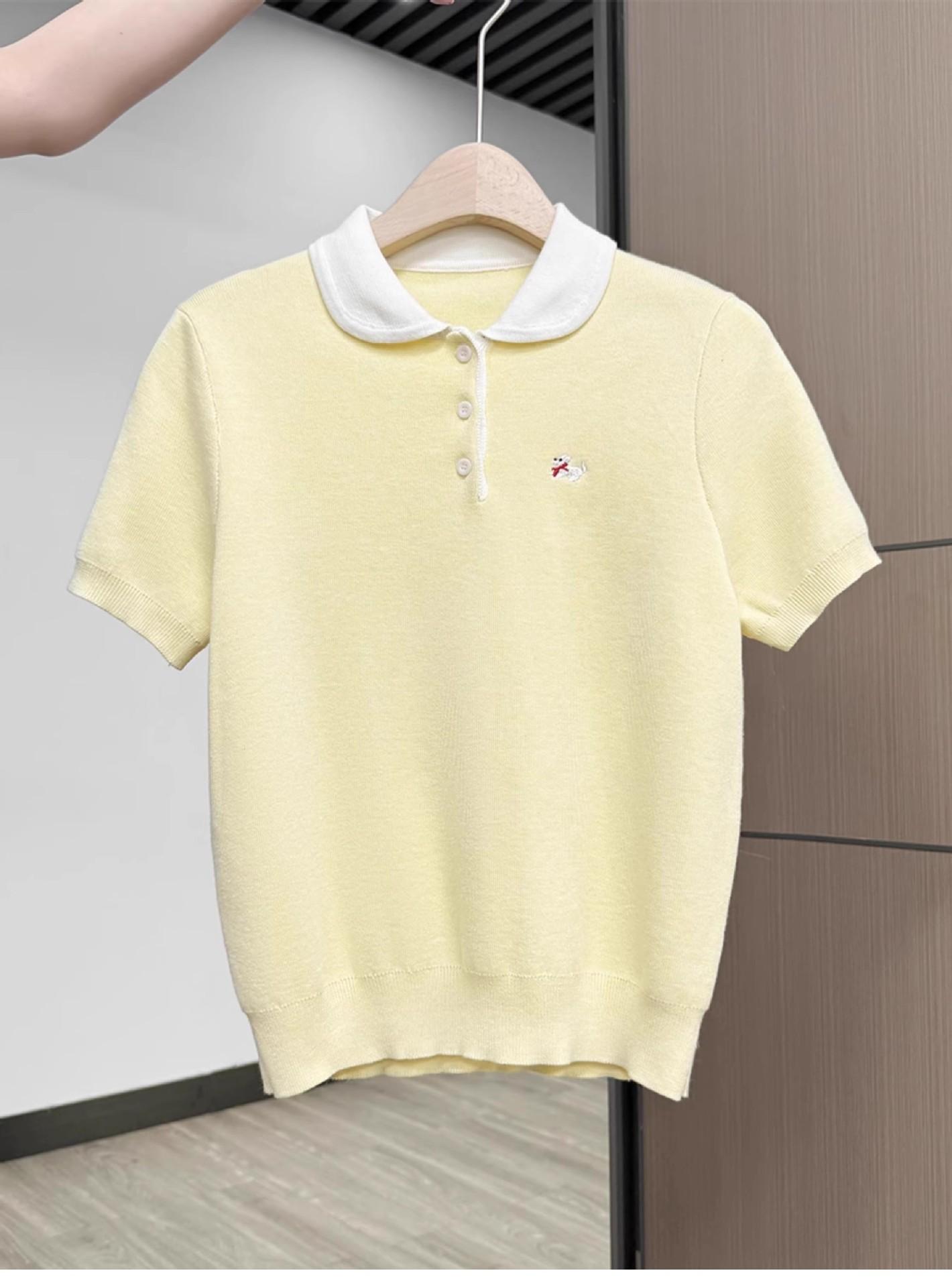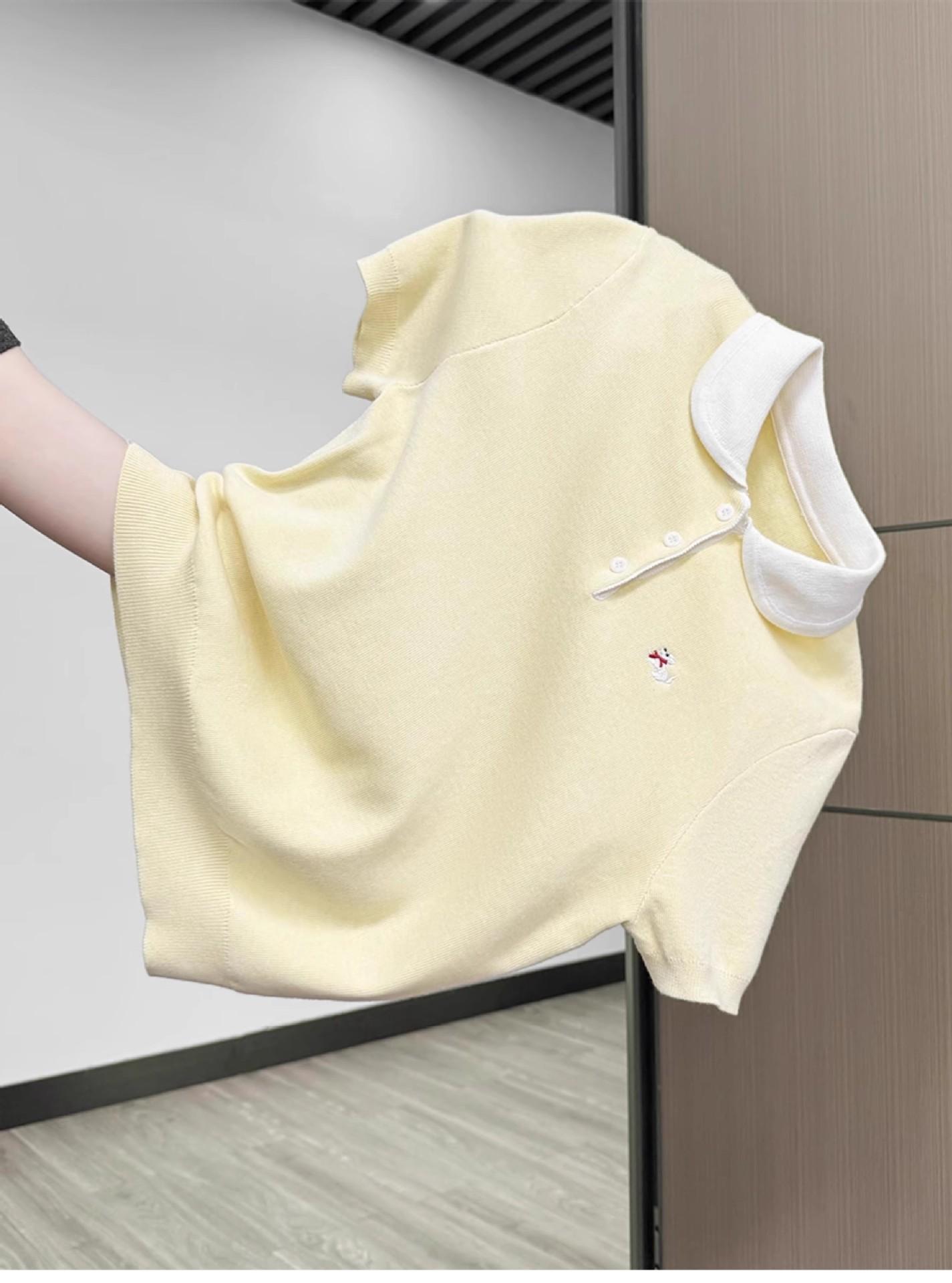 Suéter Polo de Punto Bordado para Mujer Verano Nuevo Jersey de Botones Top de Manga Corta con Hombro Derecho Descubierto