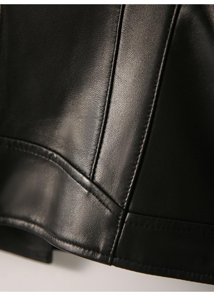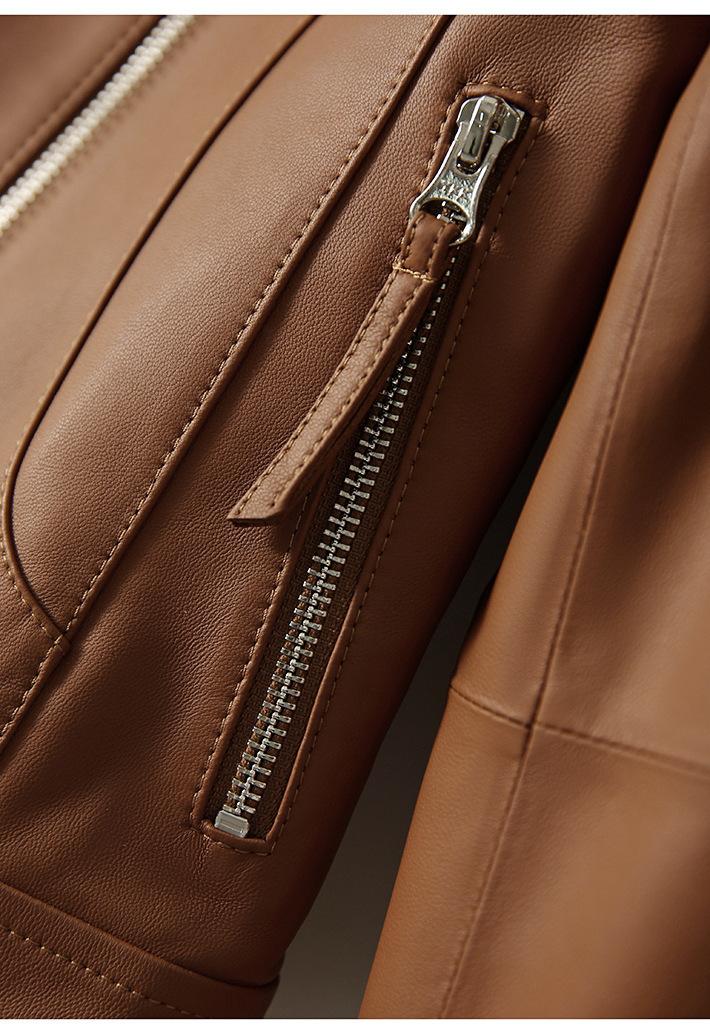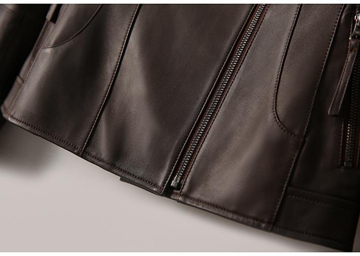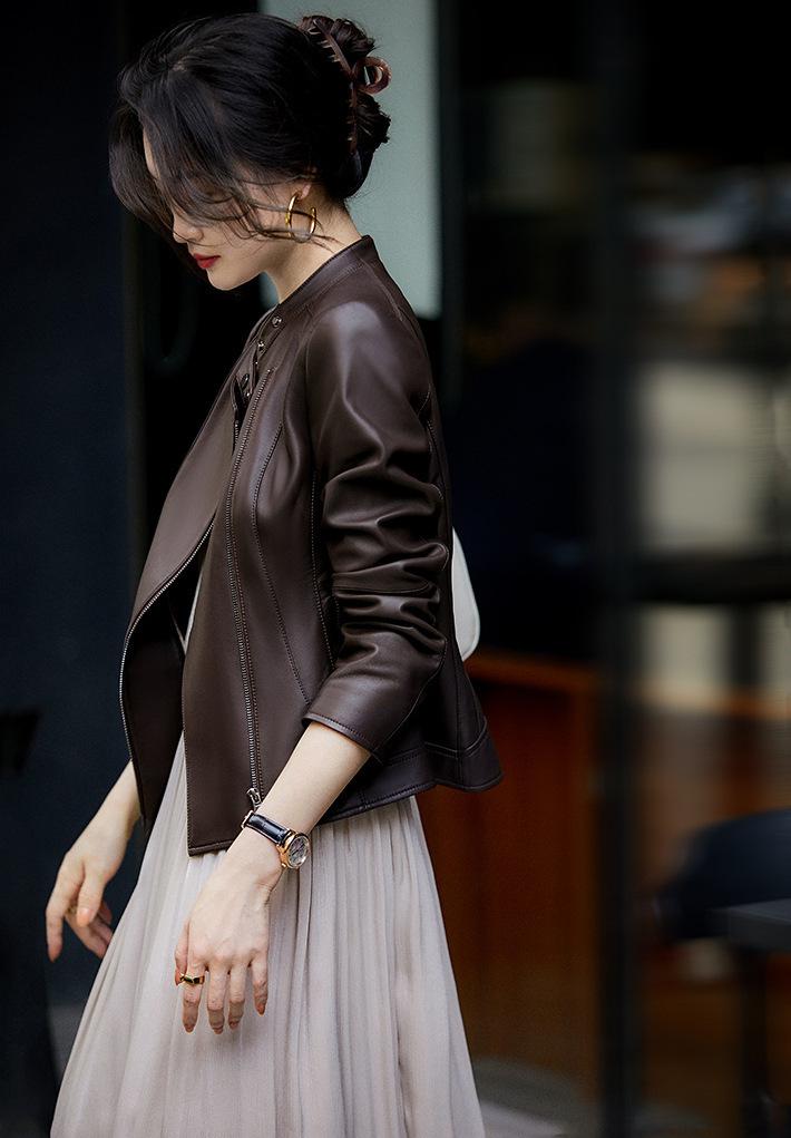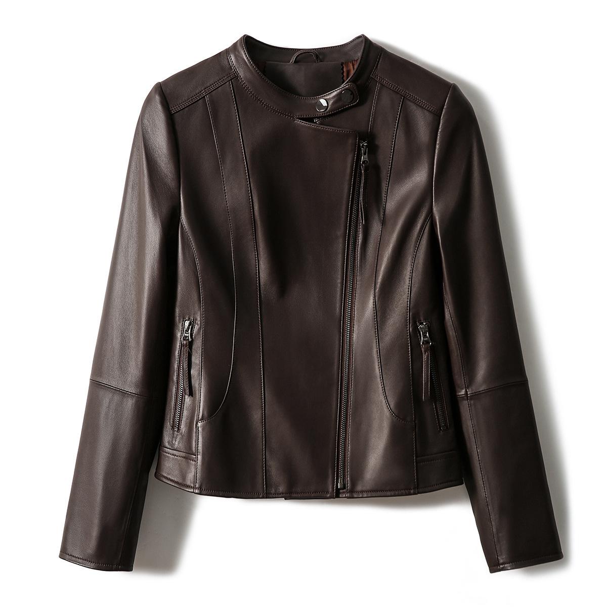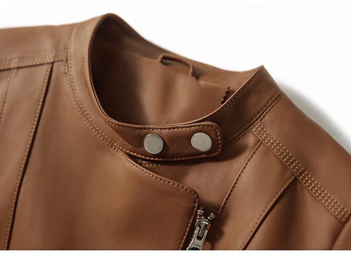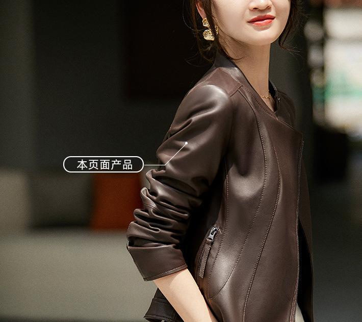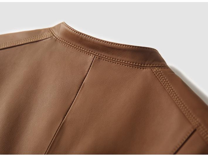 Chaqueta de Cuero Genuino Haining Personalizada para Mujer Primavera y Otoño 2025 Nuevo Estilo Cuello Mao Moda Corte Slim Versátil Top de Piel de Cabra