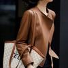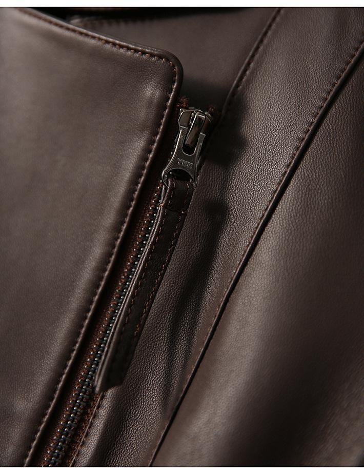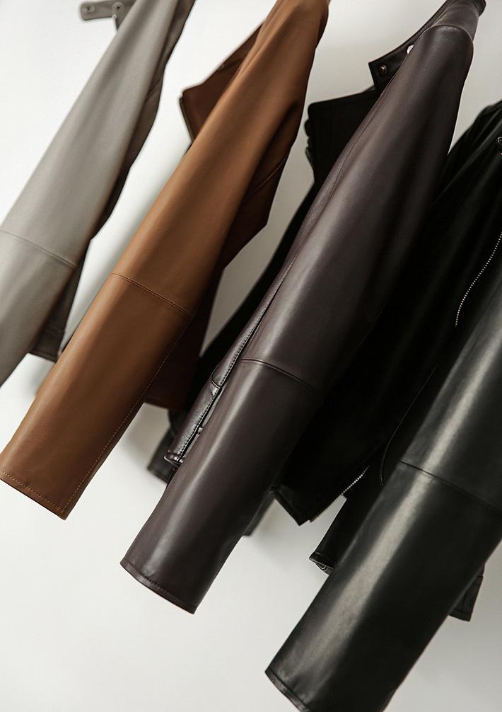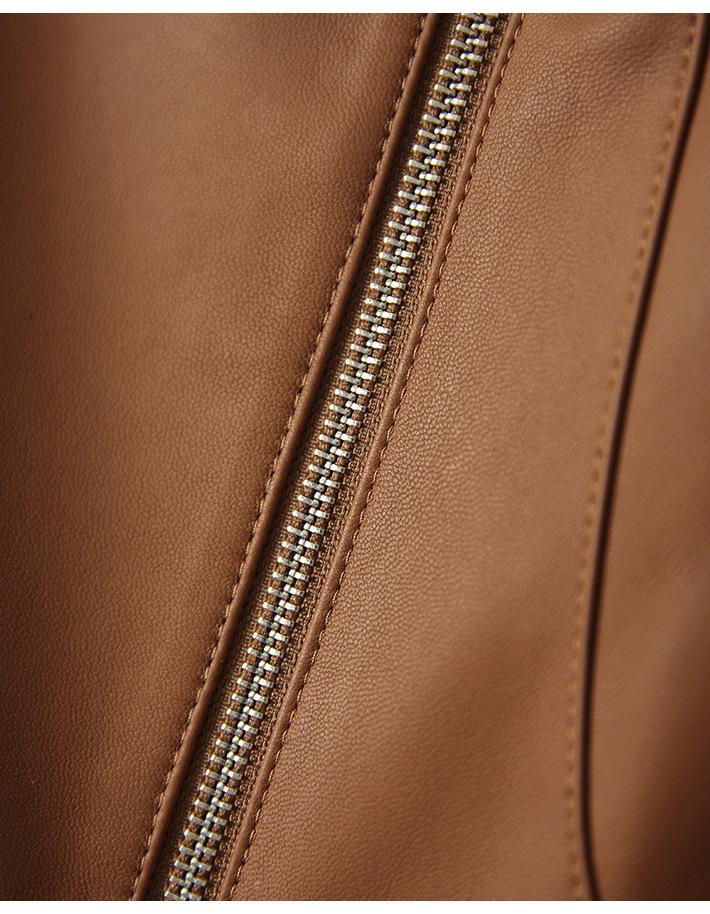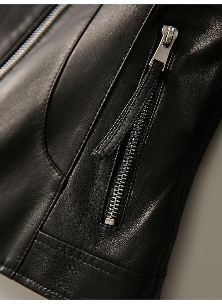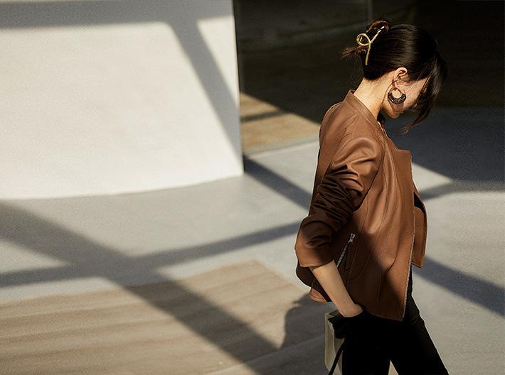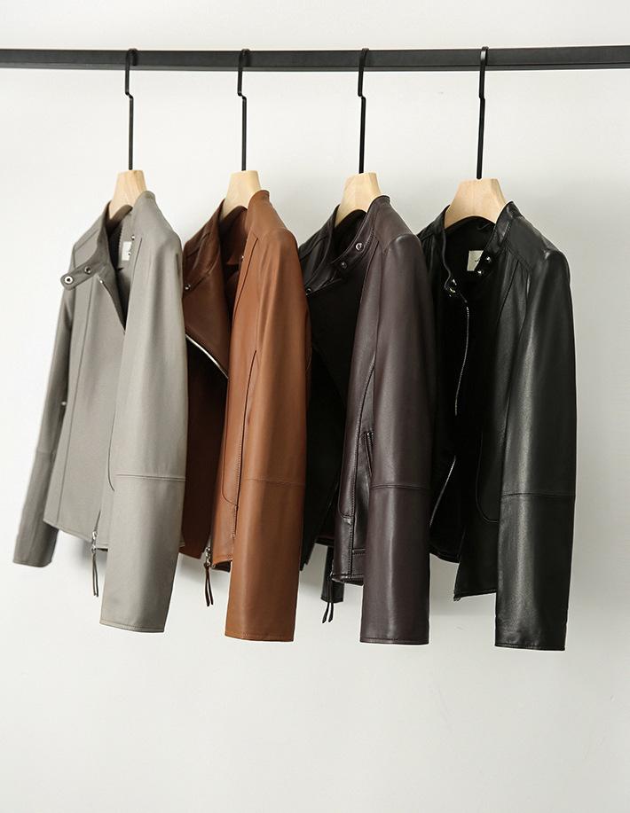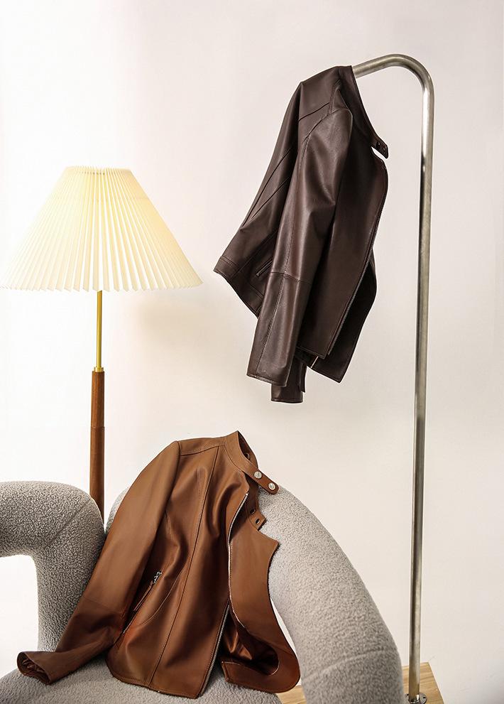 Chaqueta de Cuero Genuino Haining Personalizada para Mujer Primavera y Otoño 2025 Nuevo Estilo Cuello Mao Moda Corte Slim Versátil Top de Piel de Cabra