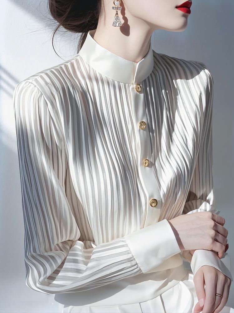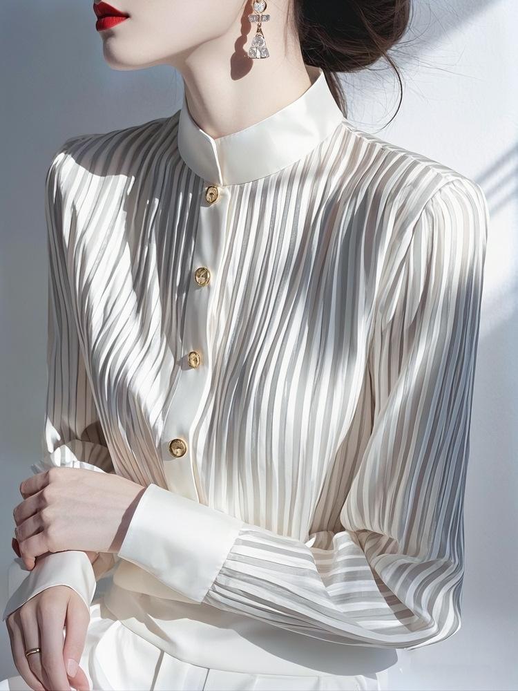 Camisa de rayas popular de este año para sentirse hermosa para mujer 2025 verano nueva sensación camisa delgada de manga larga marea