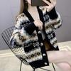 2023 Nuevo Cárdigan de Punto Holgado Estilo Étnico Otoño e Invierno Suéter Jacquard Versátil Retro Estilo Lazy Chaqueta para Mujer