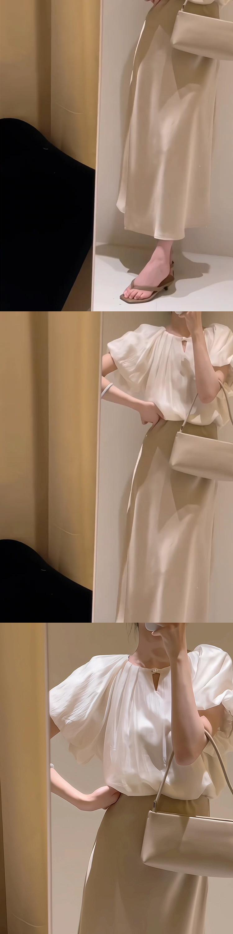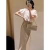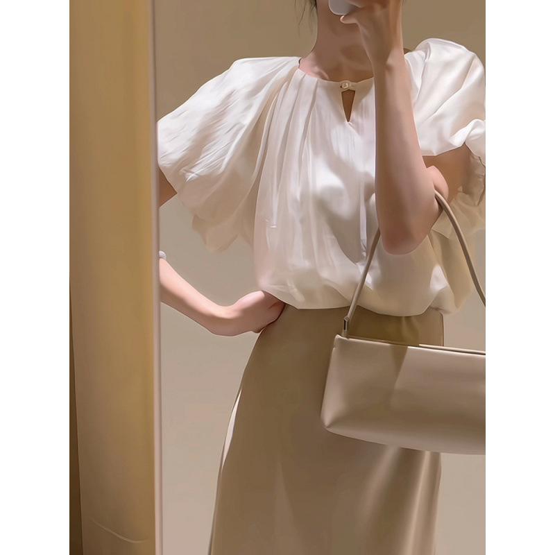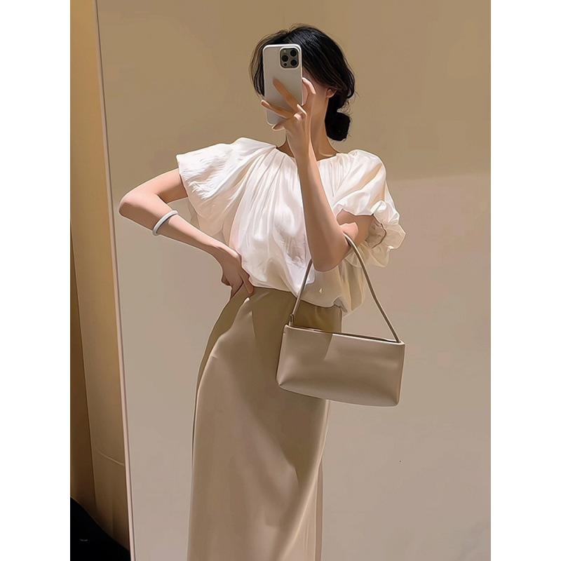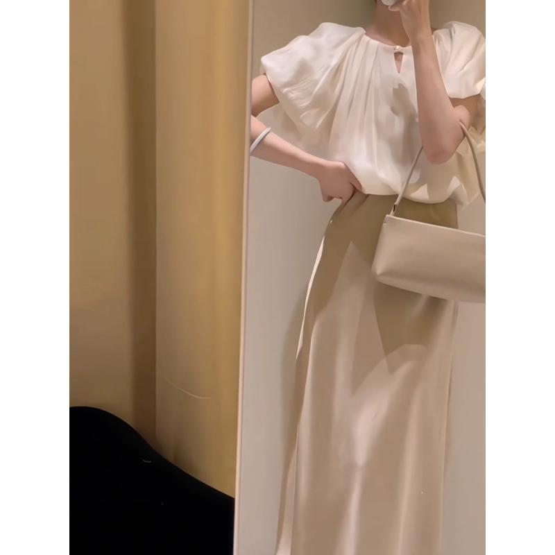 Traje de Moda Francesa de Alta Gama para Mujer 2025 Verano Nuevo Estilo Camisa de Gasa de Manga Abullonada y Falda Conjunto de Dos Piezas