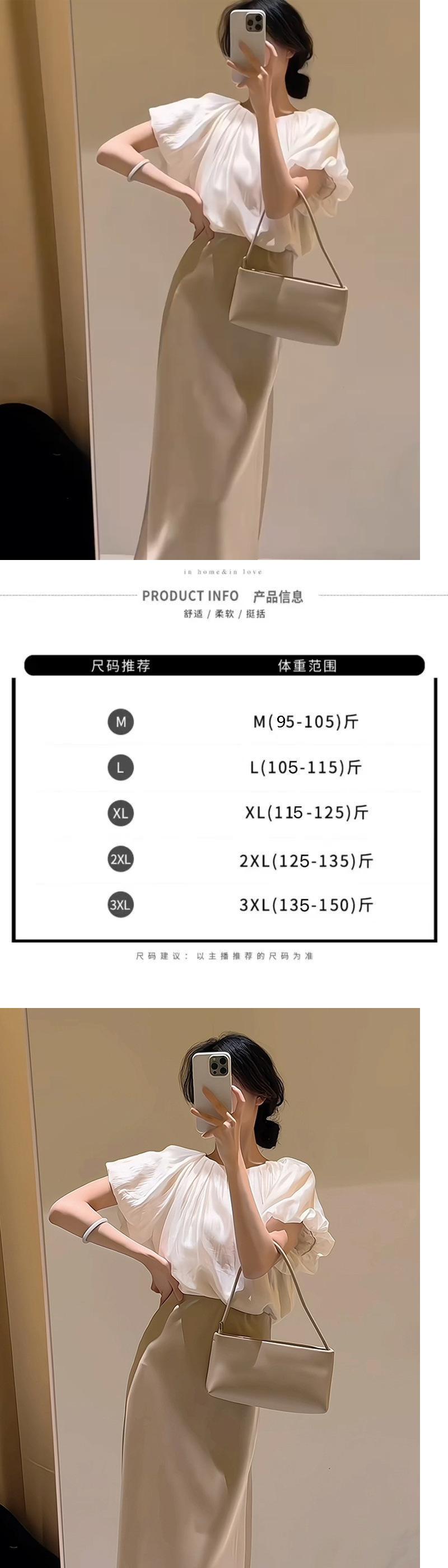 Off-white chiffon shirt (single piece), Champagne skirt (single piece), Chiffon shirt + skirt (two pieces)