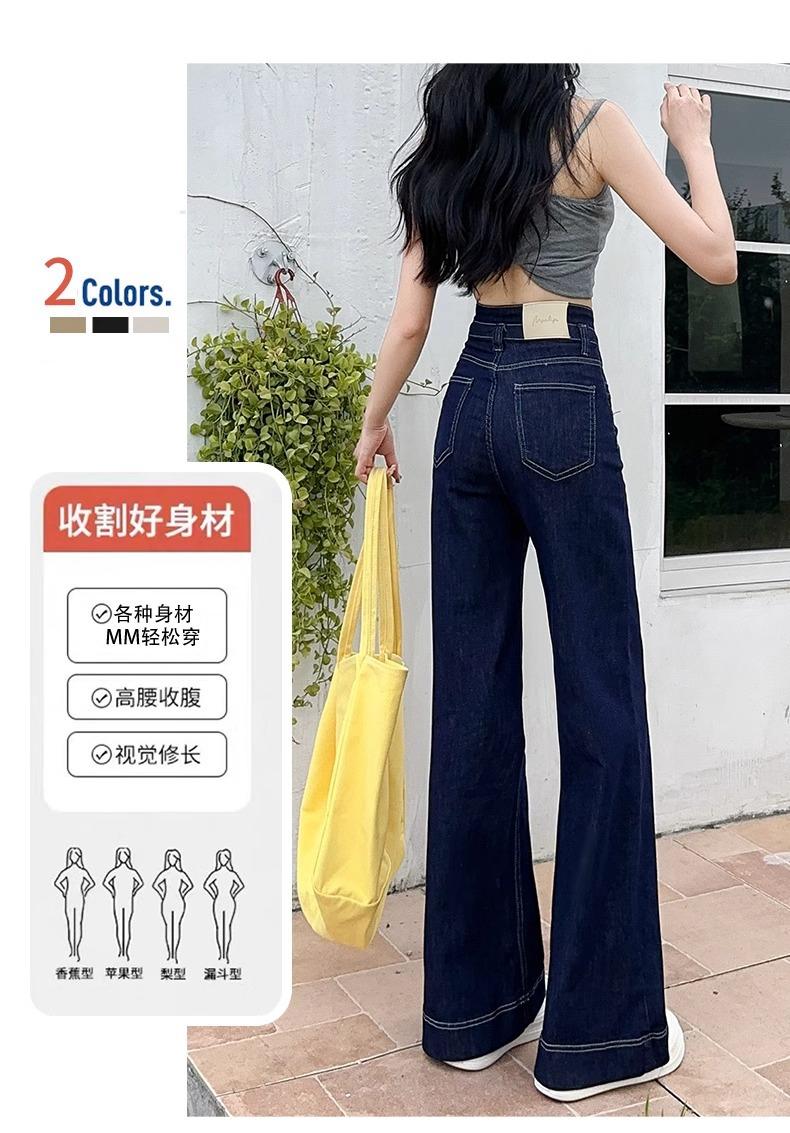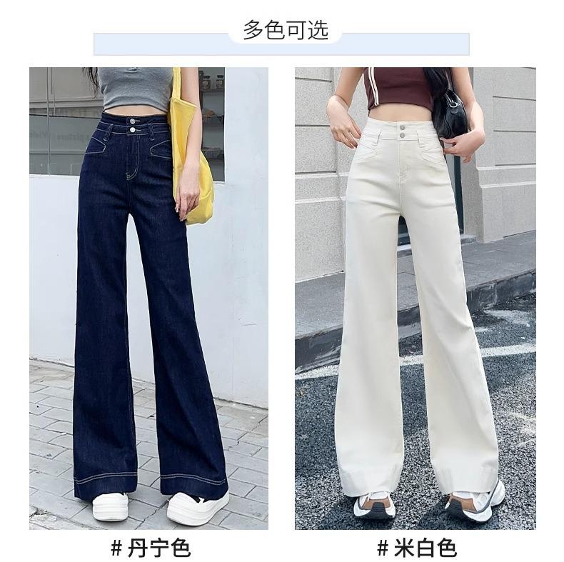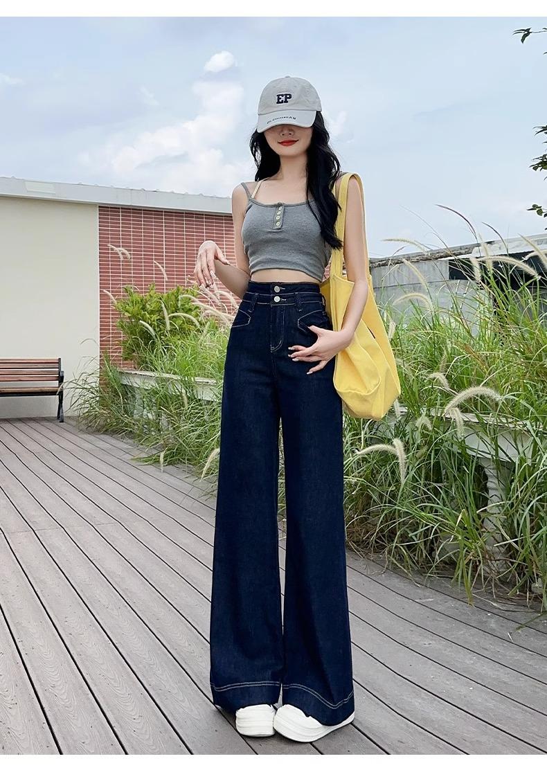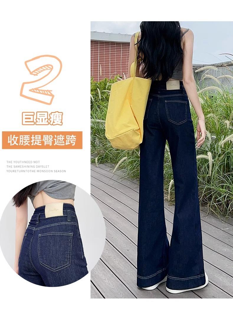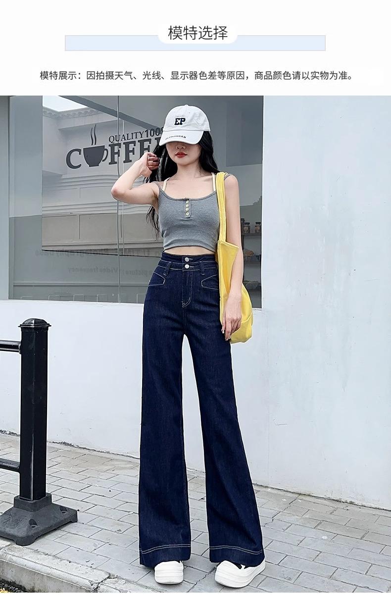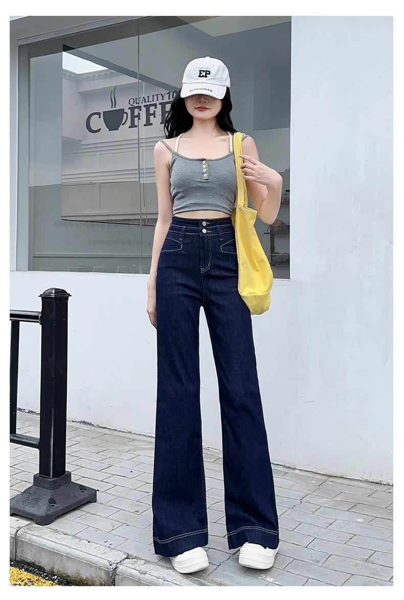 Jeans Micro-Lam azul oscuro para mujer, modernos, combinan con todo, nuevos, de cintura alta, adelgazantes, corte holgado, trompeta, herradura, pantalones largos