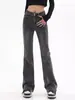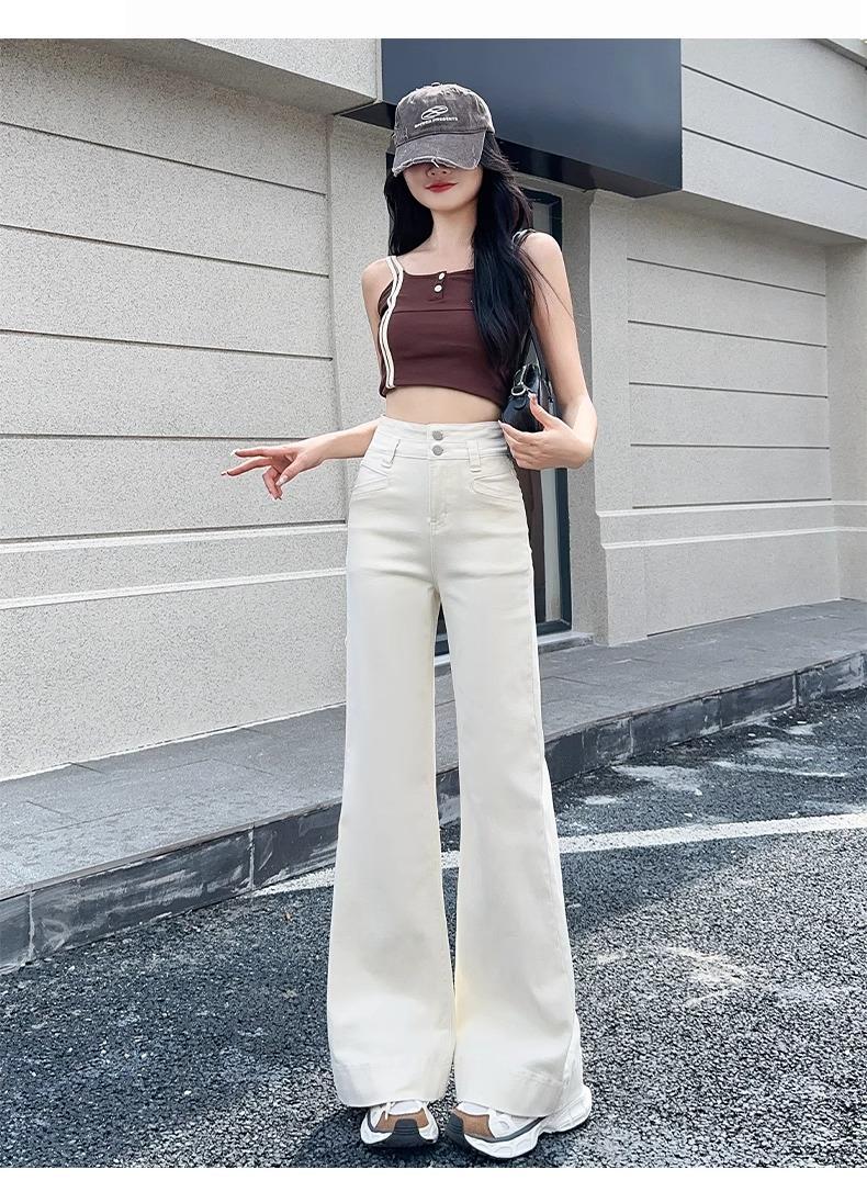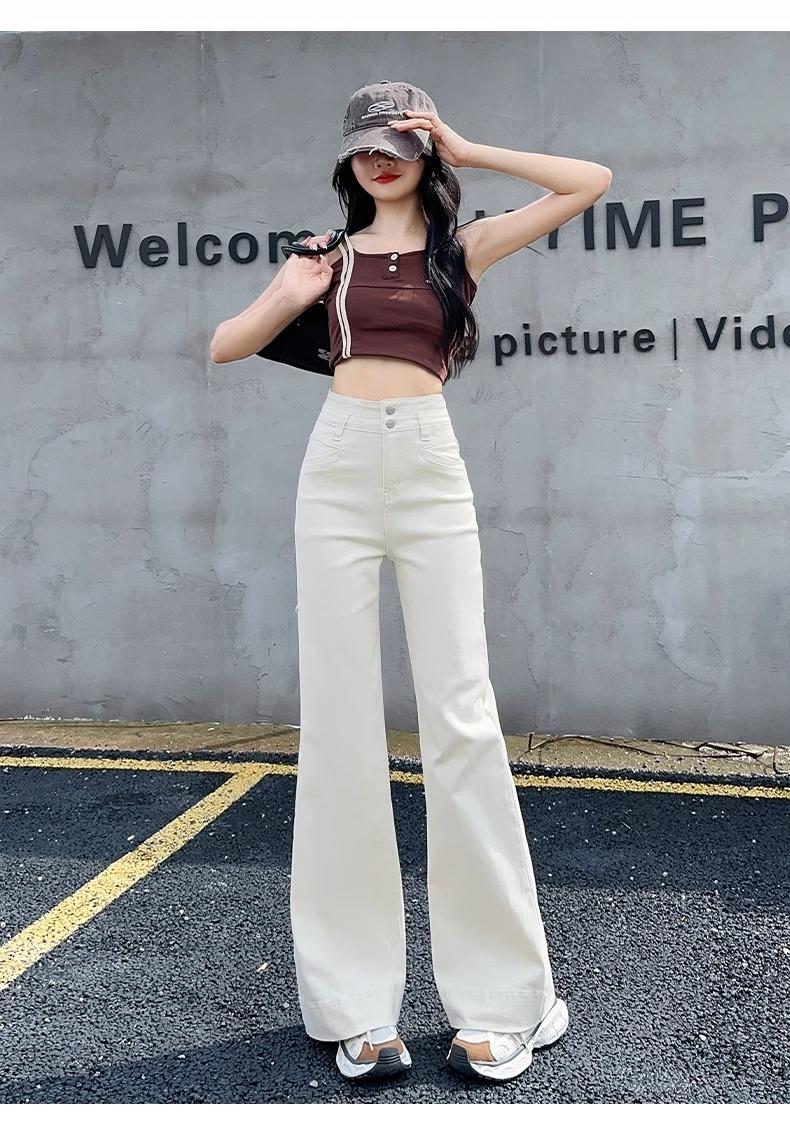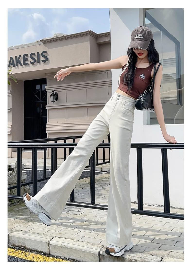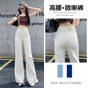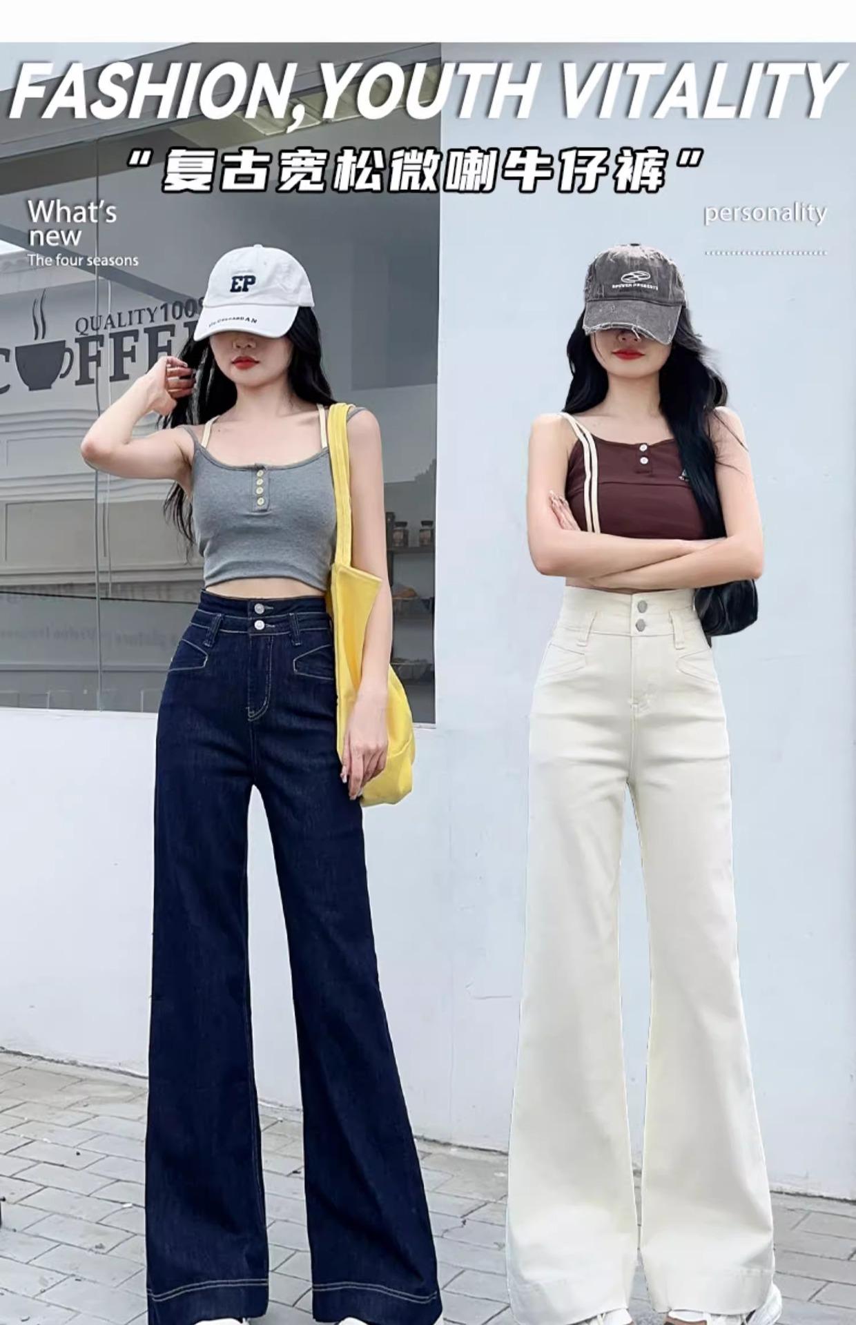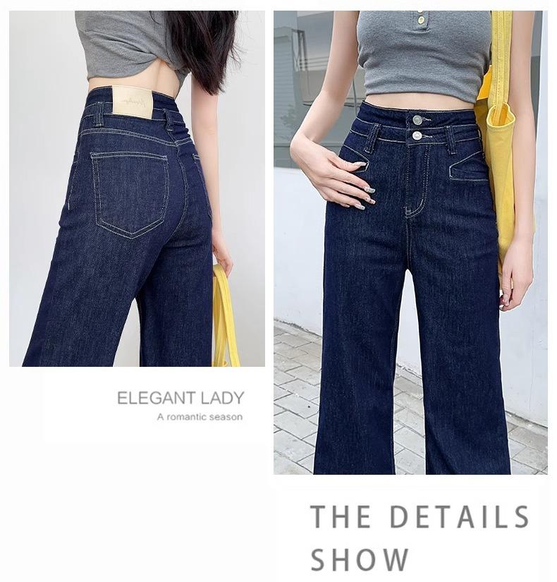 Jeans Micro-Lam azul oscuro para mujer, modernos, combinan con todo, nuevos, de cintura alta, adelgazantes, corte holgado, trompeta, herradura, pantalones largos