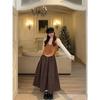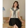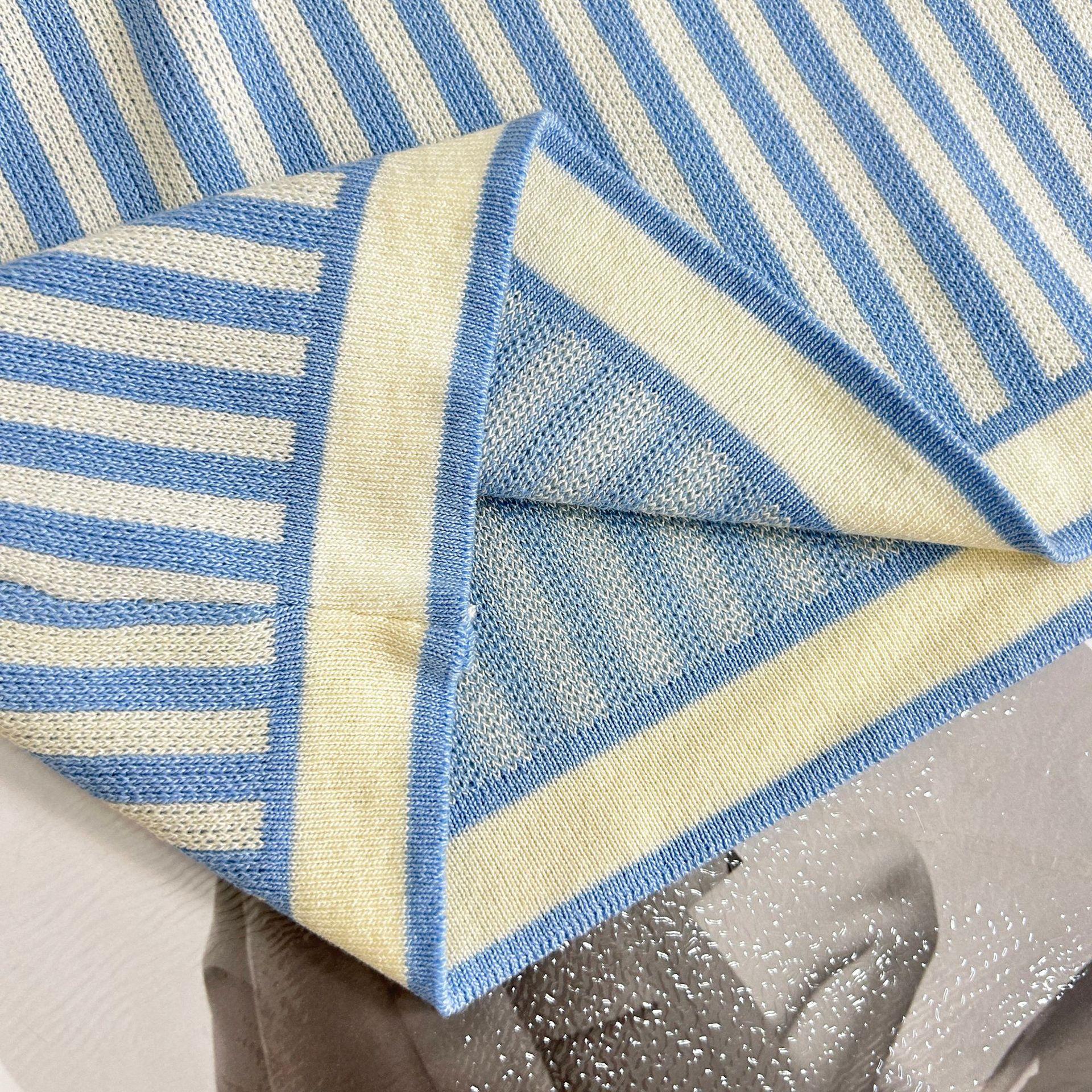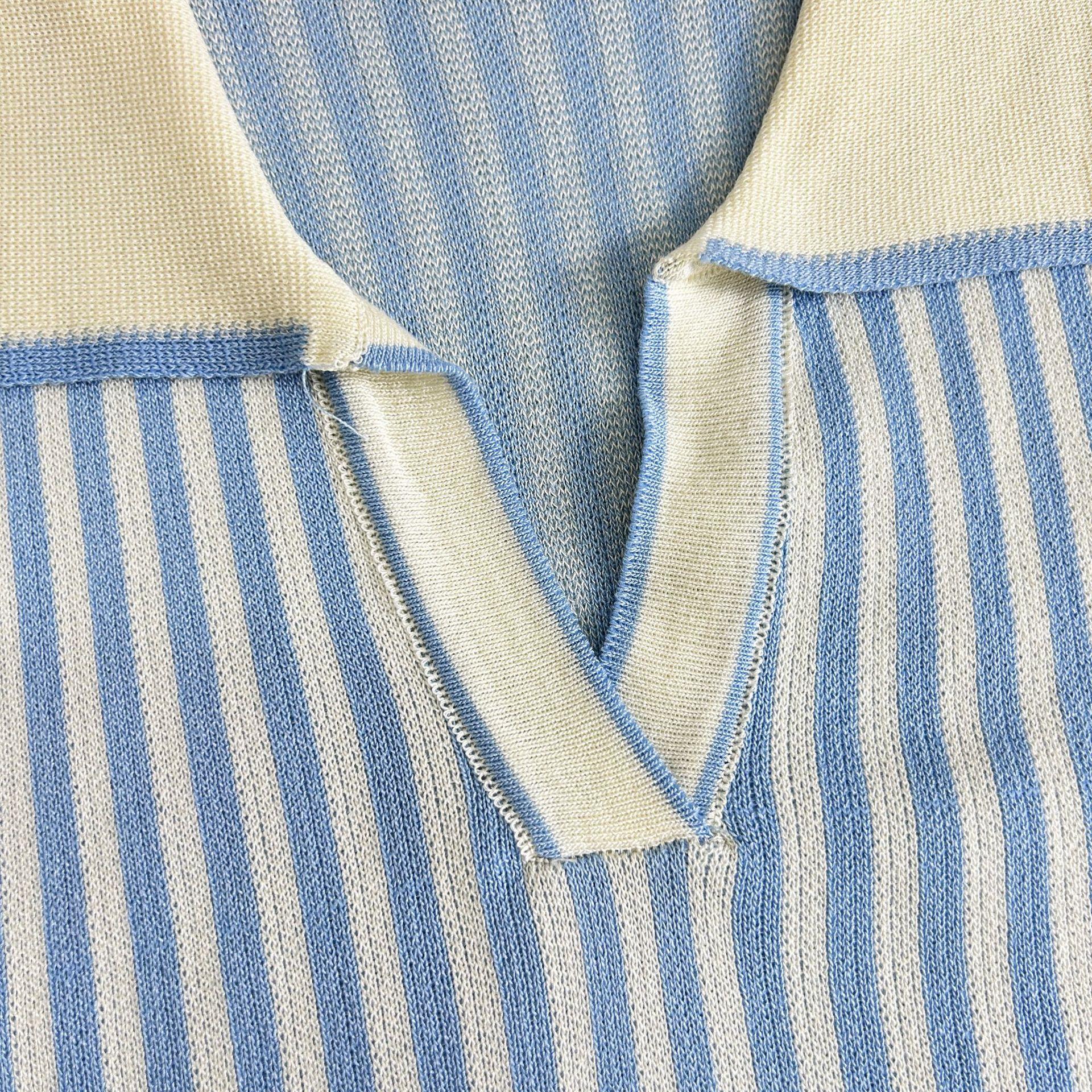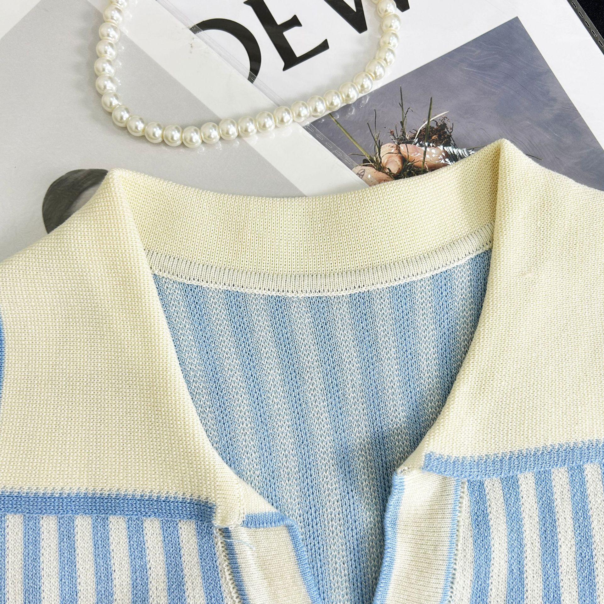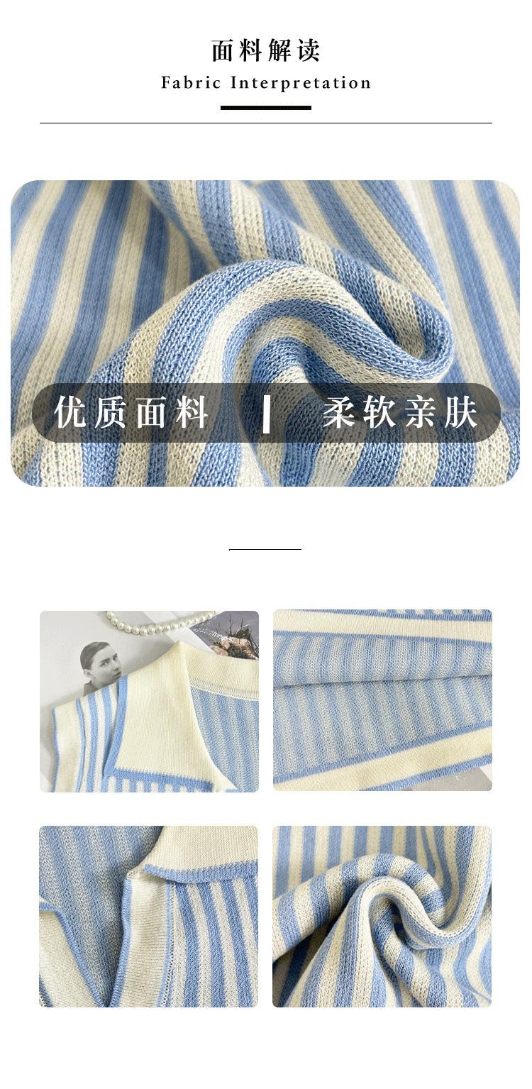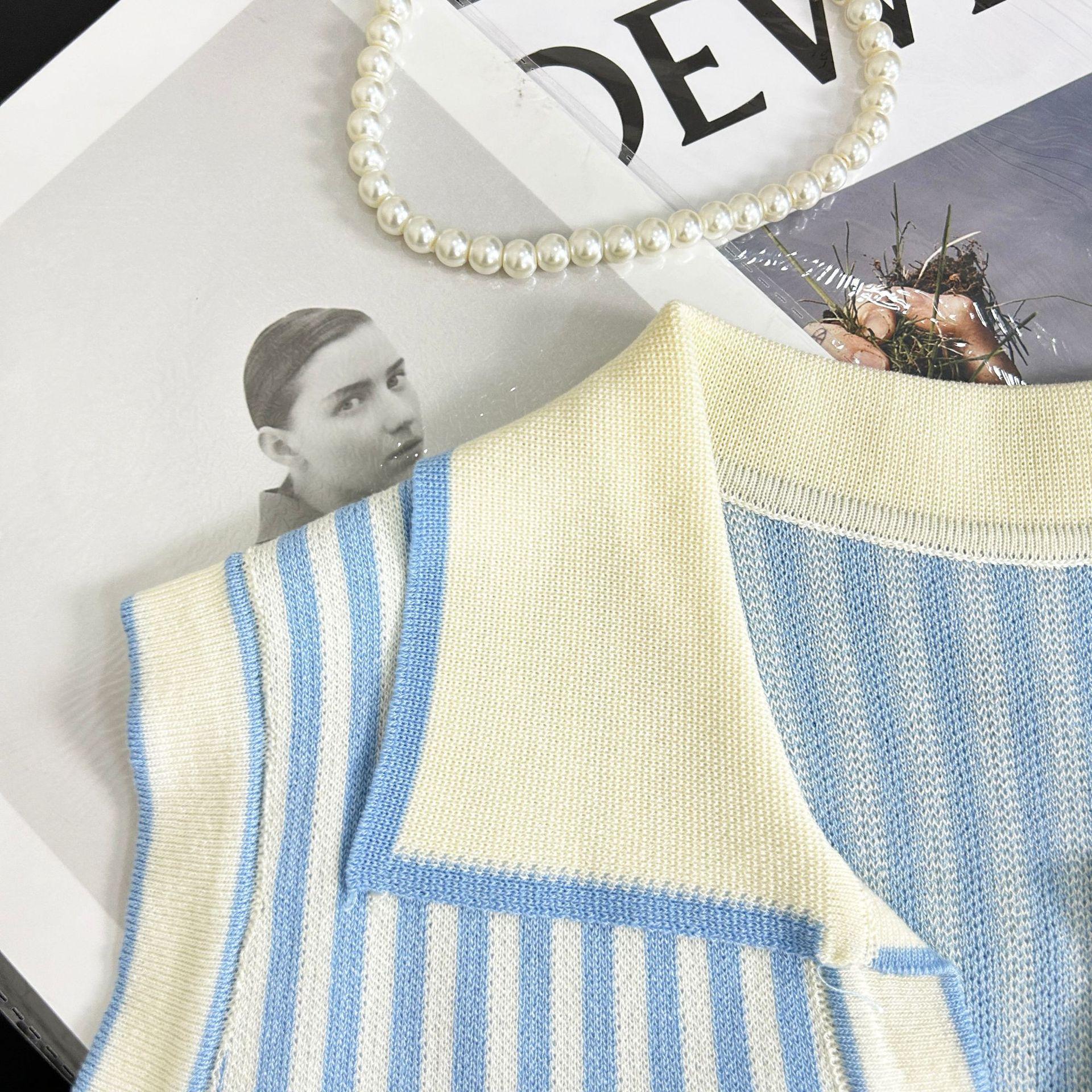 Traje de punto a rayas azules y blancas nuevo 2025 para mujer, fresco y rejuvenecedor, top sin mangas con solapa, falda, conjunto de dos piezas