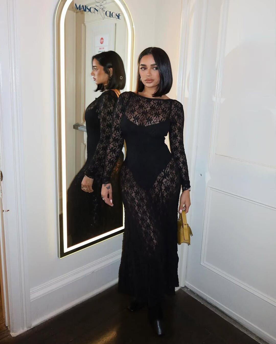 Aliexpress Exportación Transfronteriza Ropa Europea y Americana 2025 Verano Nuevo Za Encaje Transparente Espalda Descubierta Vestido Largo