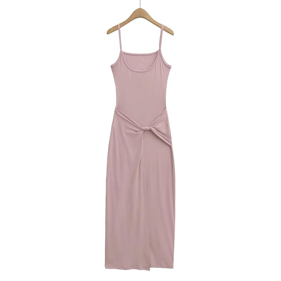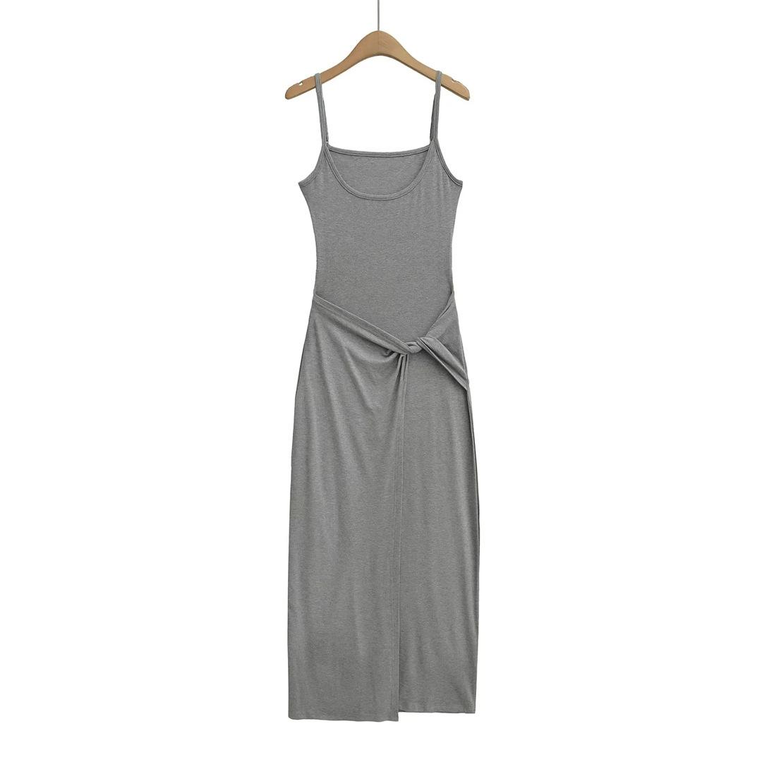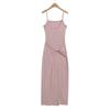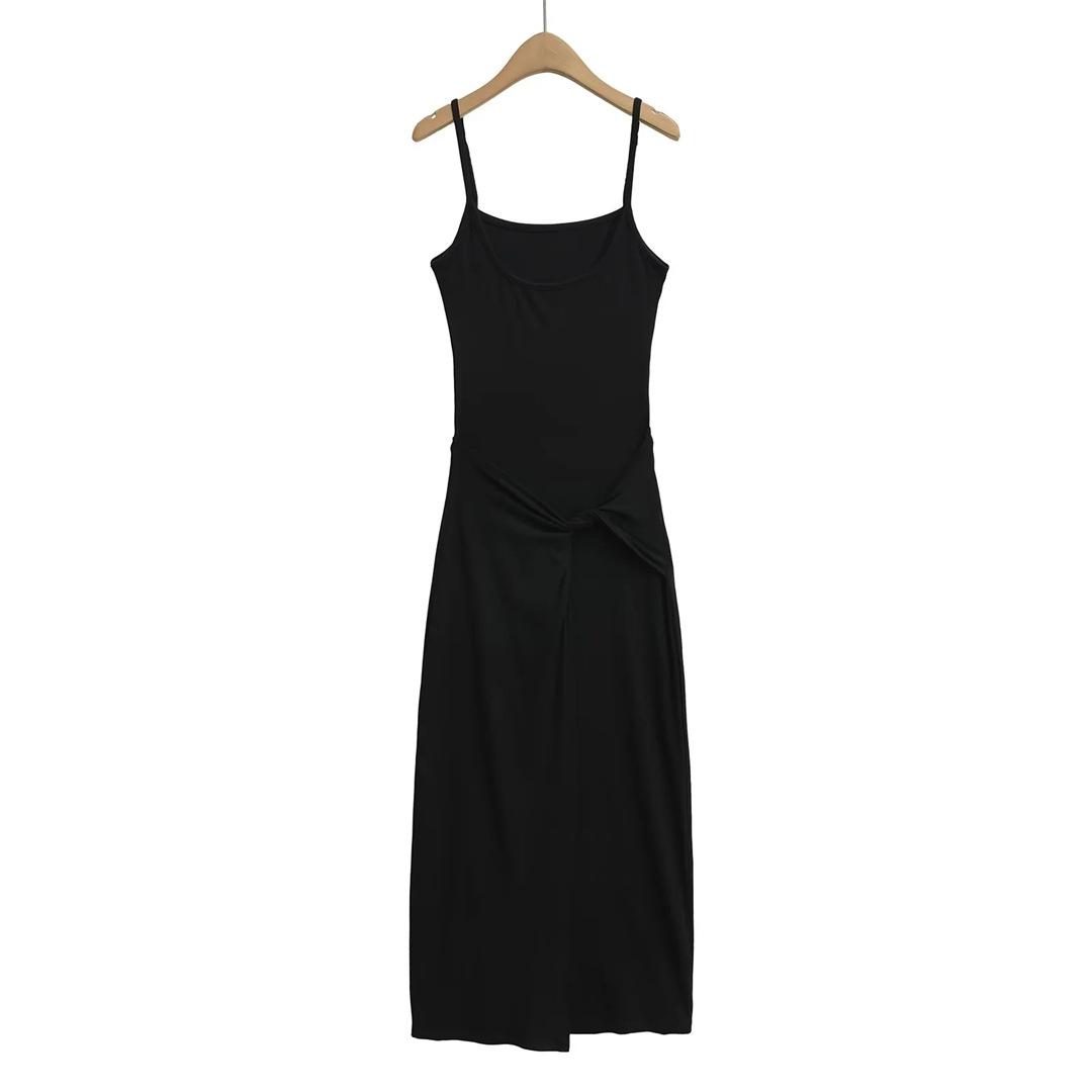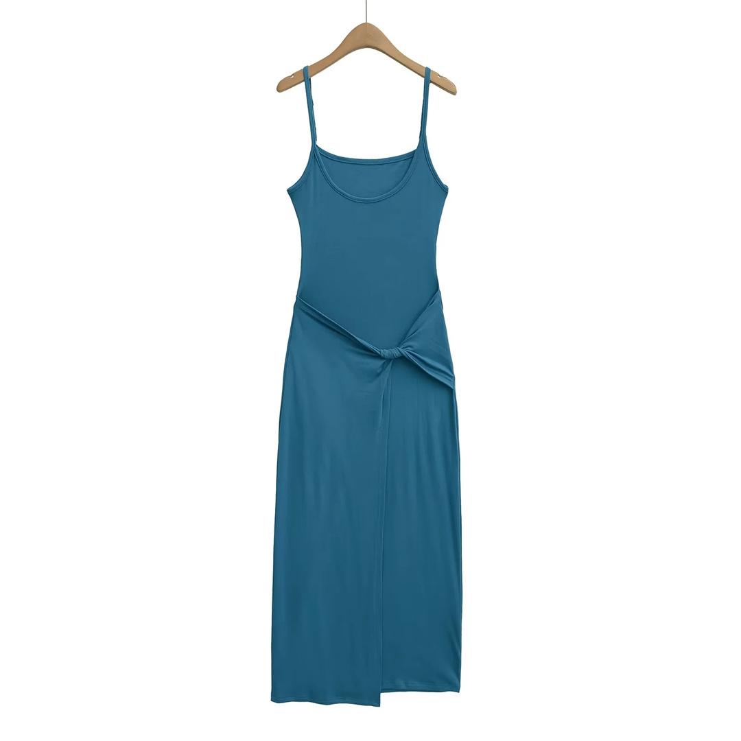 Estilo Europeo y Americano Nicho Chica Hot Color Puro Cintura Cruzada Twist Cadera Falda Larga Cintura Delgada Vestido de Tirantes Verano
