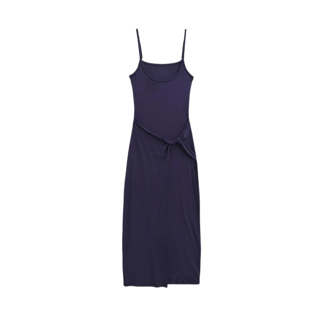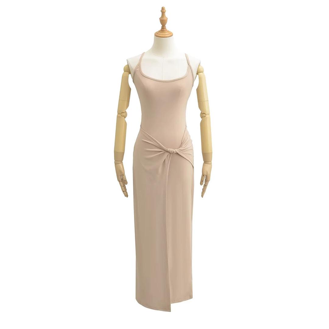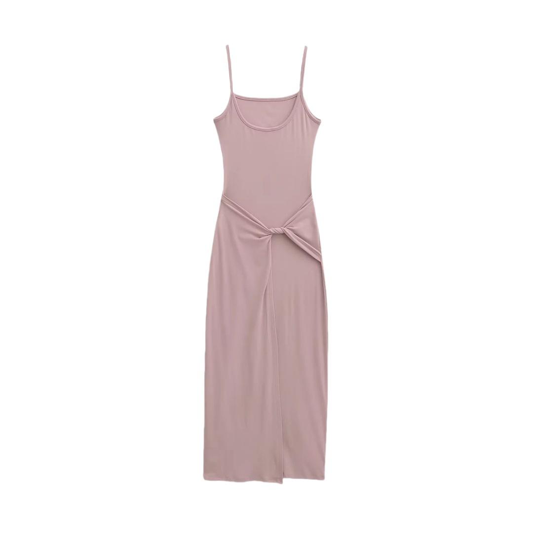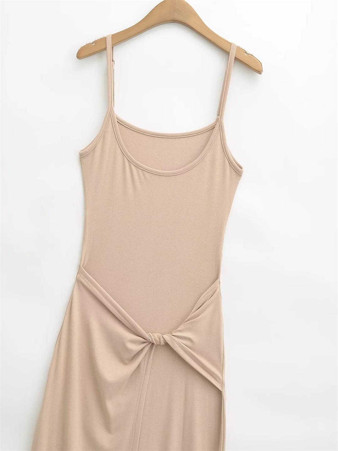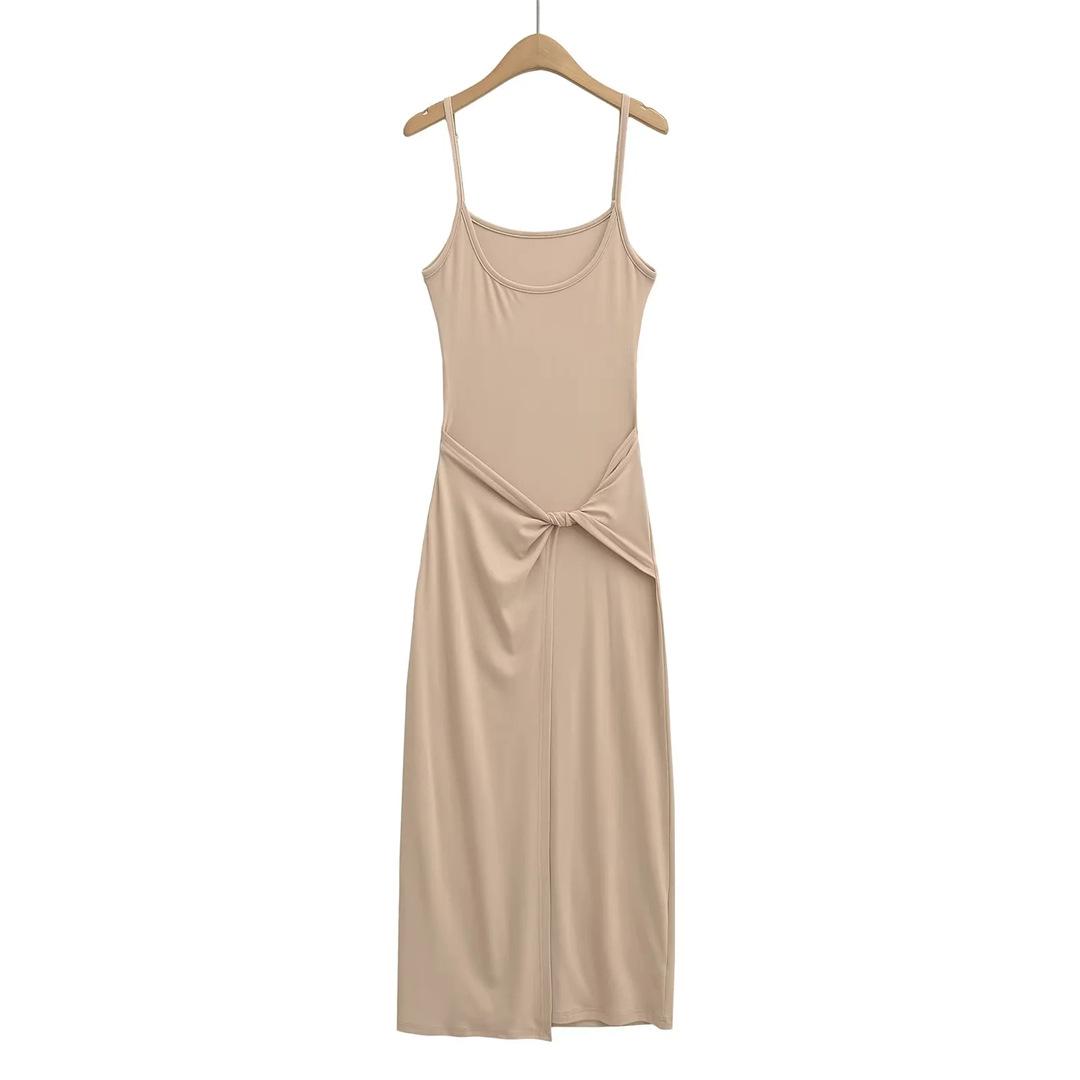 Estilo Europeo y Americano Nicho Chica Hot Color Puro Cintura Cruzada Twist Cadera Falda Larga Cintura Delgada Vestido de Tirantes Verano