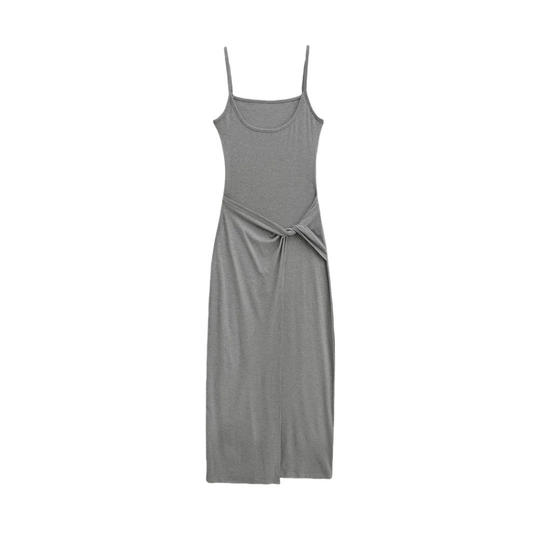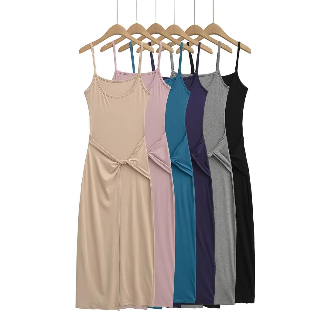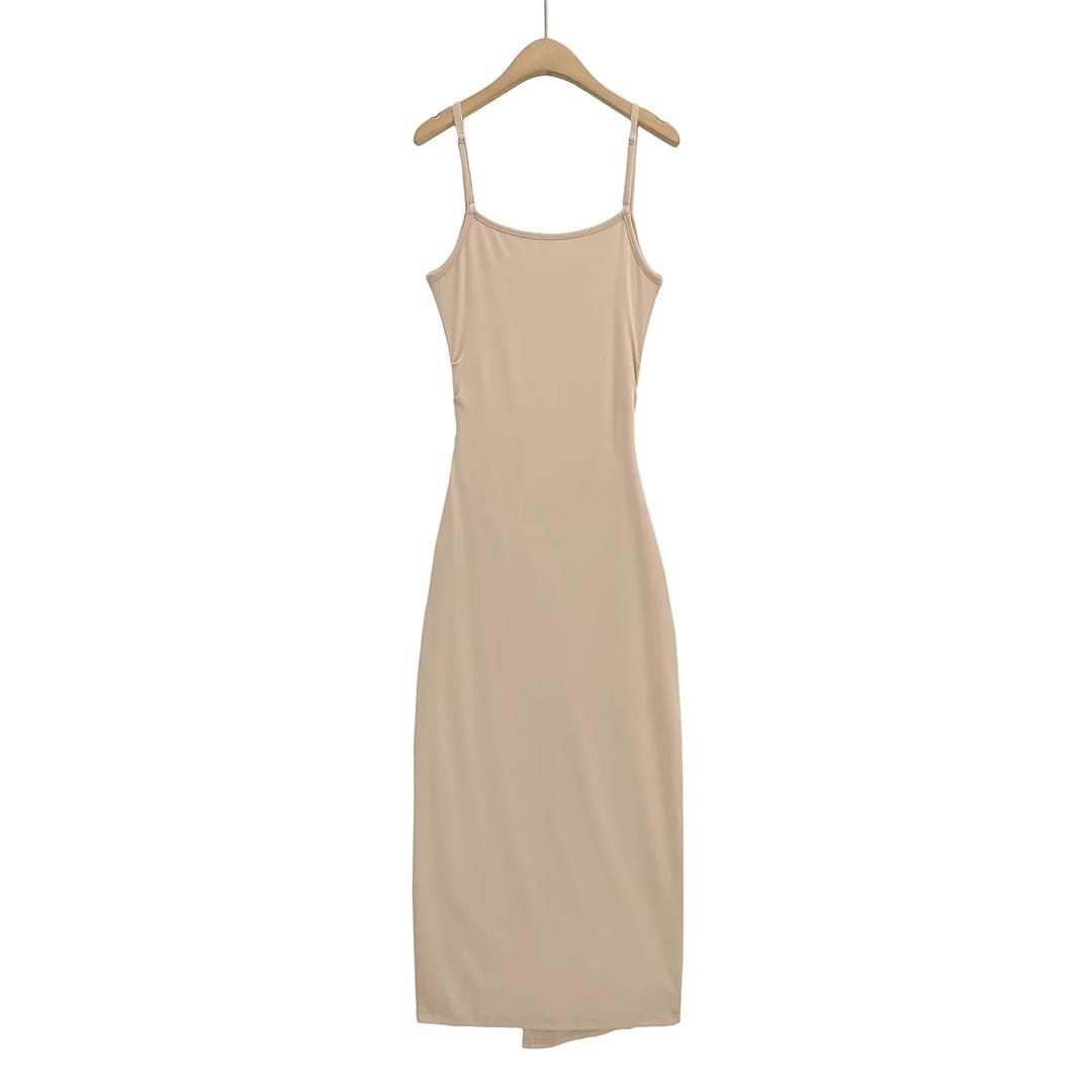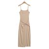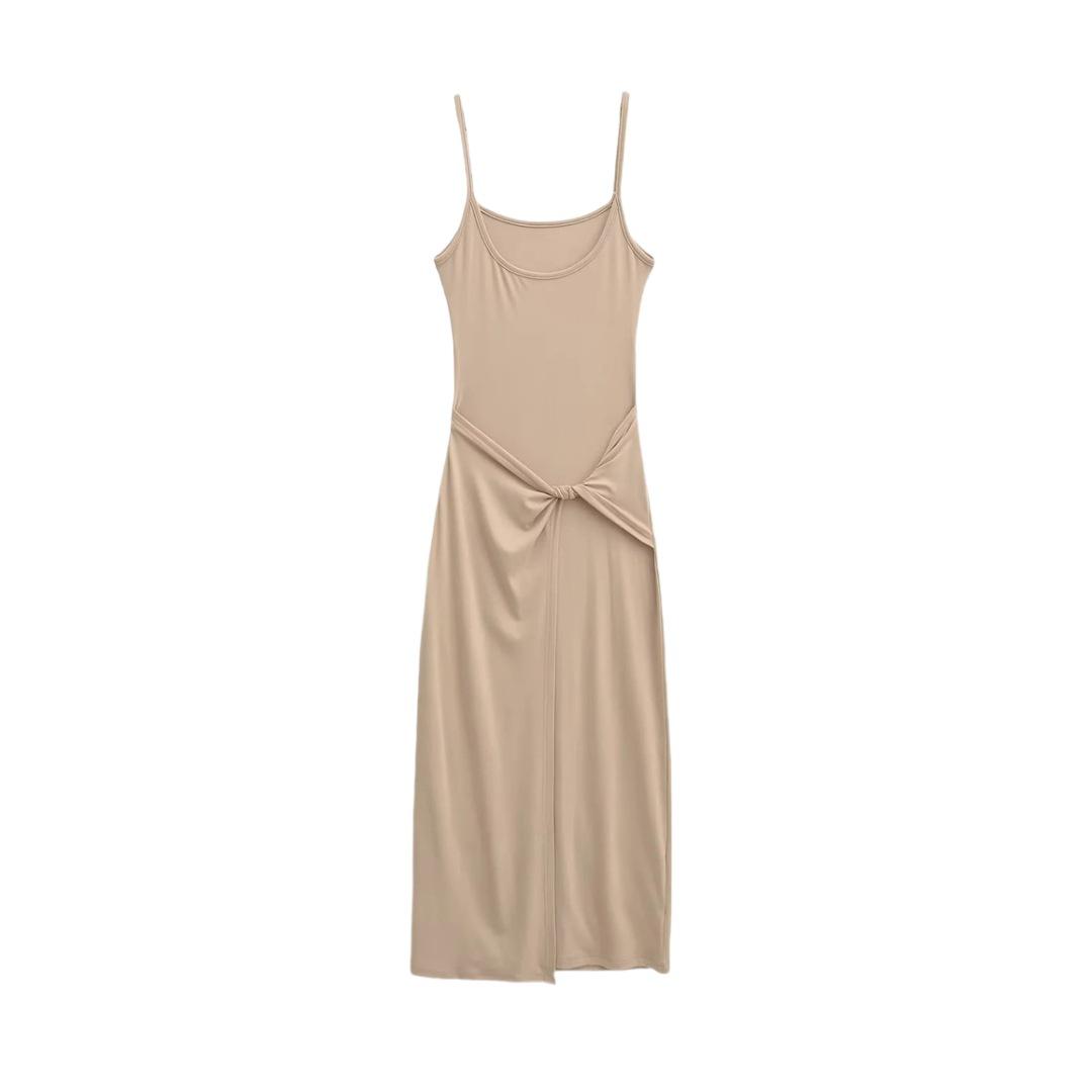 Estilo Europeo y Americano Nicho Chica Hot Color Puro Cintura Cruzada Twist Cadera Falda Larga Cintura Delgada Vestido de Tirantes Verano