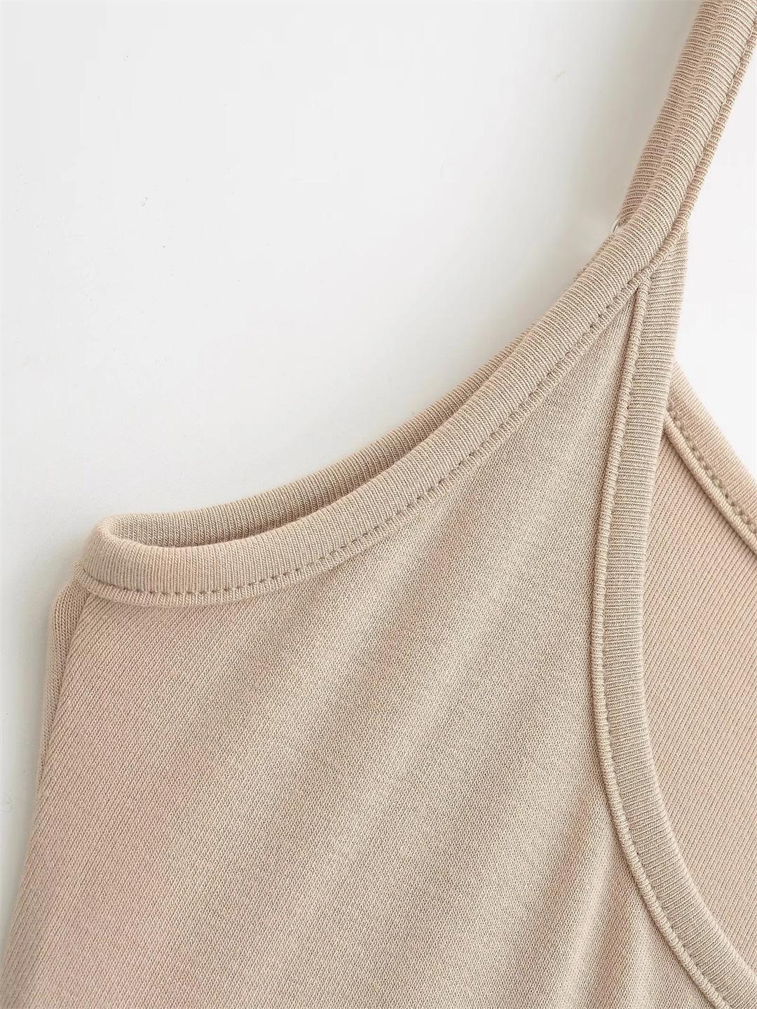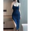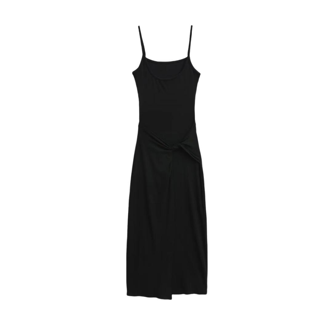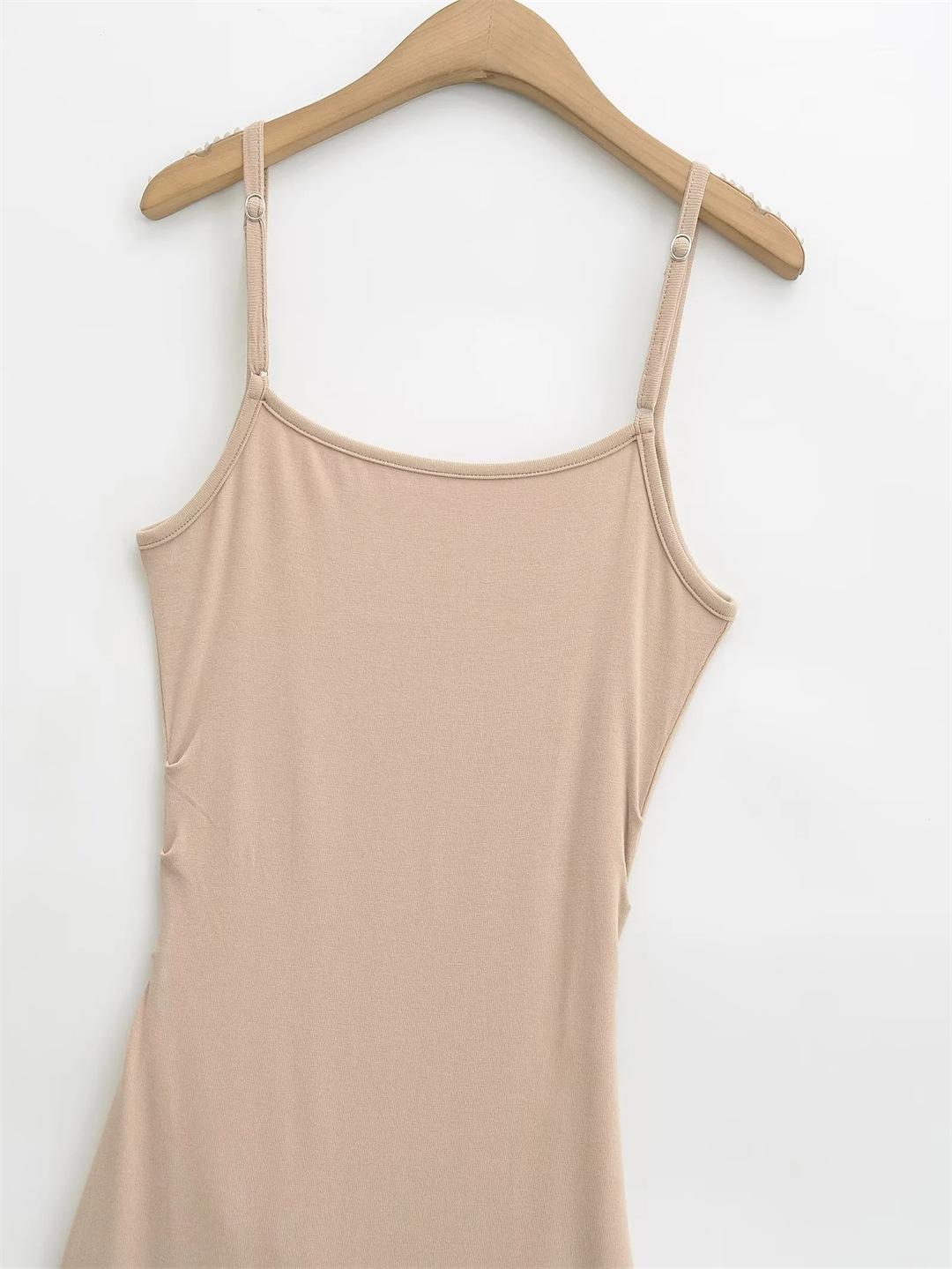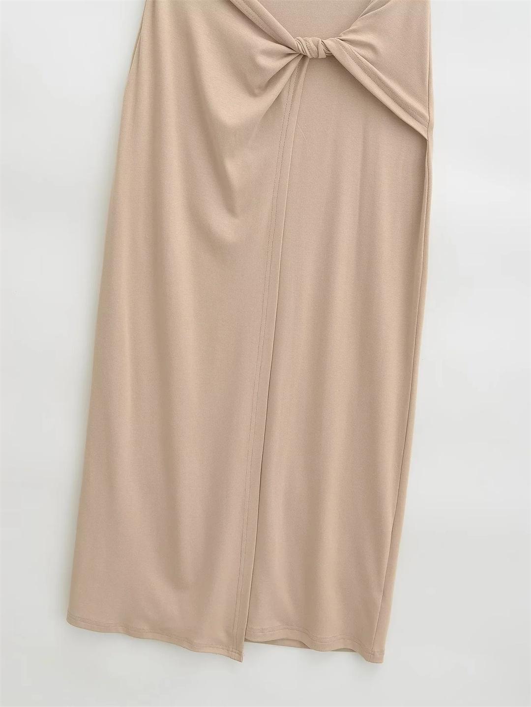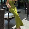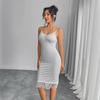 Estilo Europeo y Americano Nicho Chica Hot Color Puro Cintura Cruzada Twist Cadera Falda Larga Cintura Delgada Vestido de Tirantes Verano