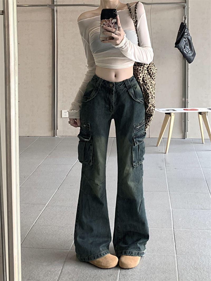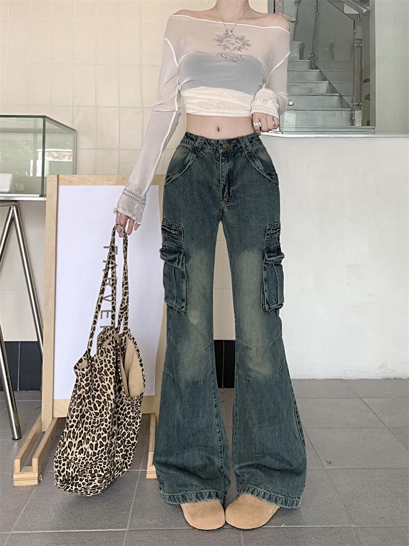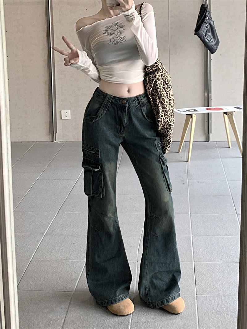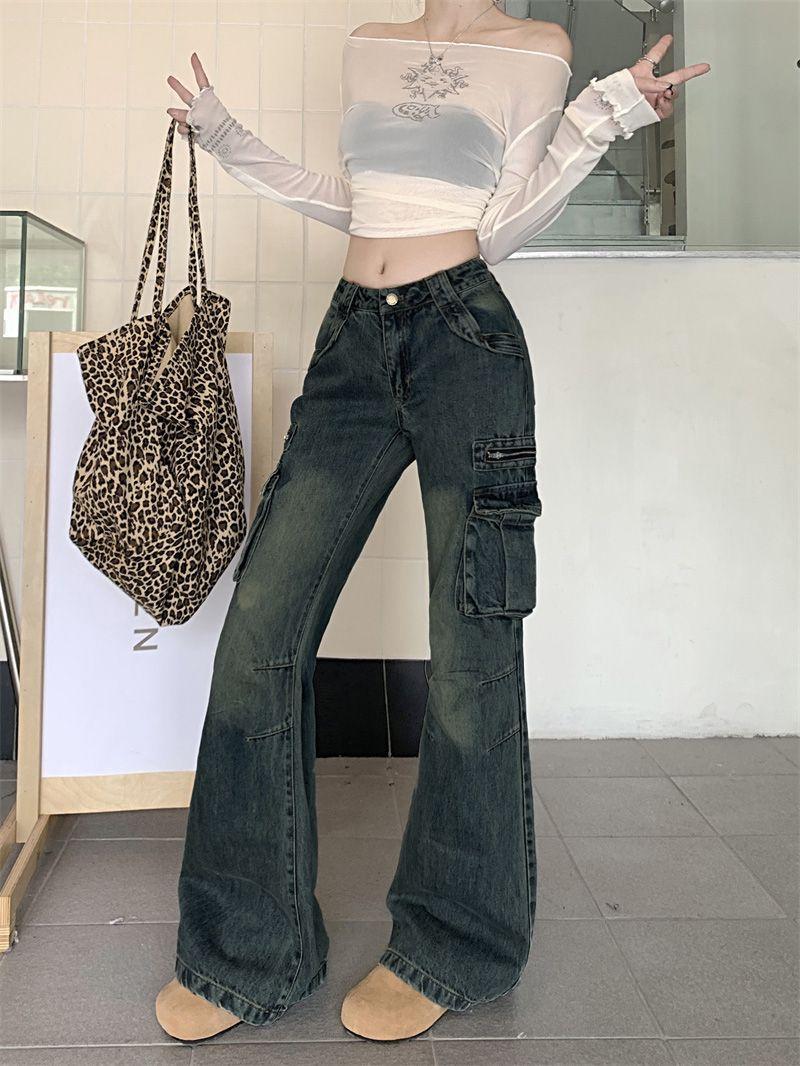 Jeans Micro-Acampanados Slim de Cintura Baja que Cubren la Cadera para Mujer Primavera 2025 Diseño Chic Pantalones Largos Nuevos Estilo Americano
