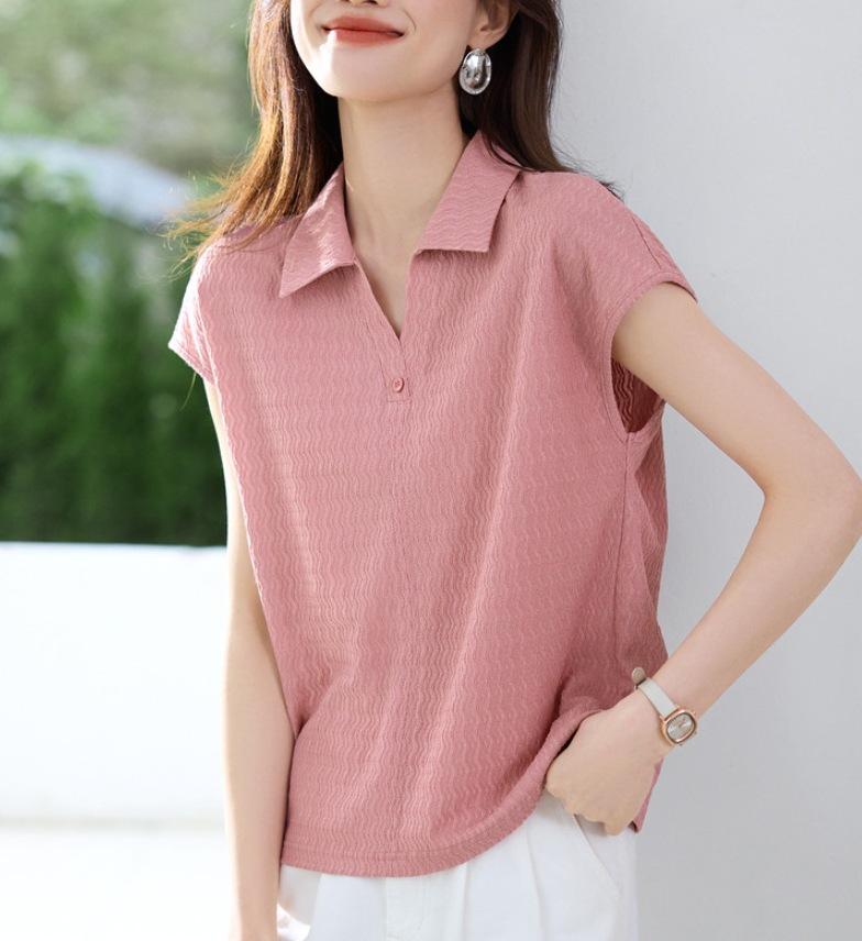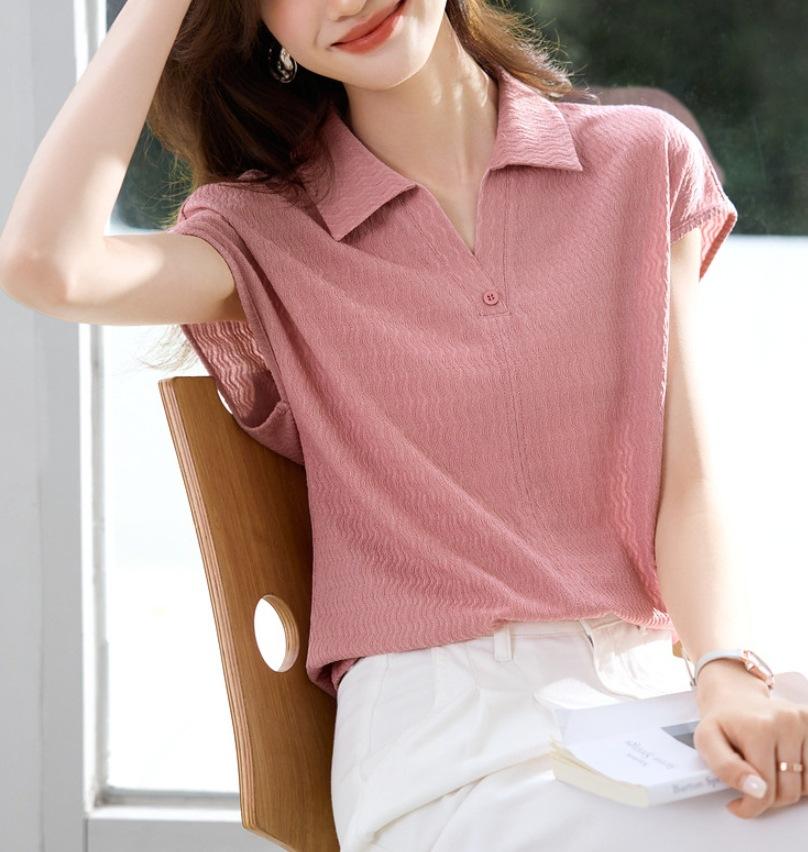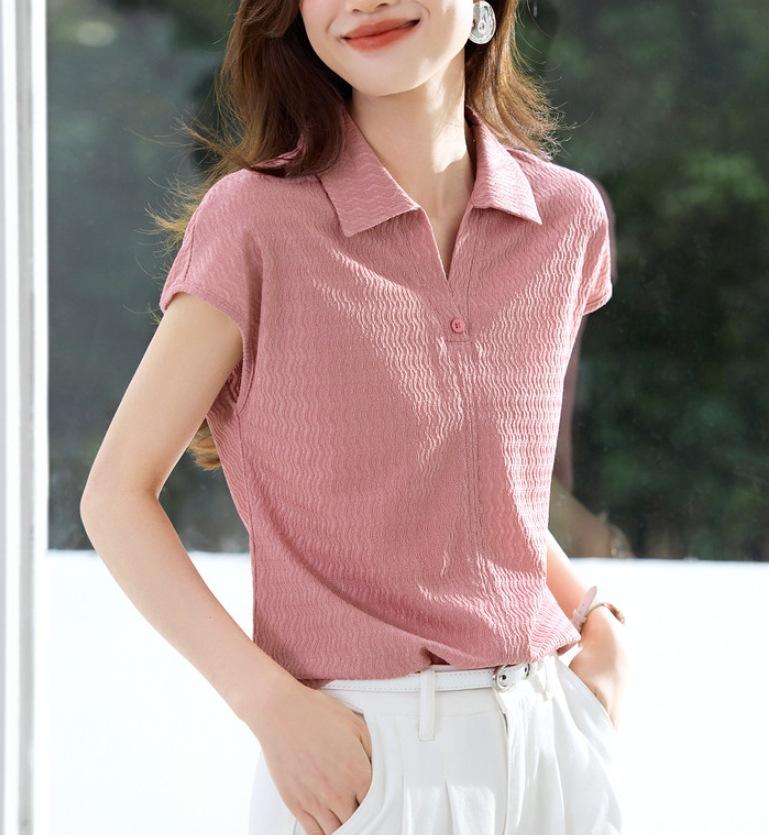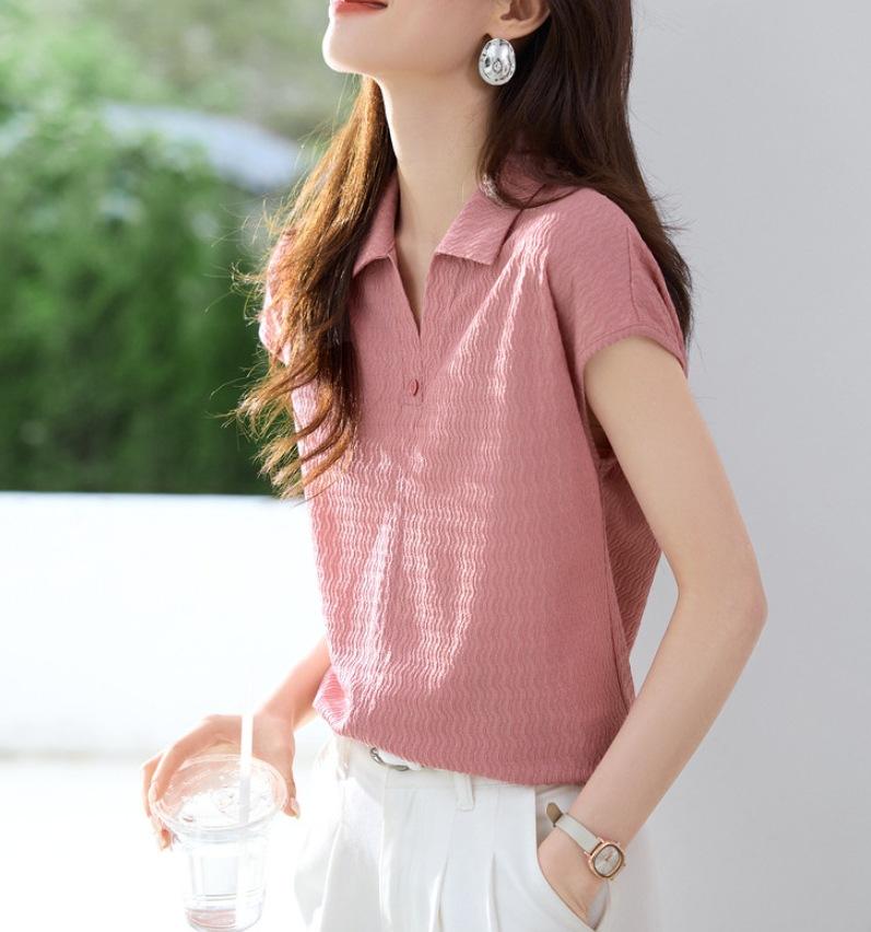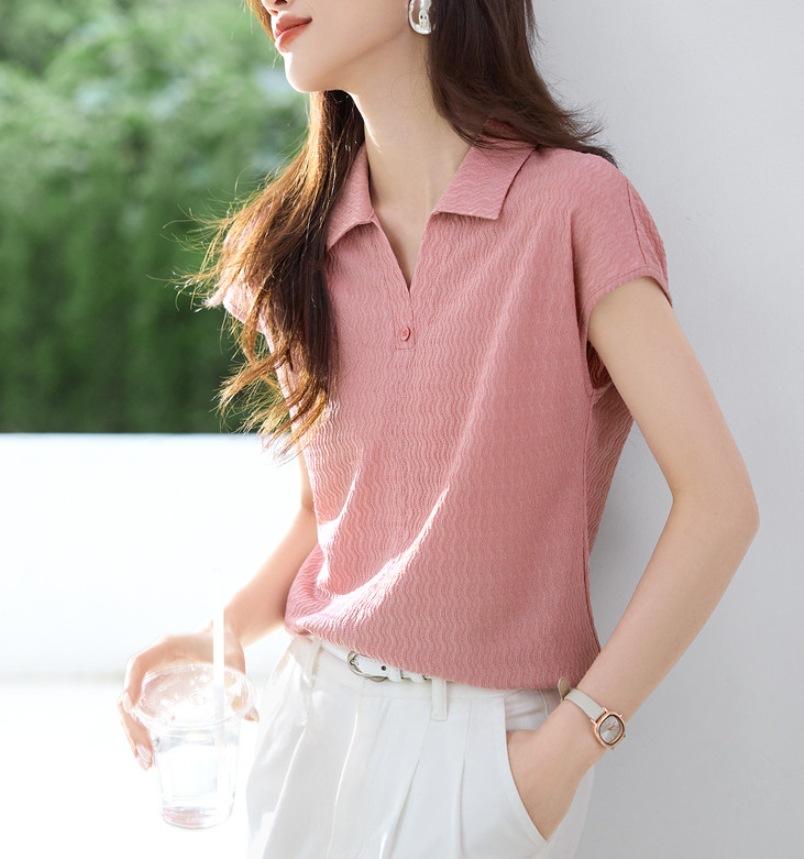 Comercio Exterior 2025 Verano Sentido del Diseño Simple Commuter Camiseta Combinable para Todo Moda Femenina Casual Cuello Polo Camisa Manga Corta