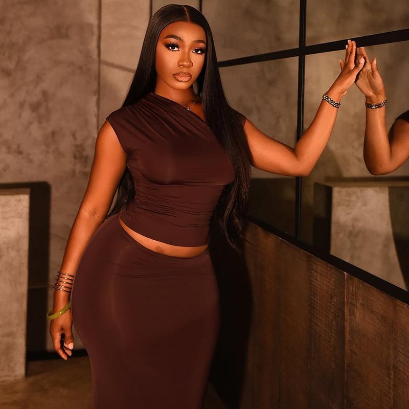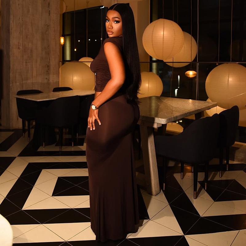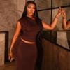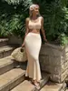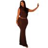 Conjunto de falda plisada de moda de color sólido de estilo europeo y americano, corte slim, cruzado, cuello oblicuo, cadera, falda tubo de una pieza, dos piezas, ropa de mujer