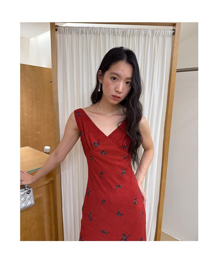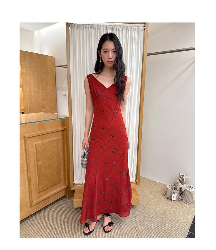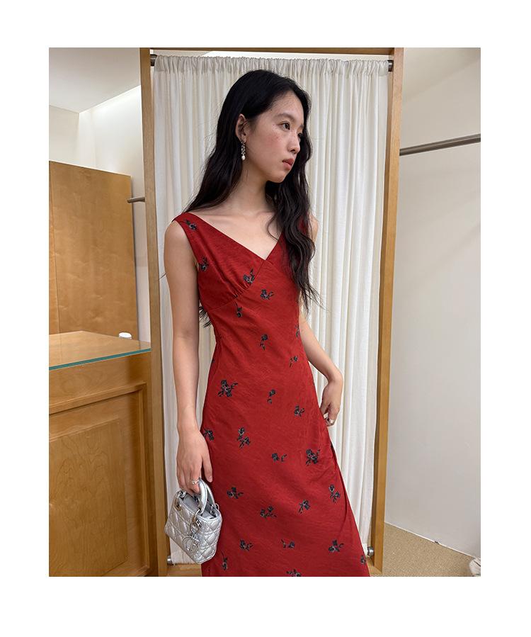 Interpretación de la Belleza Newopen 25 Verano Estilo Francés Estilo Maduro Ligero Rico Elegante Cuello en V Vestido Slim Sin Mangas S5213
