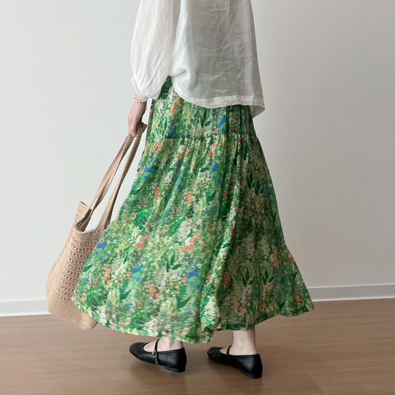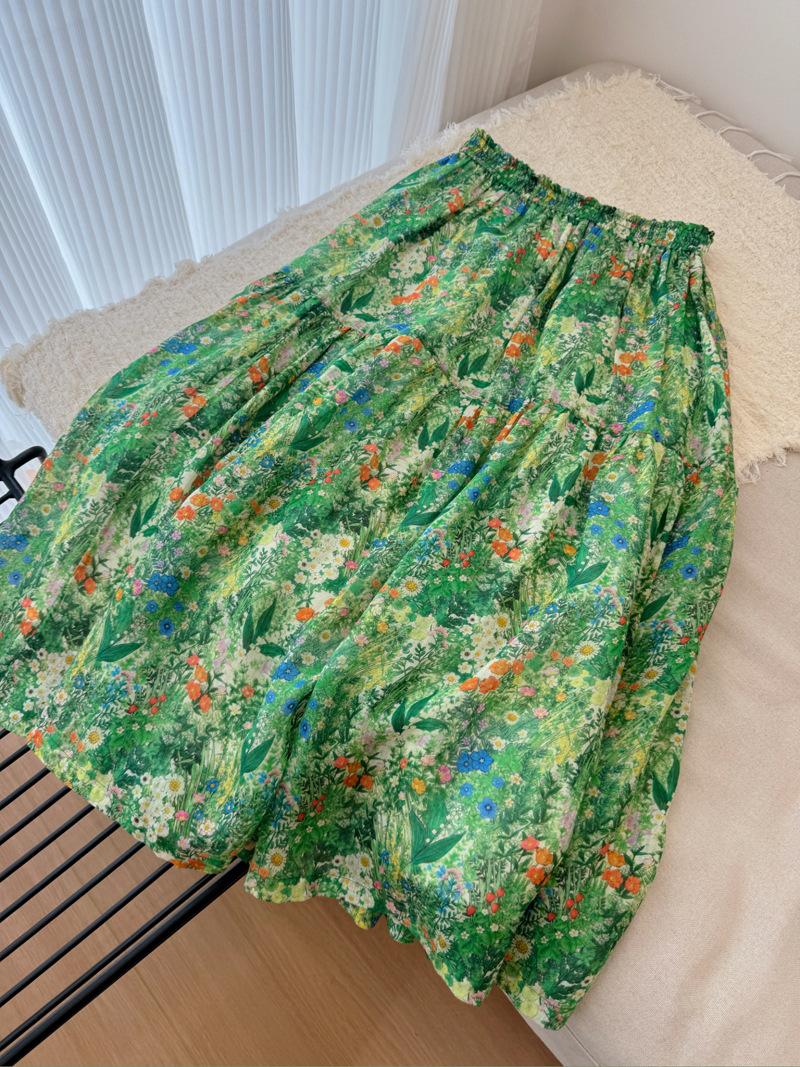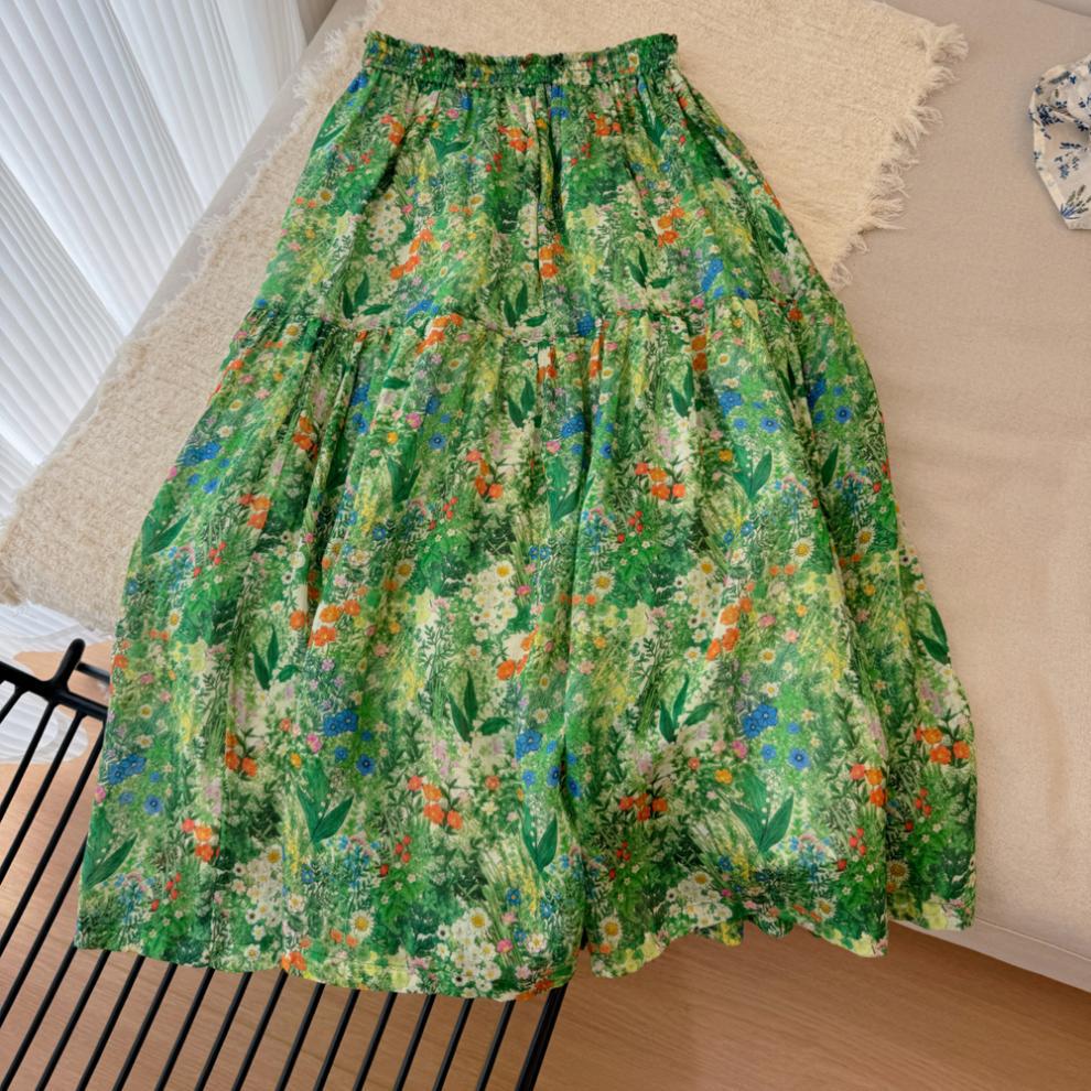 2025 Artístico Retro Casual Verano Nuevo Falda Línea A Midi Adelgazante Falda Pastel Verano Hecho en Casa Mujeres