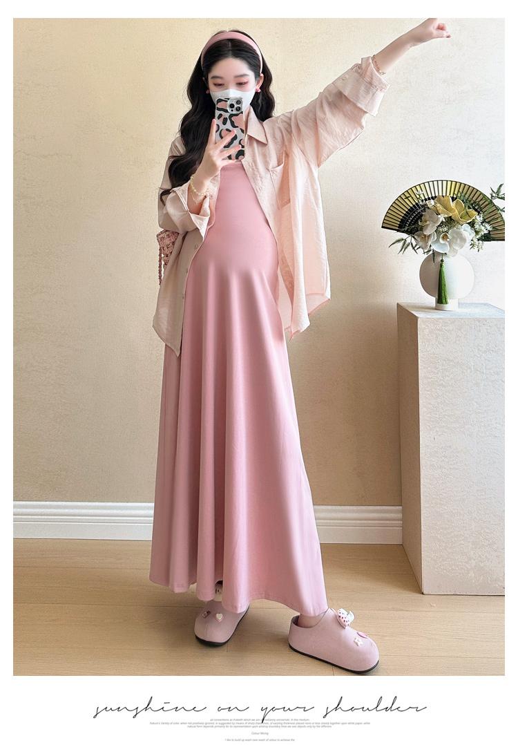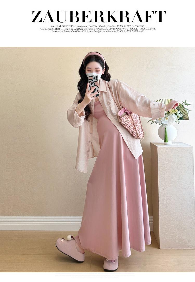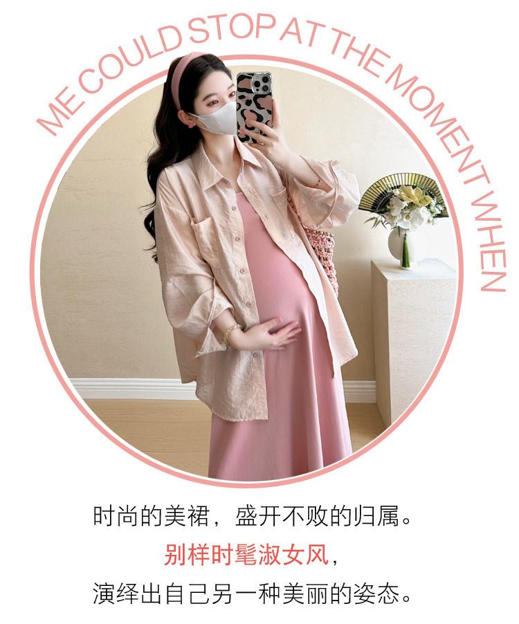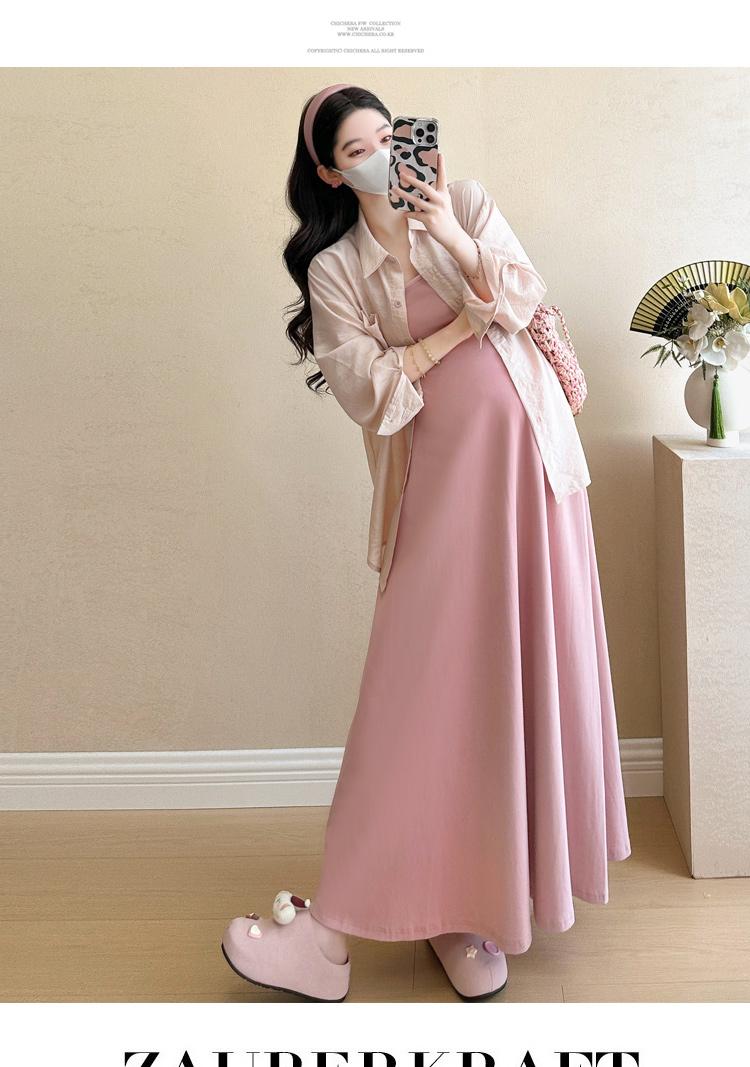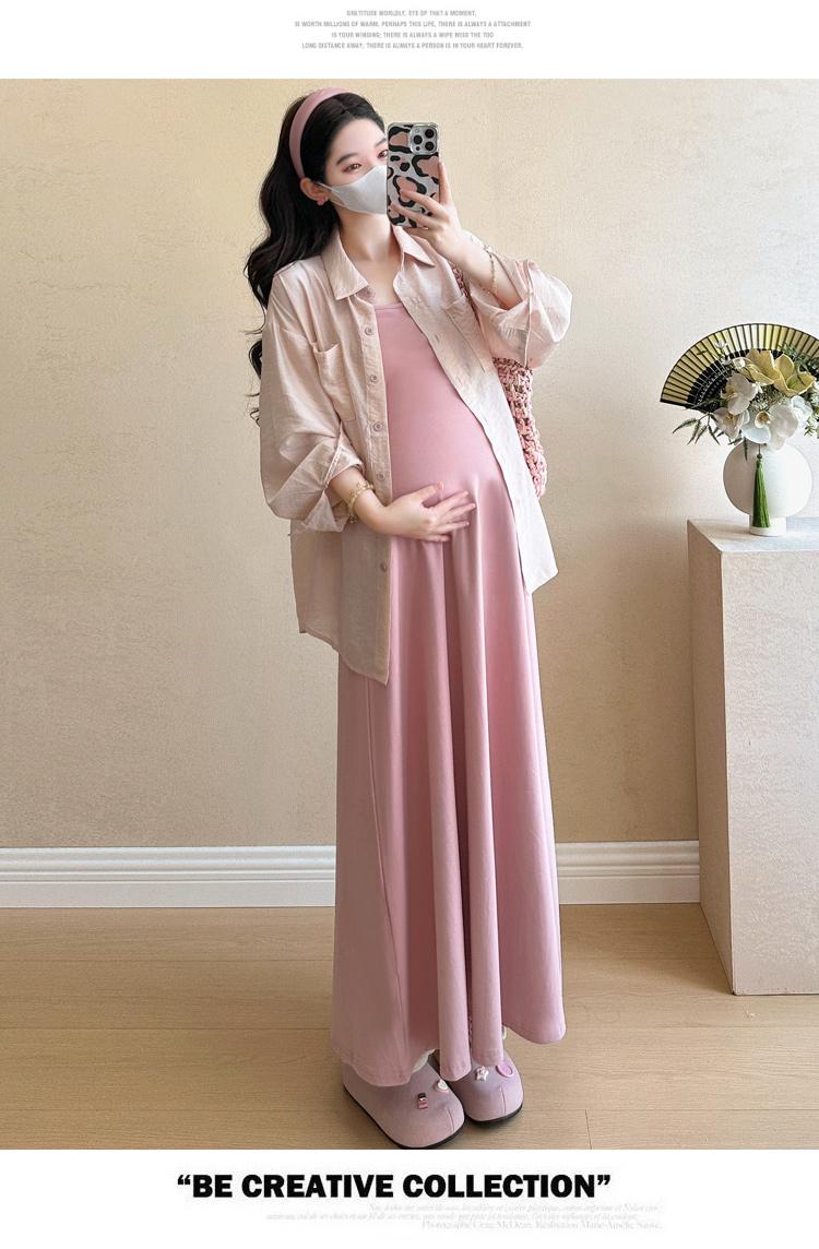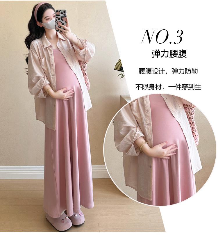 Vestido de maternidad de verano 2025, nueva falda rosa, camisa de protección solar, top, traje de moda.