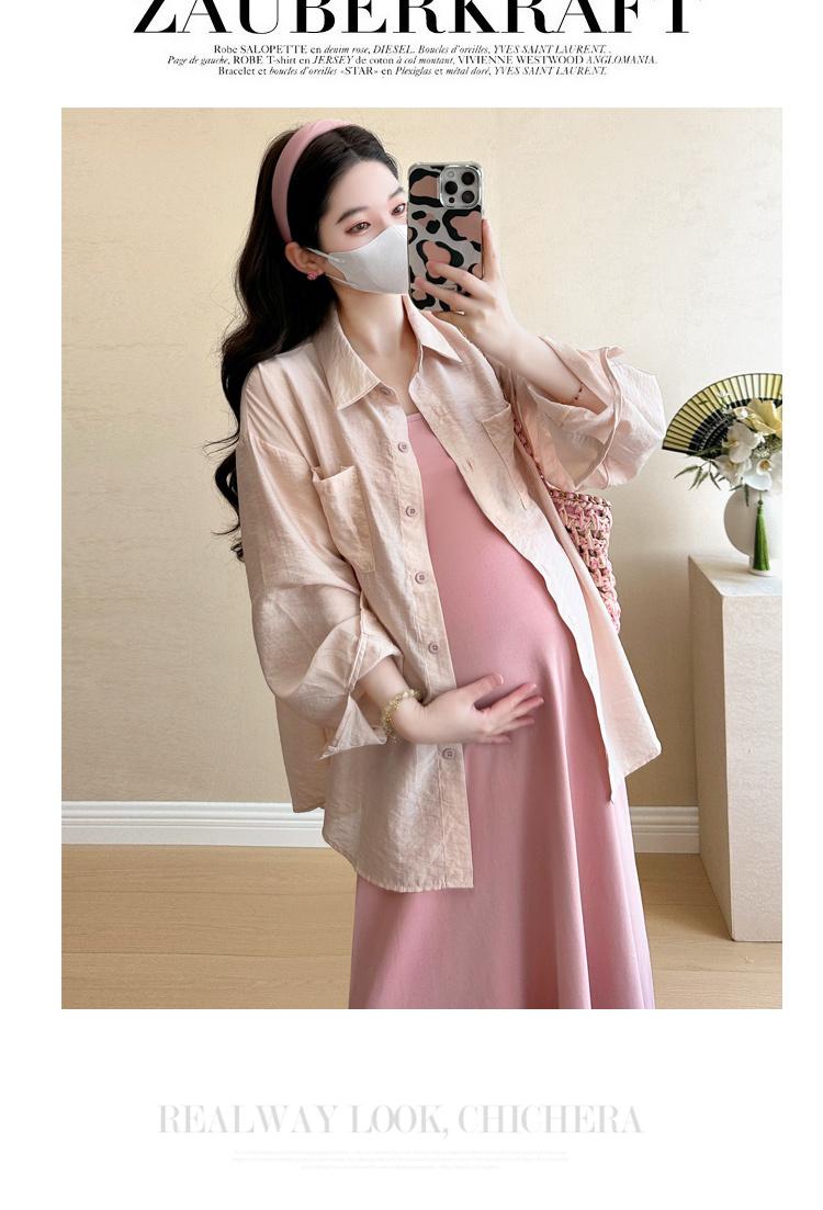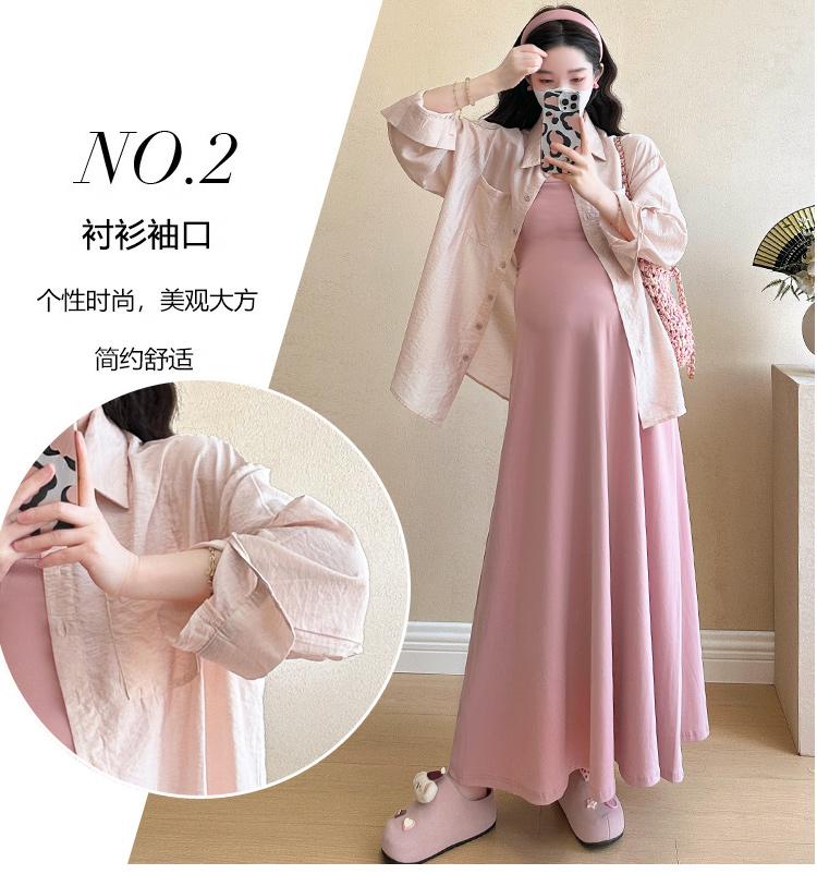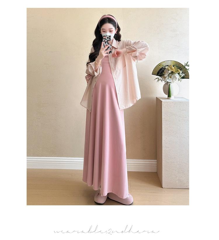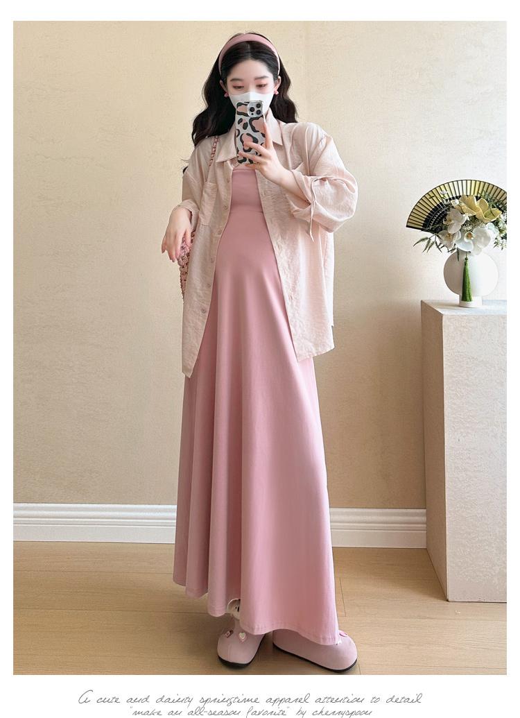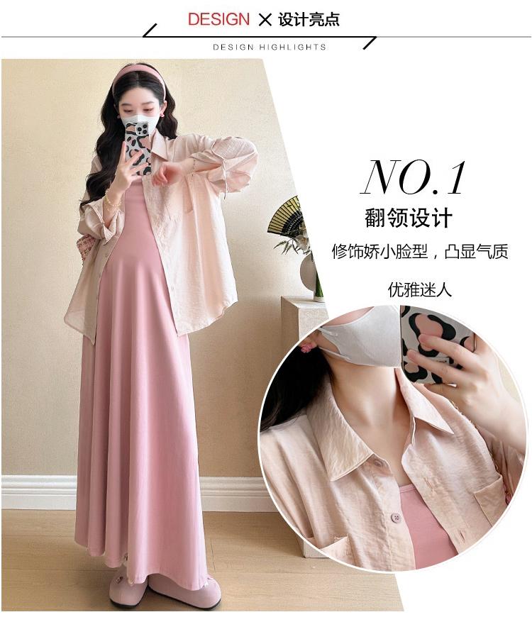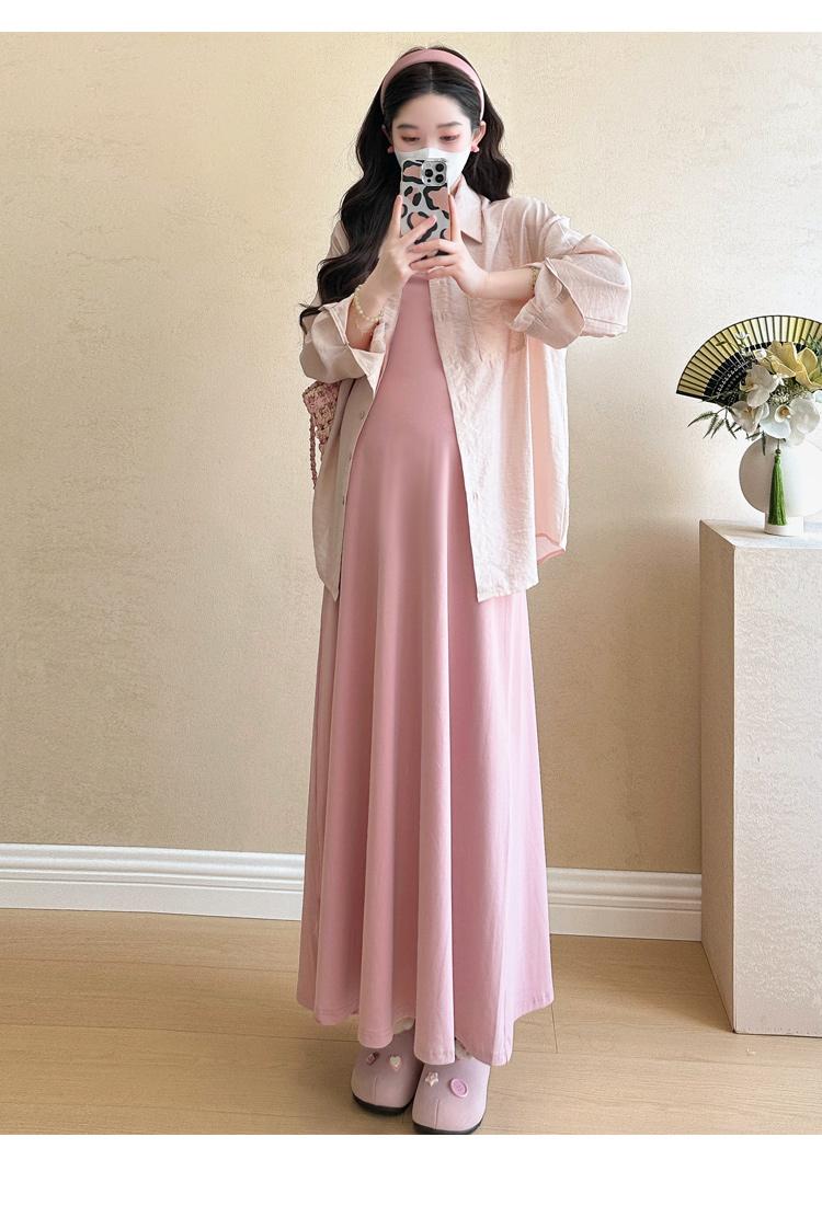 Vestido de maternidad de verano 2025, nueva falda rosa, camisa de protección solar, top, traje de moda.