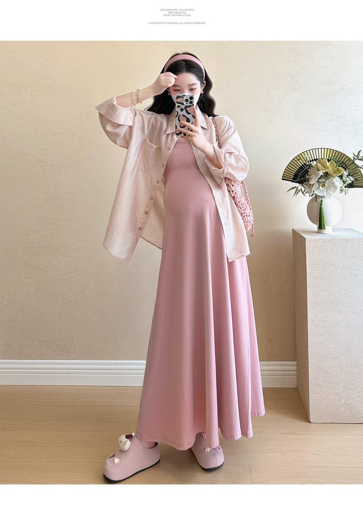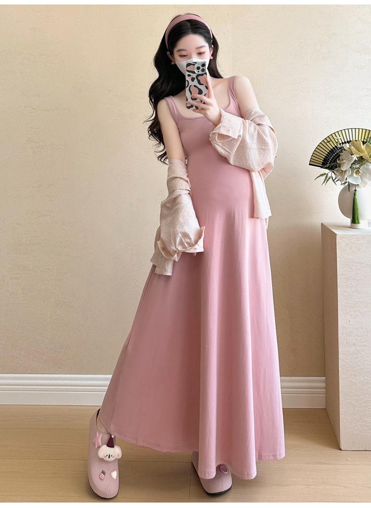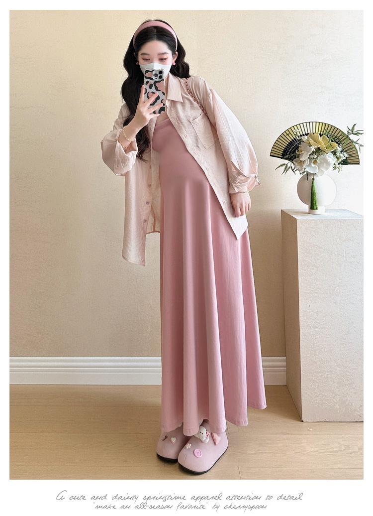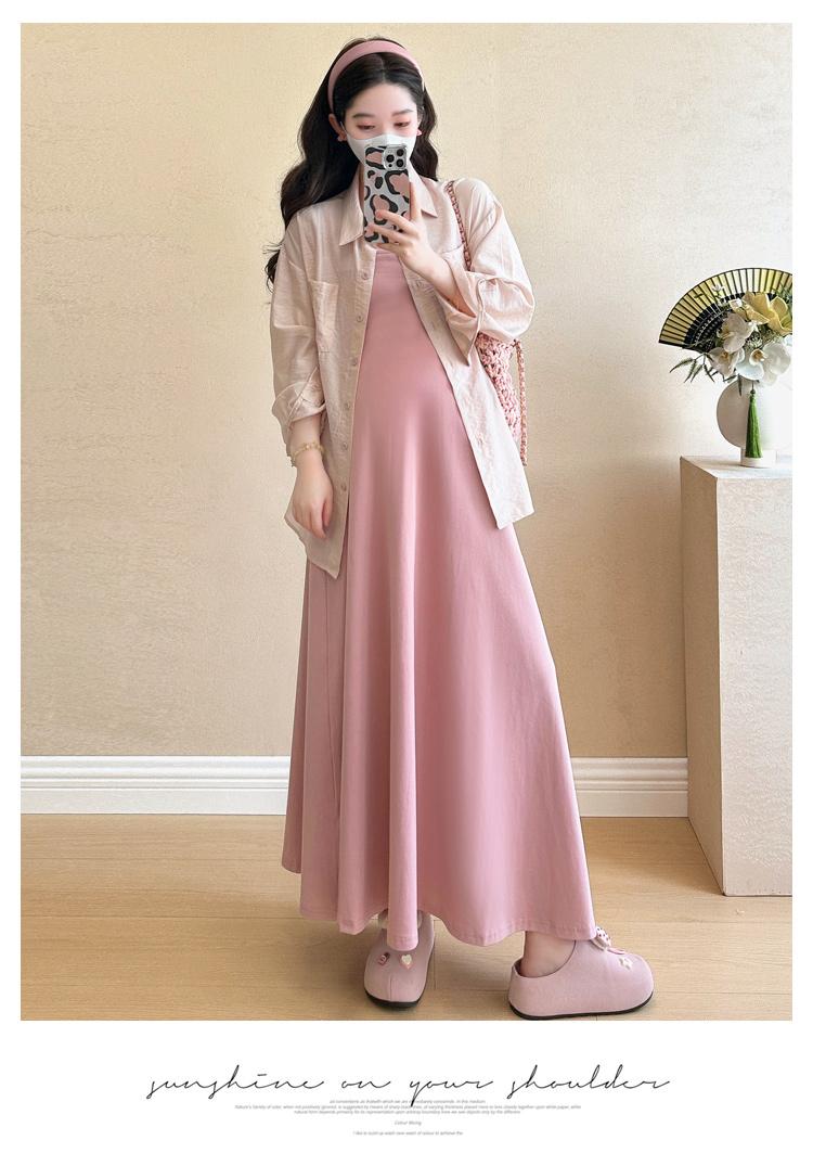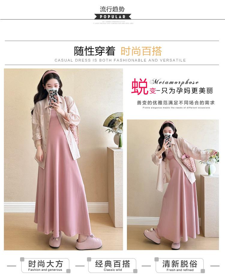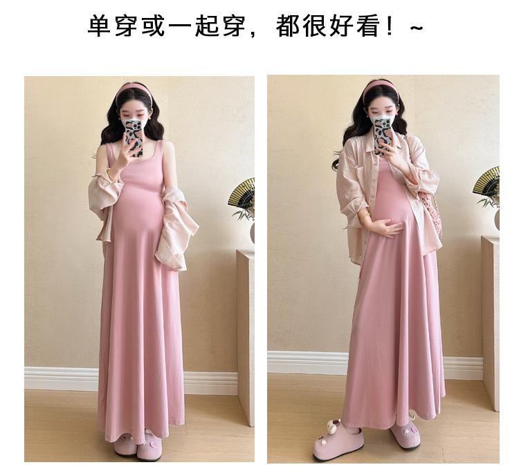 Vestido de maternidad de verano 2025, nueva falda rosa, camisa de protección solar, top, traje de moda.