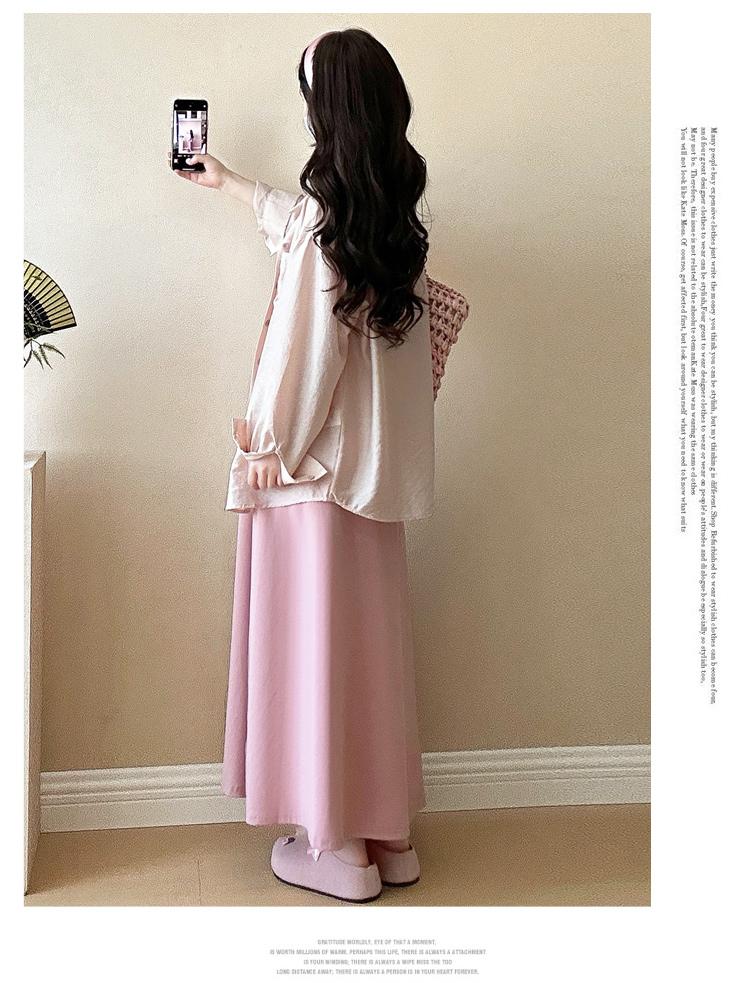 Pink sun protection shirt [single piece], Pink skirt [single piece], Pink sun protection shirt + pink skirt [suit]