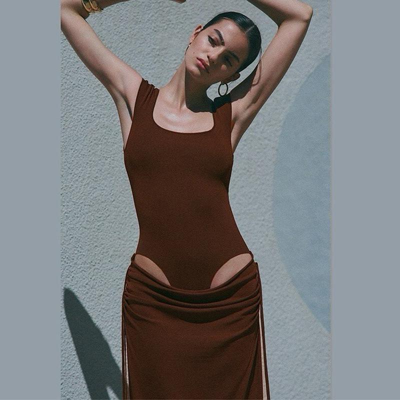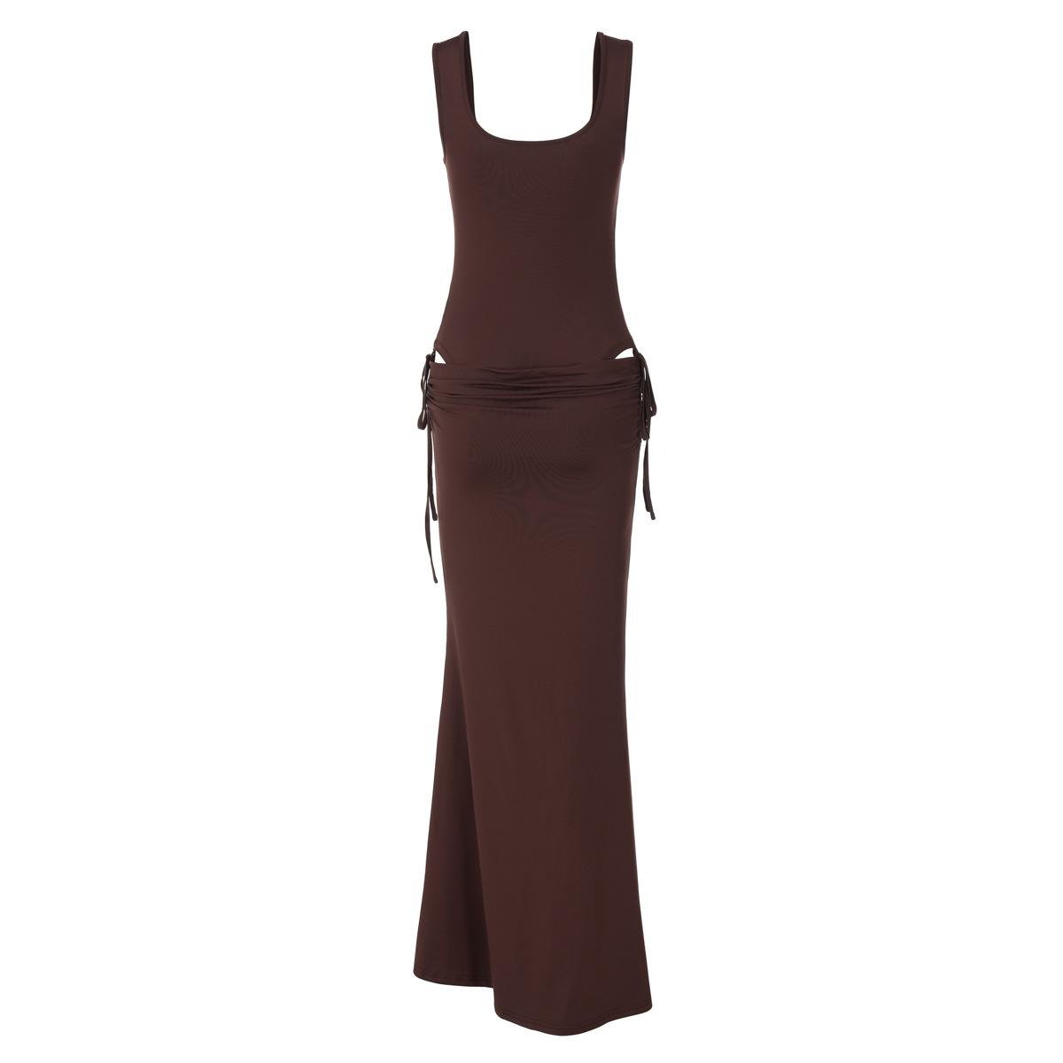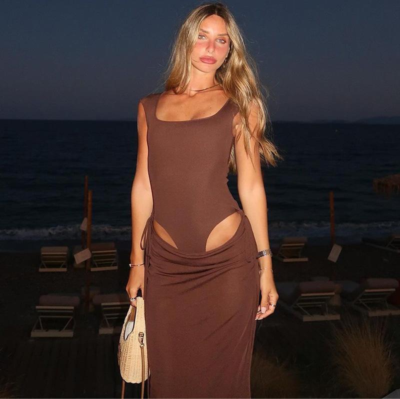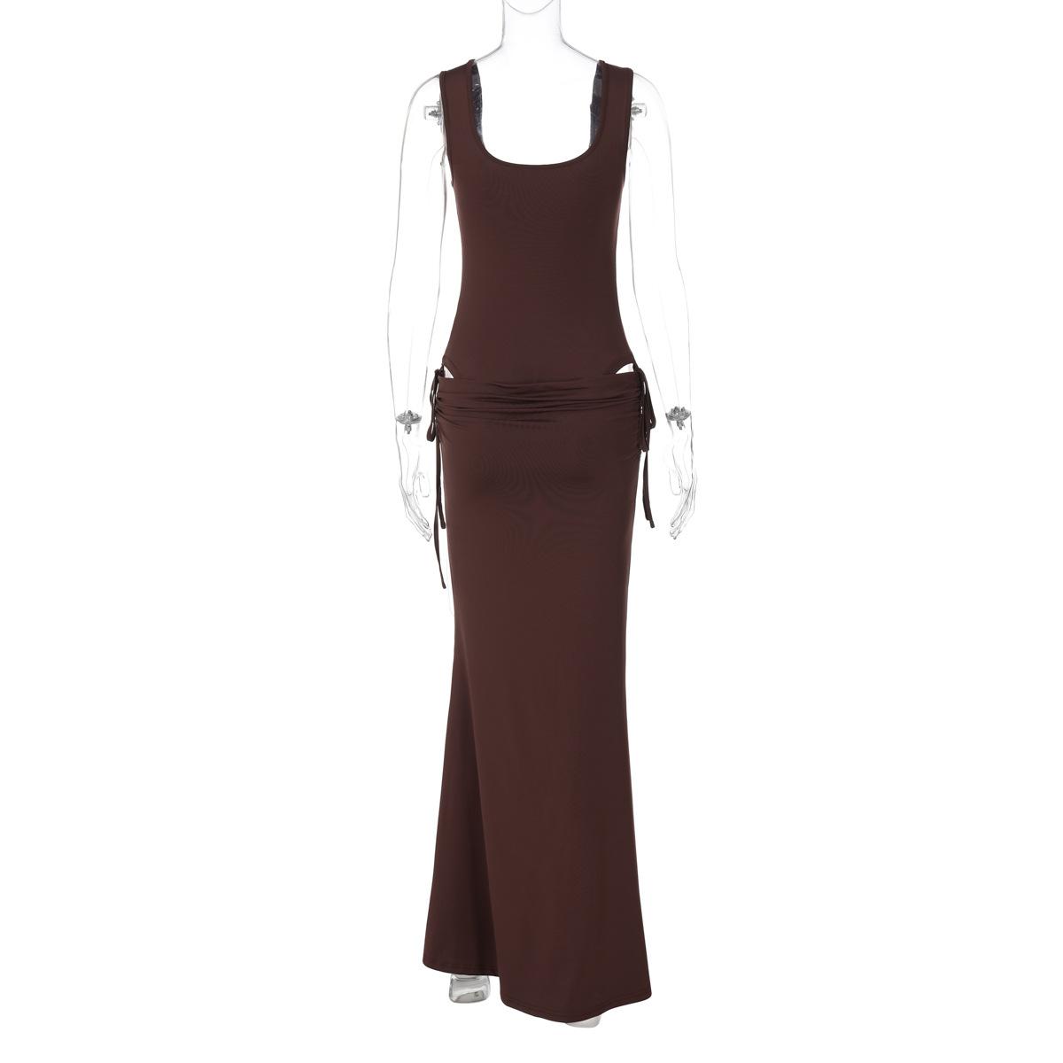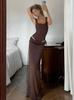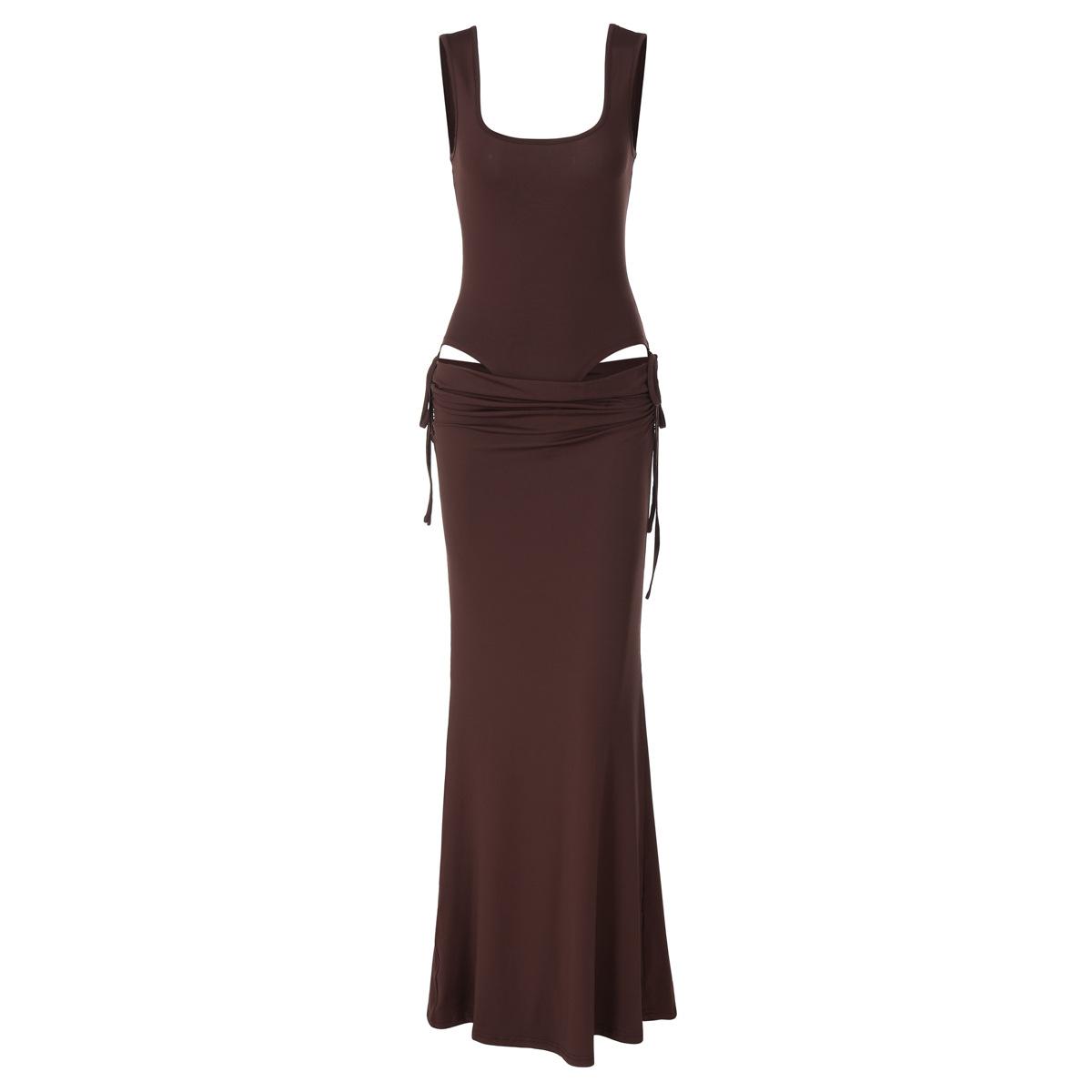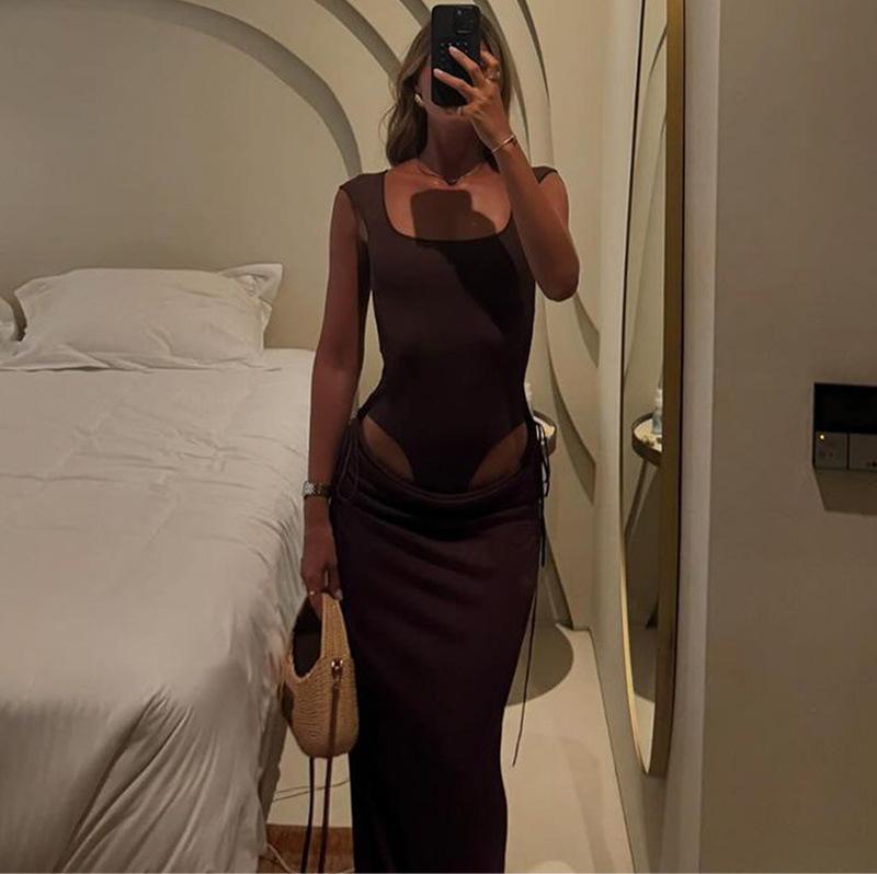 Amazon Más Vendido Sexy Corsé de Espina de Pescado para Mujer Empalmado Vendaje Temperamento Estilo Urbano Vestido Largo de Color Sólido para Mujer