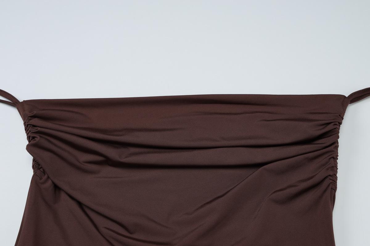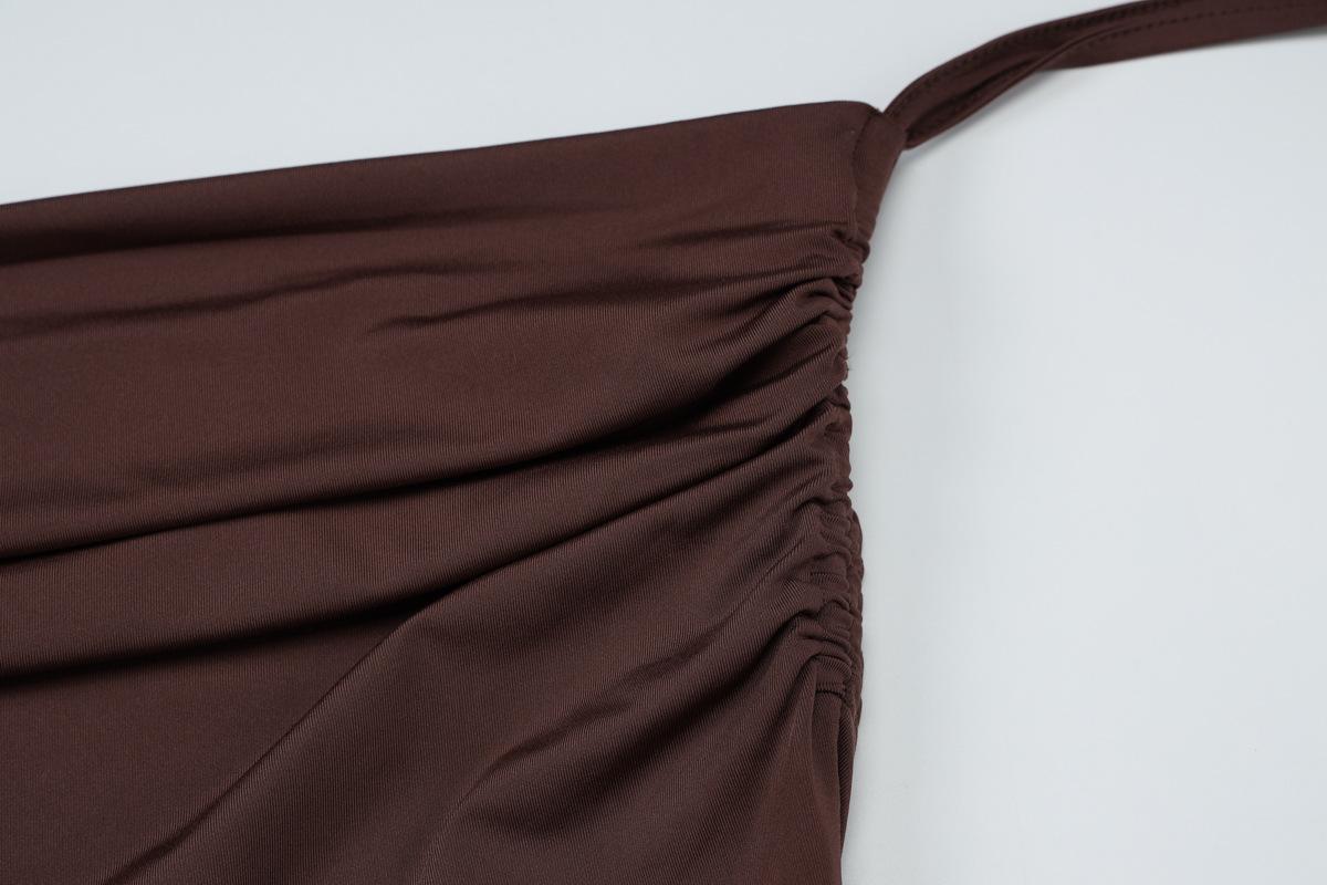 Otoño 2025 Amazon Nueva Ropa de Mujer Transfronteriza Europea y Americana Sexy Color Sólido Bodycon Temperamento Cintura Entallada Vestido Fruncido