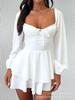 Ropa de Mujer Europea y Americana 2025 Otoño Nueva Moda Estilo Fresco Manga Larga Ajustado Bloque de Color Adorno de Volantes Vestido con Cordones