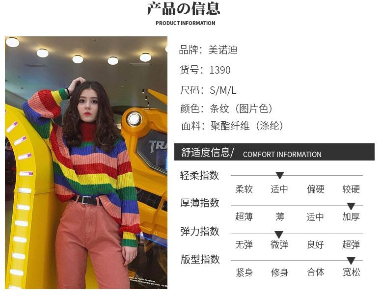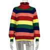 Suéter Popular de Punto Amazon de Primavera Cuello Alto Jersey Color Contrastante Manga Larga Suéter Suelto Top Ropa Europea y Americana