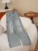 Jeans de Nueve Puntos de Nuevo Estilo, Desgastados, Lavados, de Cintura Alta, Jeans Slim