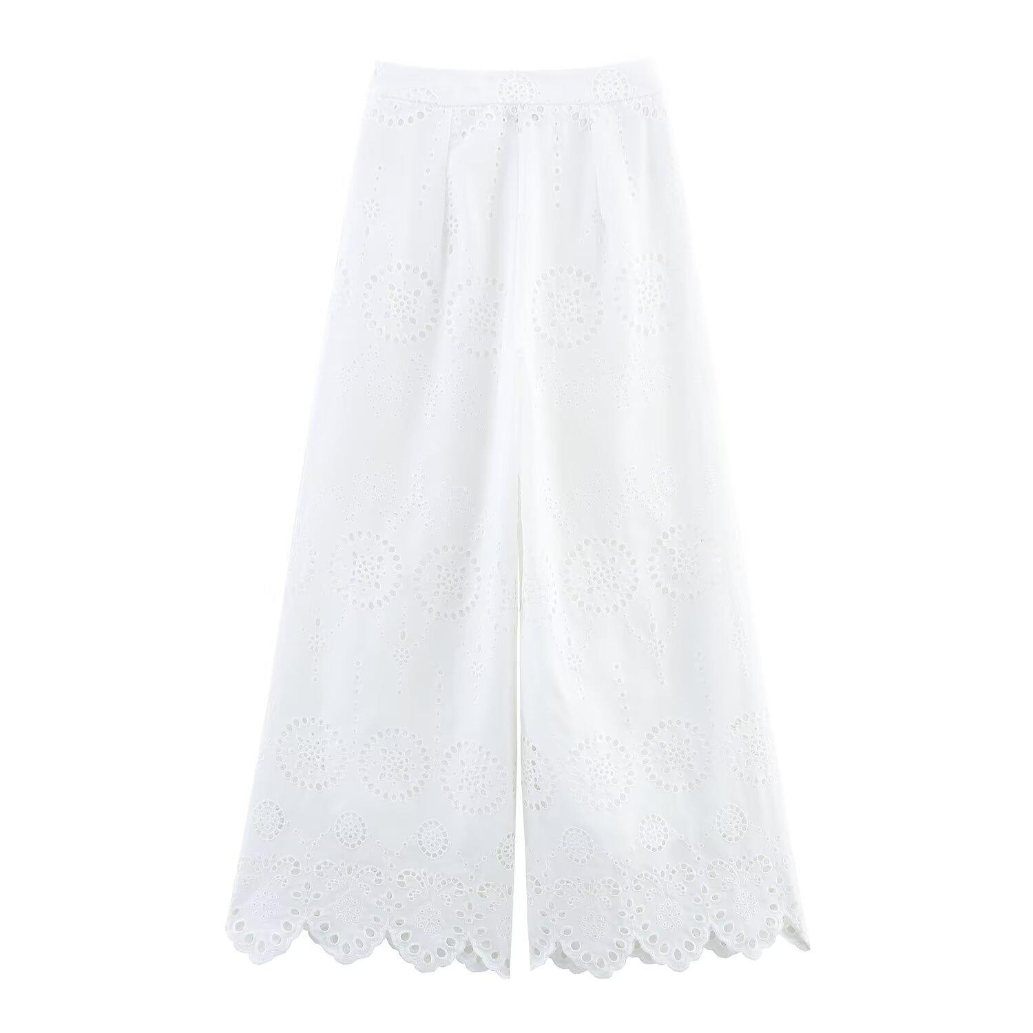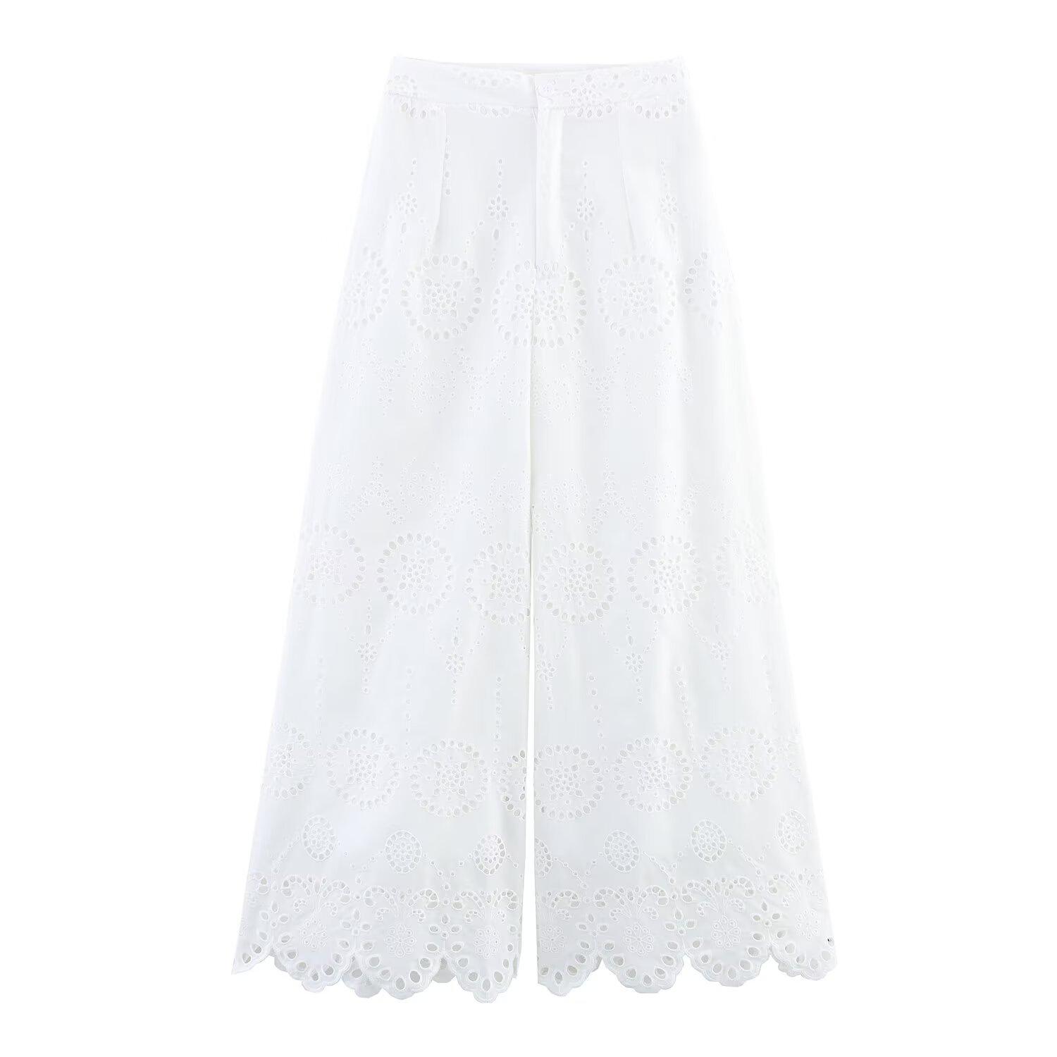 Z Transfronterizo Europeo y Americano Venta al Por Mayor 2025 Verano Nueva Moda Elegante Casual Suelto Pierna Ancha Pantalones de Moda Bordados para Mujer
