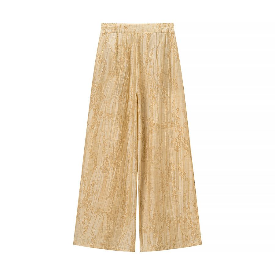 2025 Verano Nuevo Europeo y Americano Transfronterizo para Mujer Jacquard Camisa Suelta + Pantalón Casual Traje de Dos Piezas W091 2690