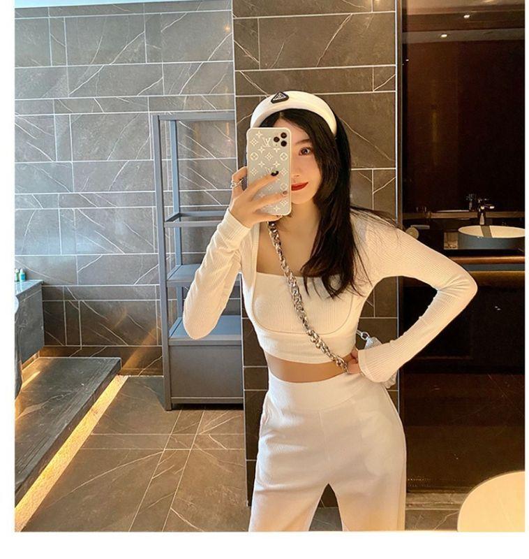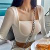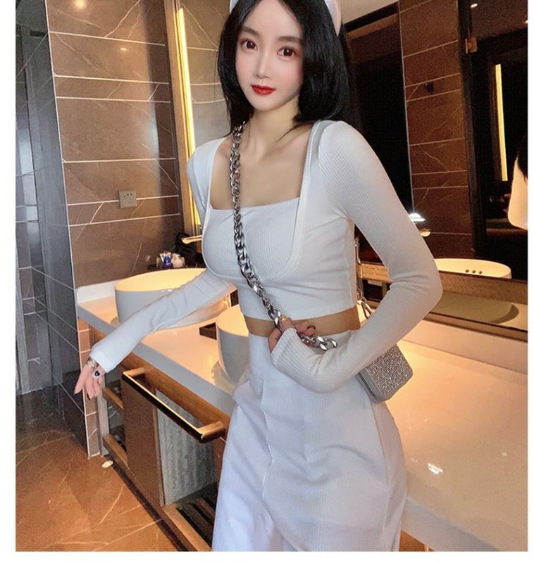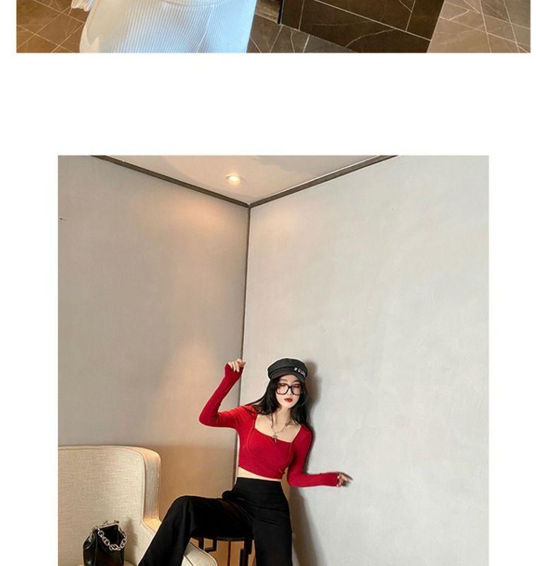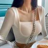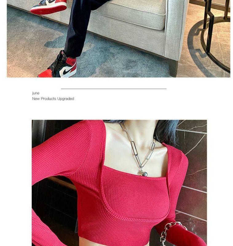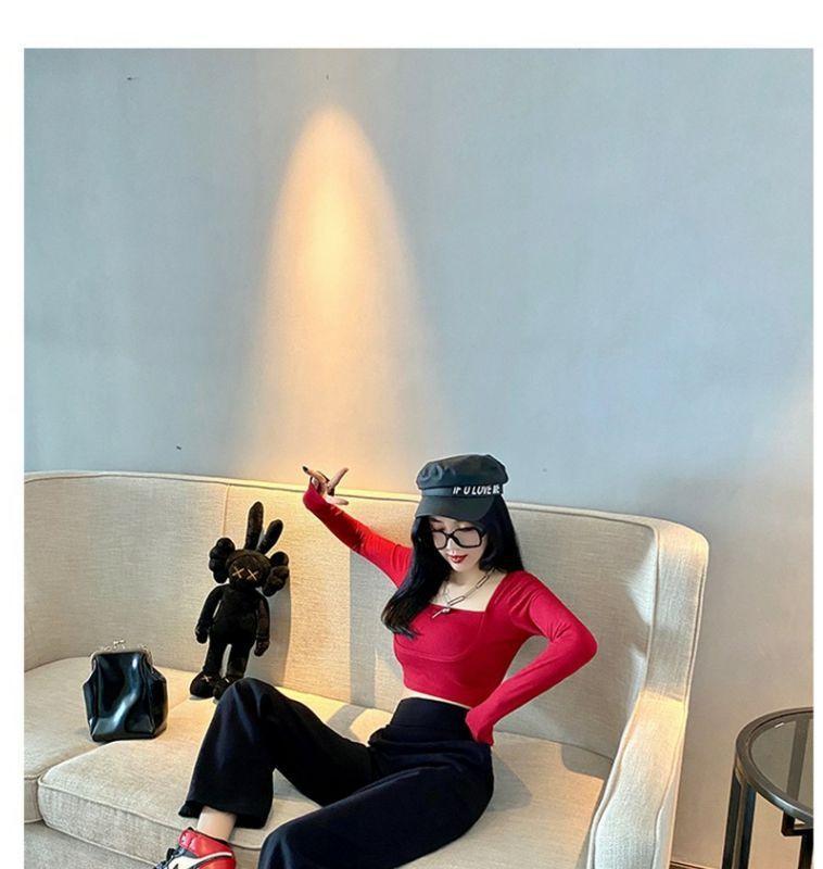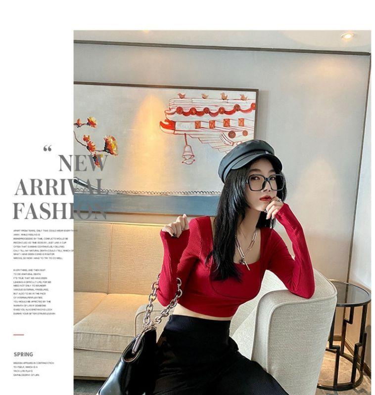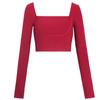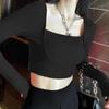 [Venta al por mayor transfronteriza] Camisa de manga larga con cuello cuadrado para mujer para usar en primavera, ajustada, camisa corta básica que deja al descubierto el ombligo