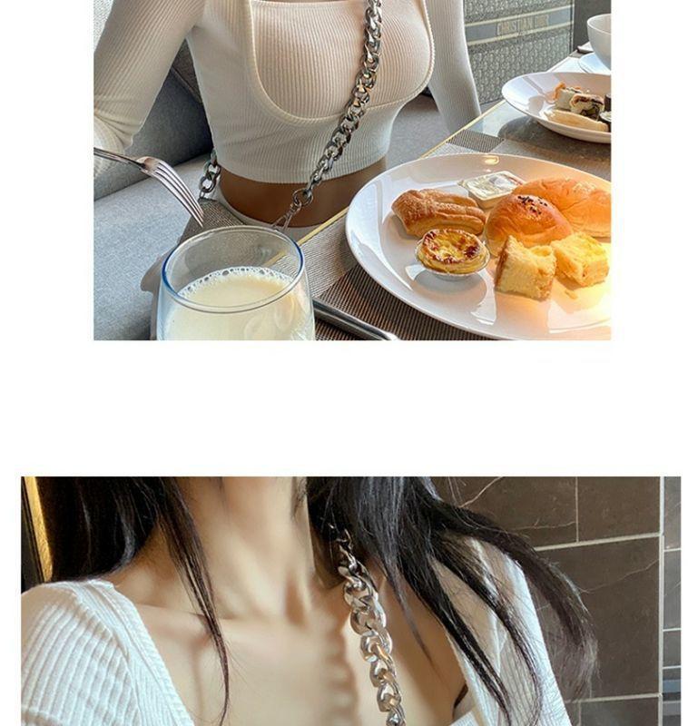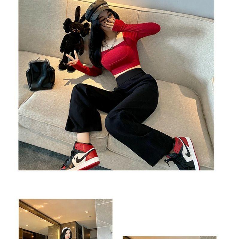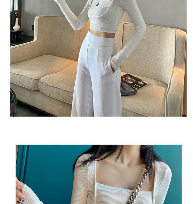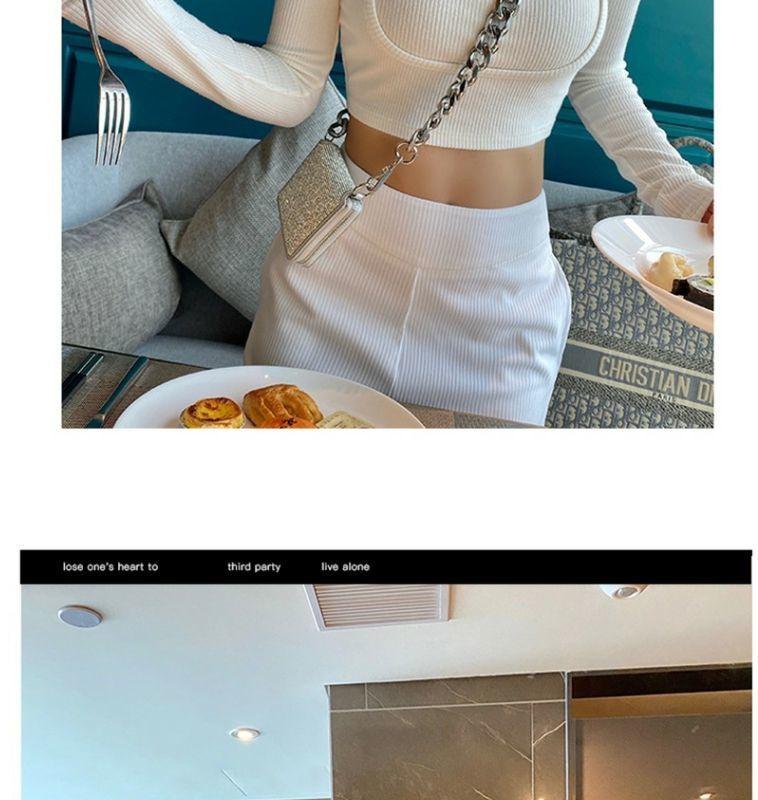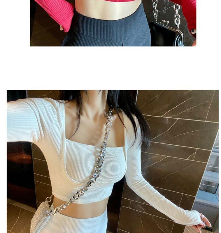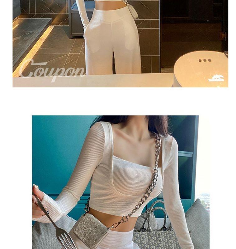 [Venta al por mayor transfronteriza] Camisa de manga larga con cuello cuadrado para mujer para usar en primavera, ajustada, camisa corta básica que deja al descubierto el ombligo