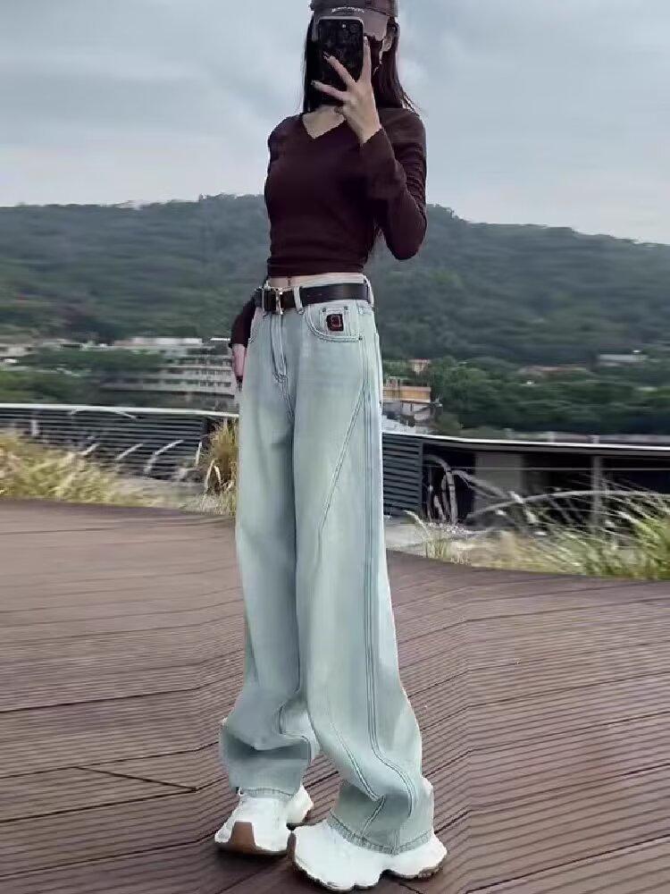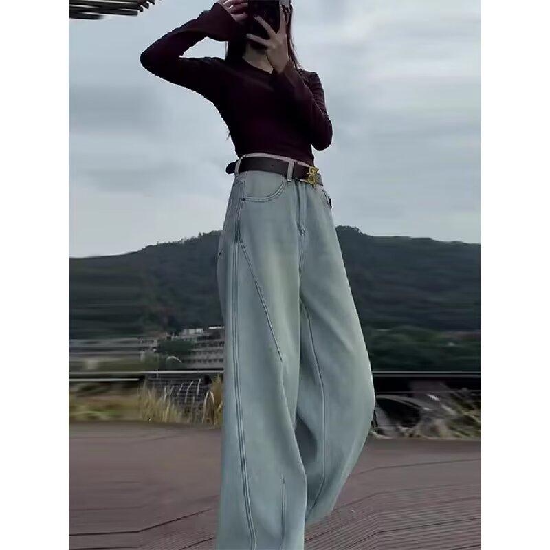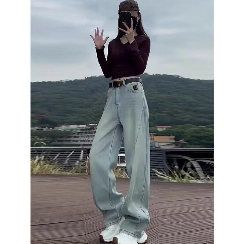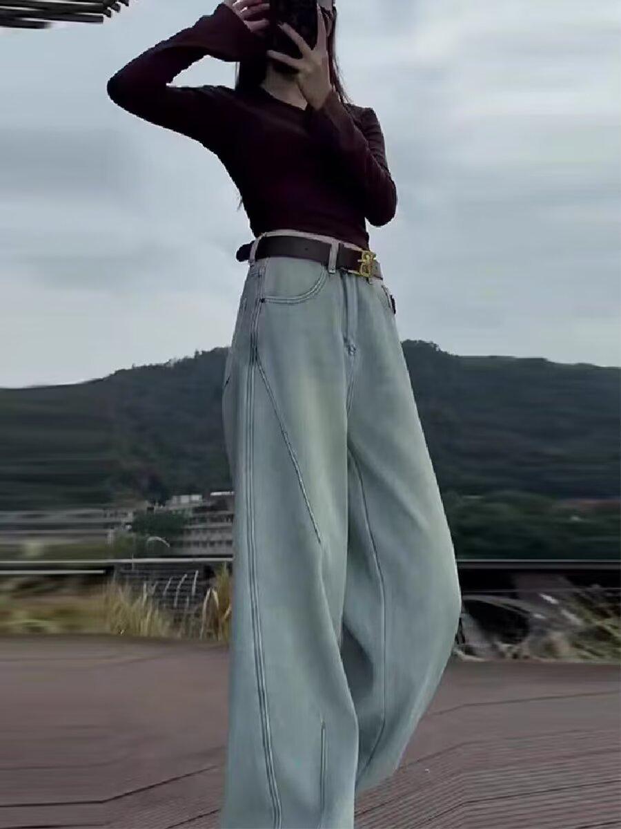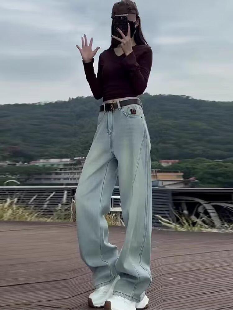 Jeans Americanos Retro Talla Grande para Mujer 2025 Primavera y Verano Gordo mm Holgado Lavado Cintura Alta Aspecto Adelgazante Pantalones de Pierna Ancha