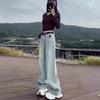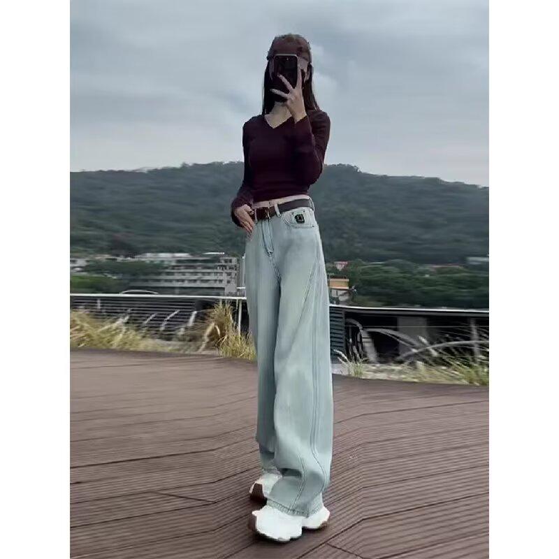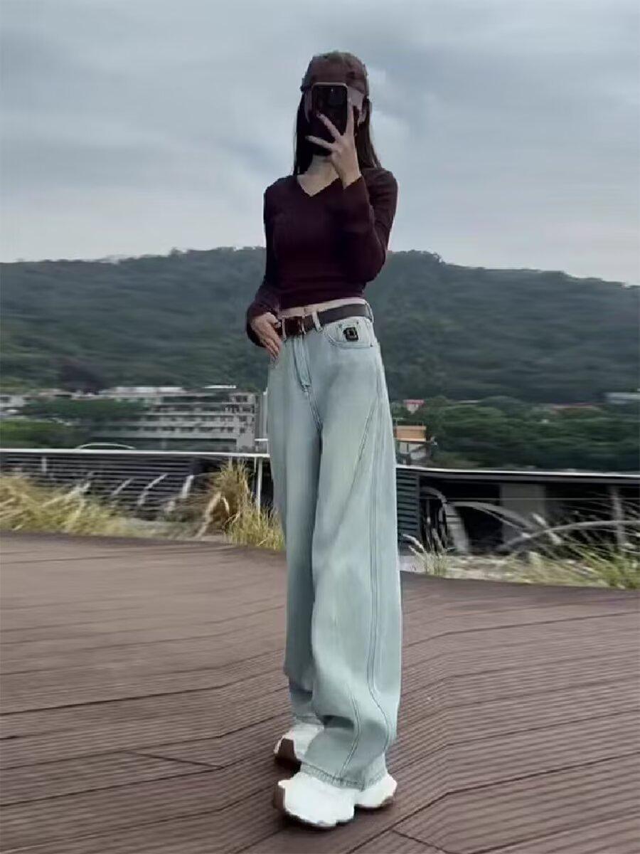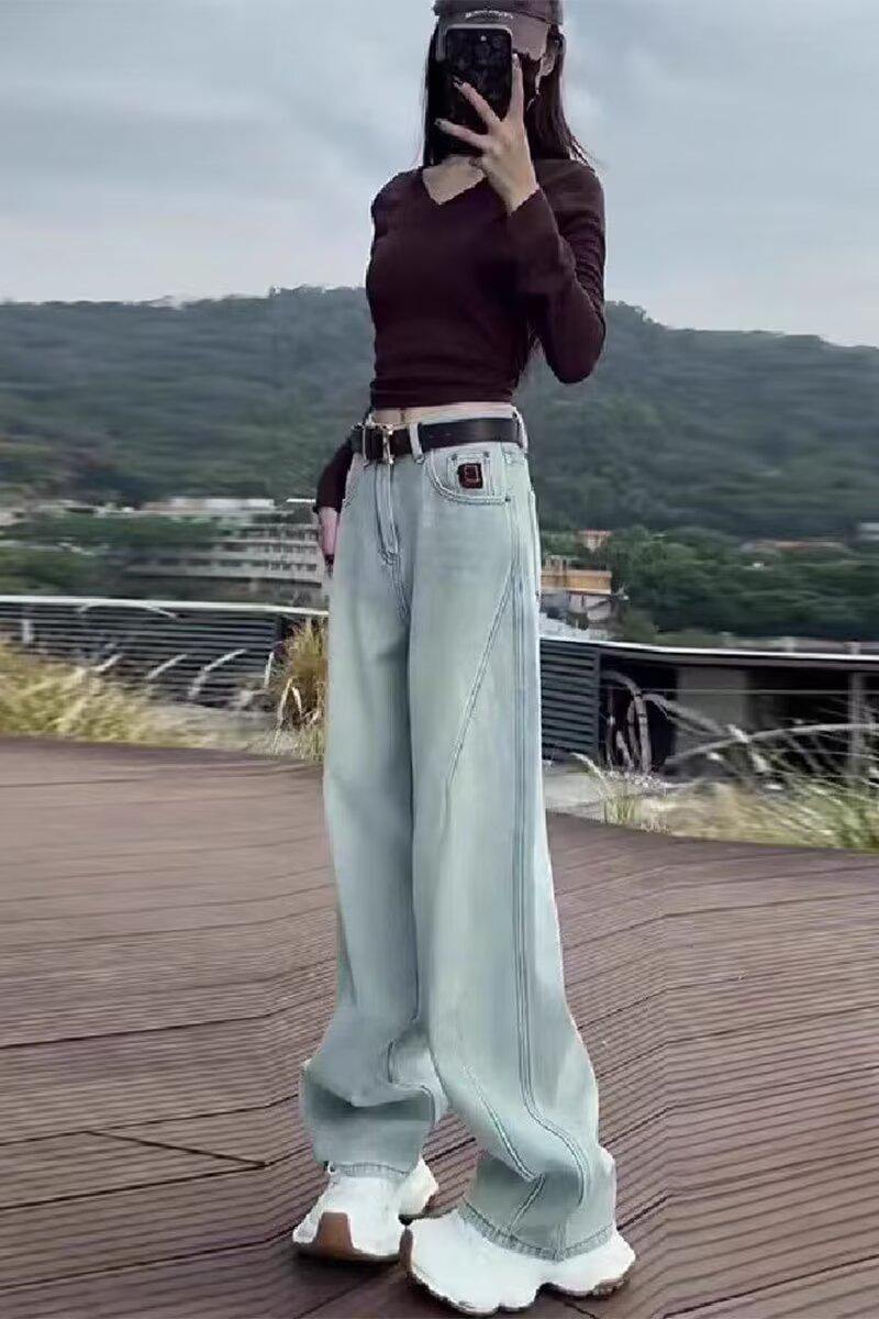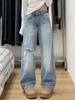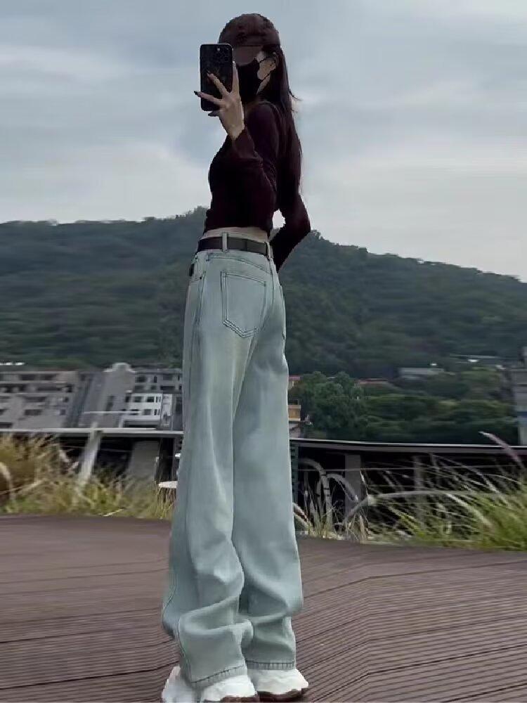 Jeans Americanos Retro Talla Grande para Mujer 2025 Primavera y Verano Gordo mm Holgado Lavado Cintura Alta Aspecto Adelgazante Pantalones de Pierna Ancha