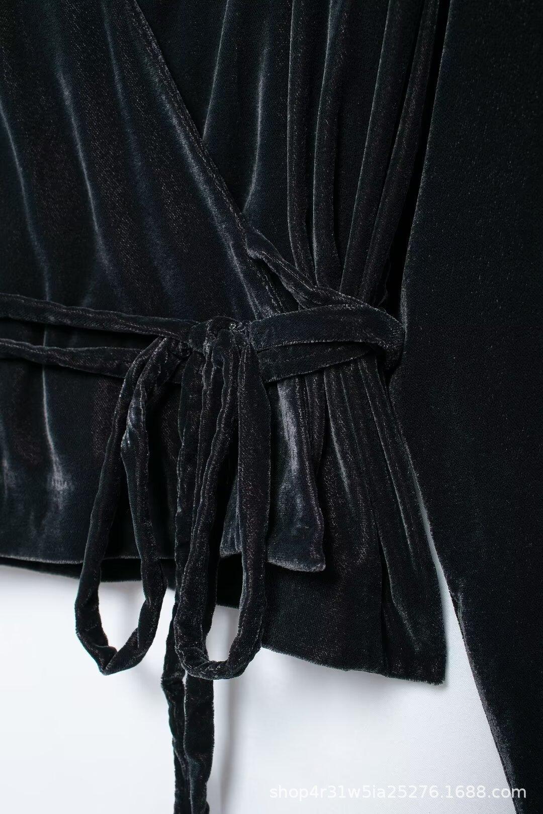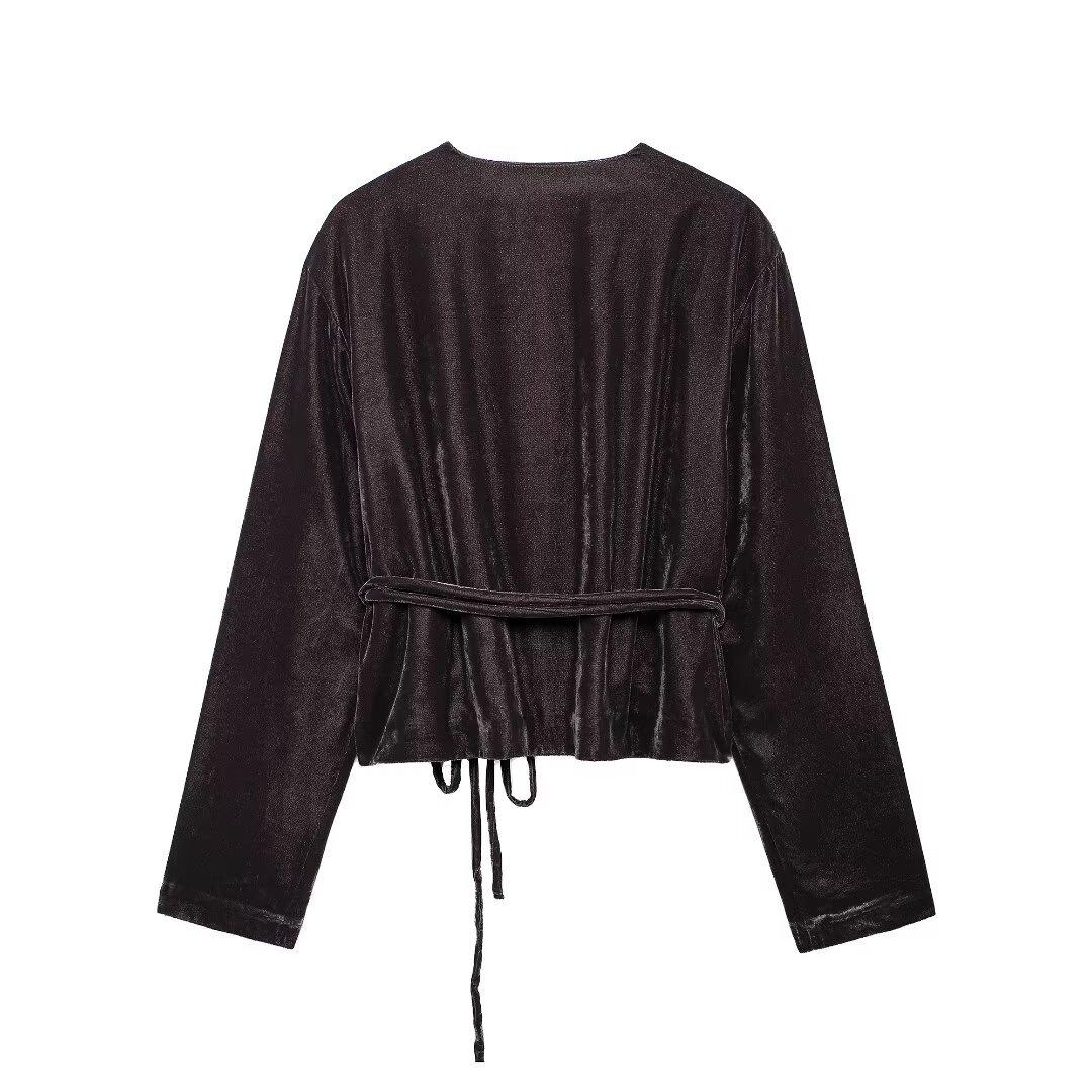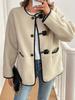 Europa y Estados Unidos venta al por mayor 2024 invierno nuevo abrigo de terciopelo de doble botonadura para mujer retro casual versátil con cuello en V y manga larga