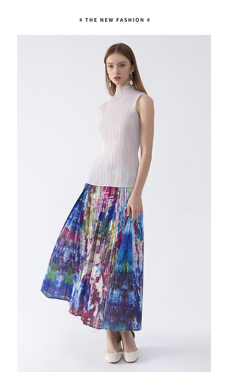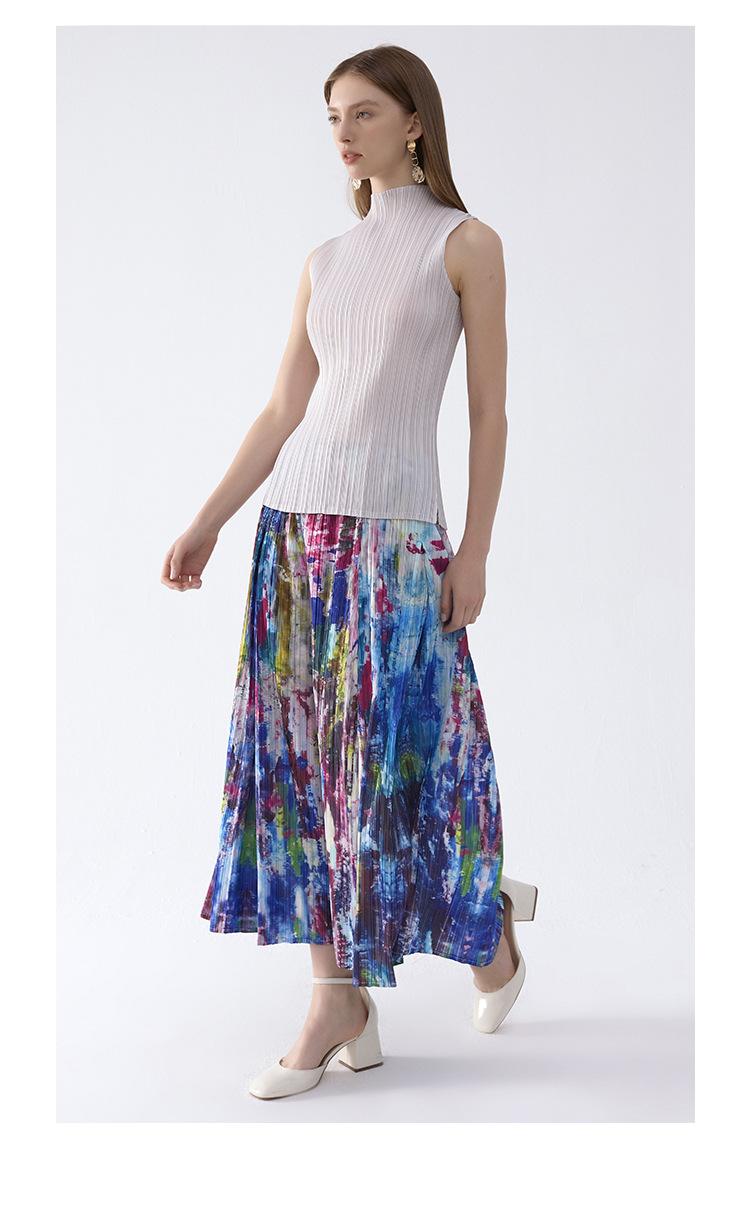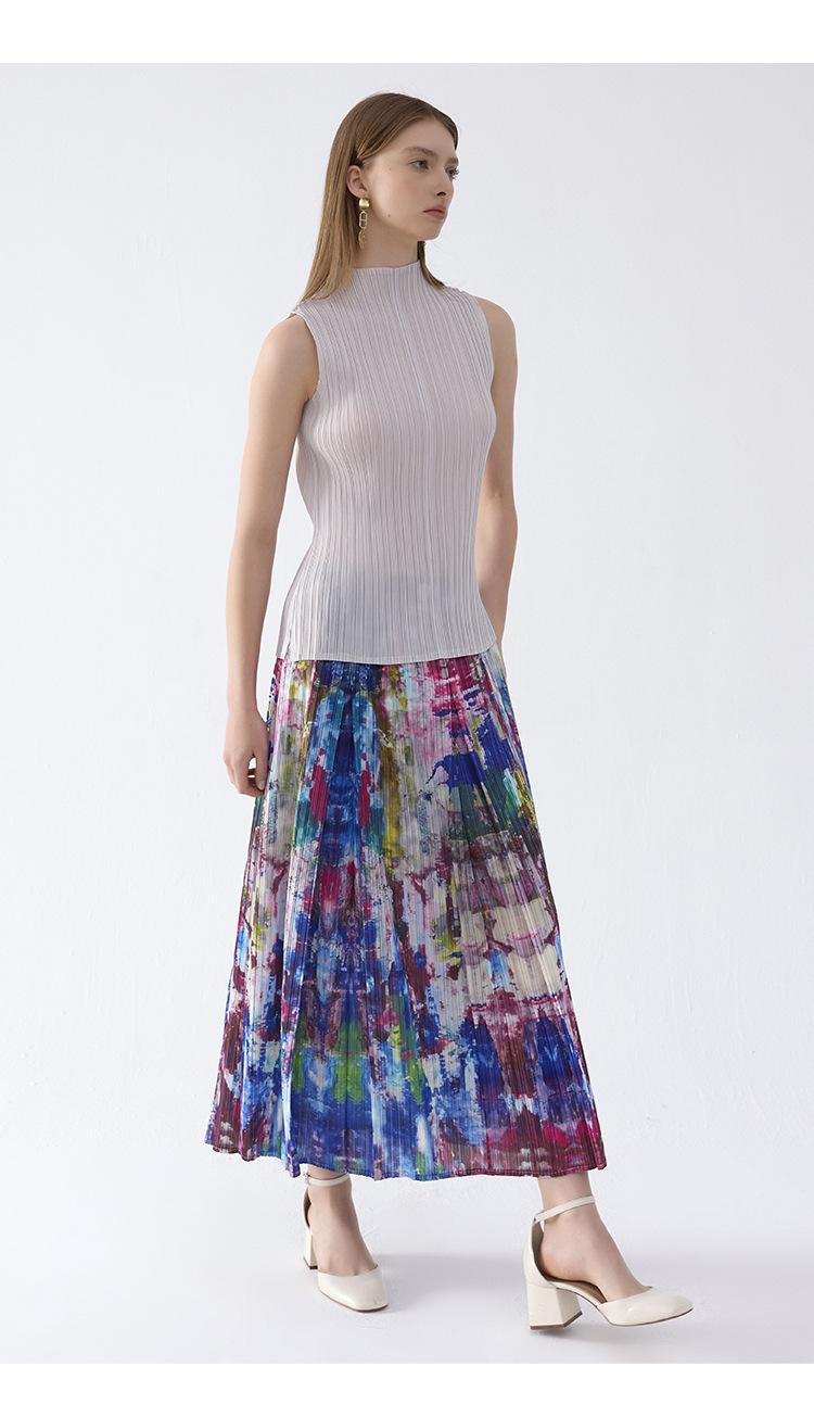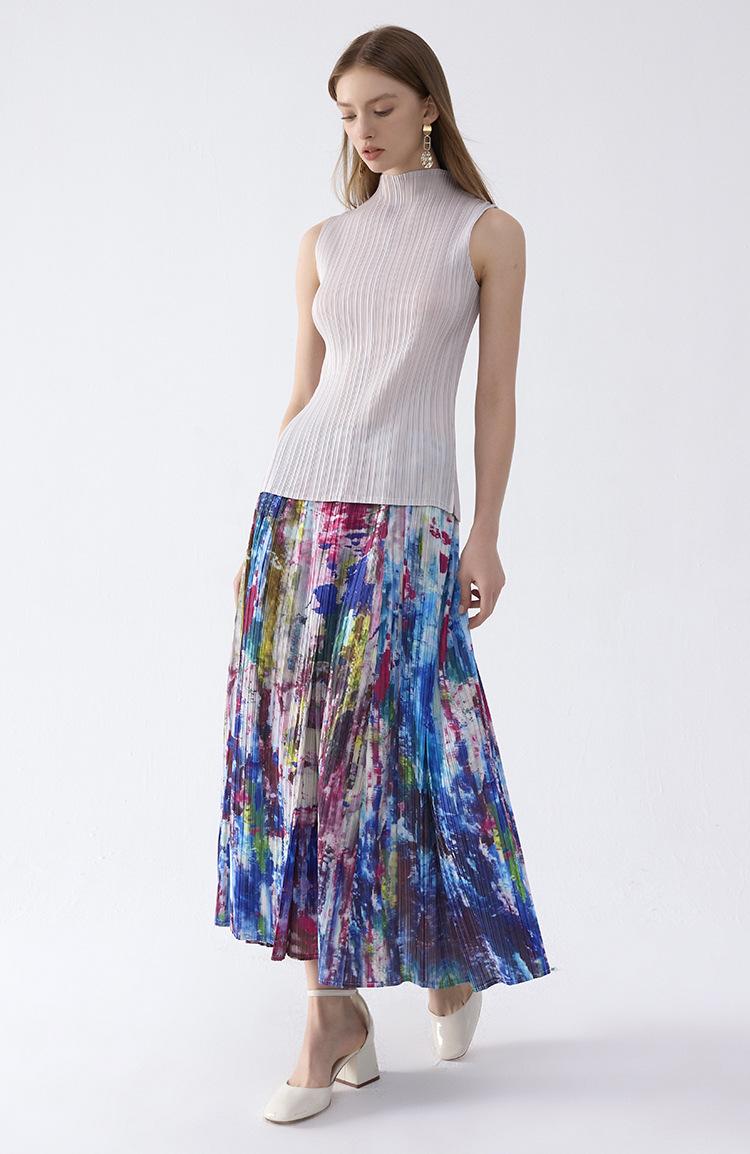 Falda Estampada con Salpicaduras de Tinta para Mujer 2025 Nueva Falda Línea A Adelgazante de Cintura Alta Primavera Retro Nicho Personalizado con Cintura Holgada