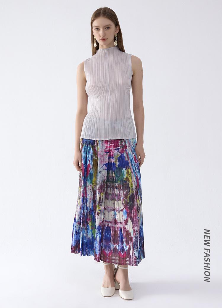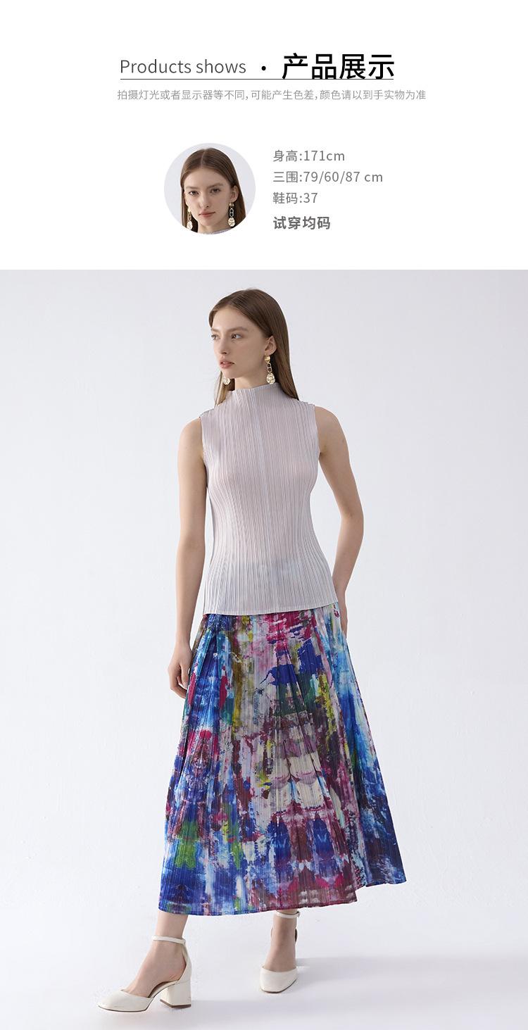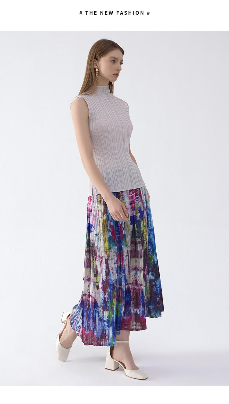 Falda Estampada con Salpicaduras de Tinta para Mujer 2025 Nueva Falda Línea A Adelgazante de Cintura Alta Primavera Retro Nicho Personalizado con Cintura Holgada