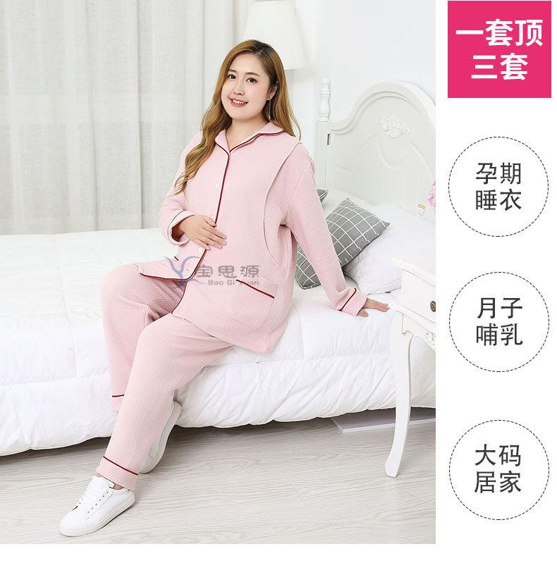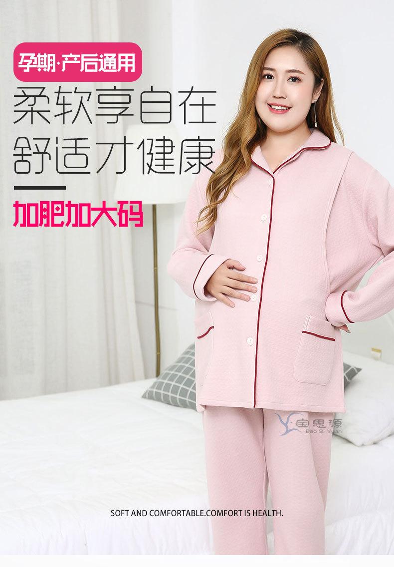 Ropa de Maternidad de Talla Grande Estilo Otoño e Invierno Conjunto de Pijama de Lactancia de Capa de Aire Engrosada 150-300 jin 3XL-6XL