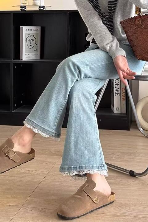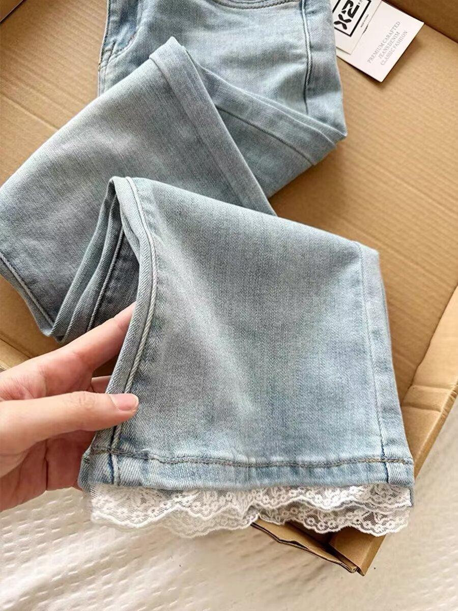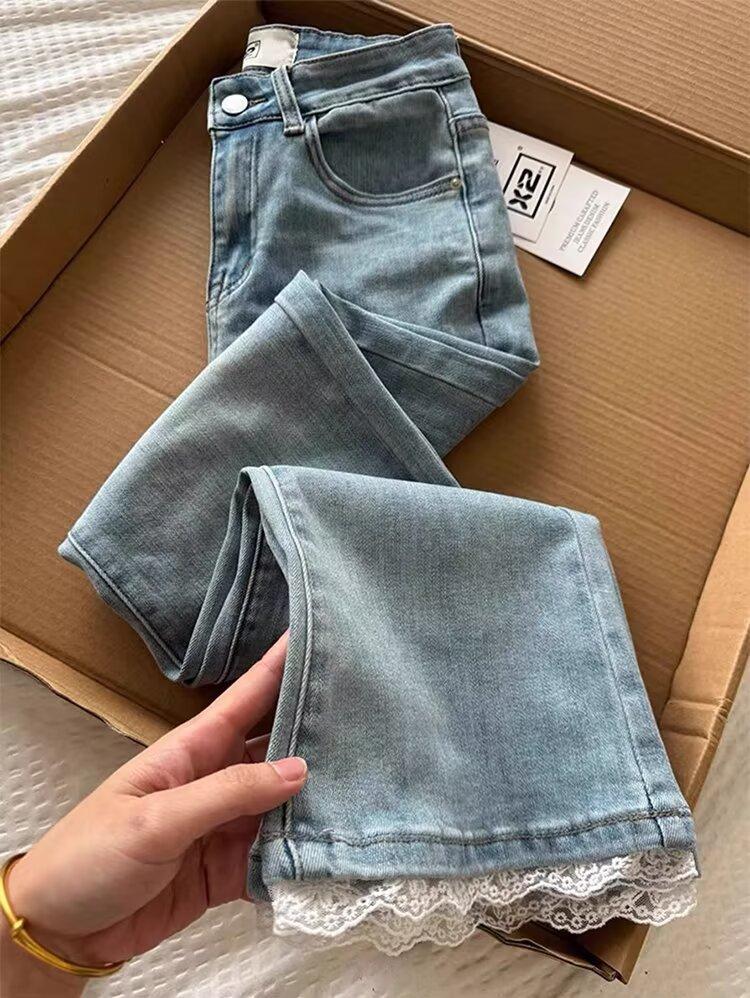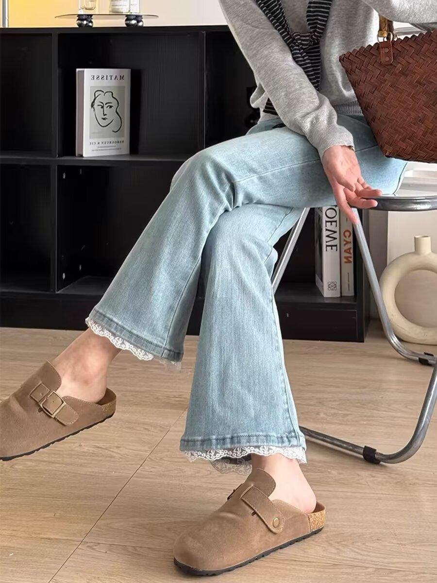 Jeans Micro Acampanados para Mujer 2025 Verano Nuevo Estilo Coreano Retro Elásticos Cintura Alta Slim Rectos Nueve Puntos Pantalones Herradura