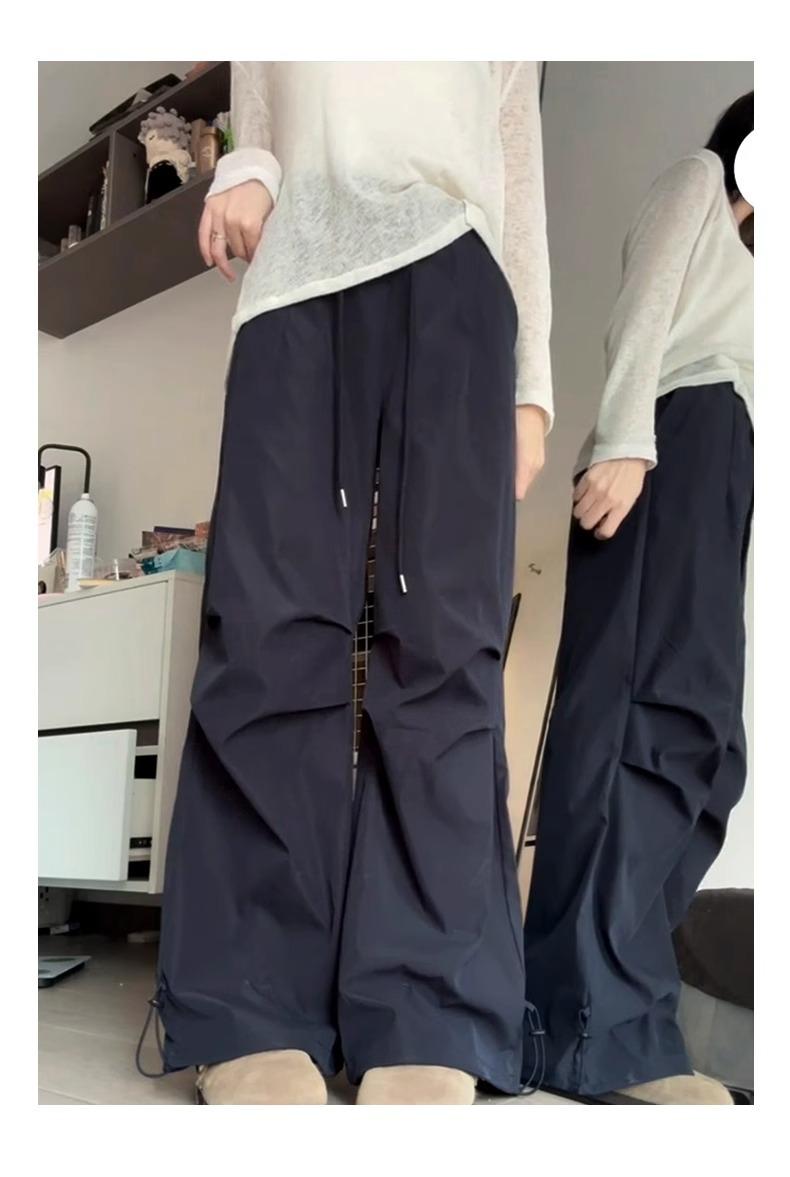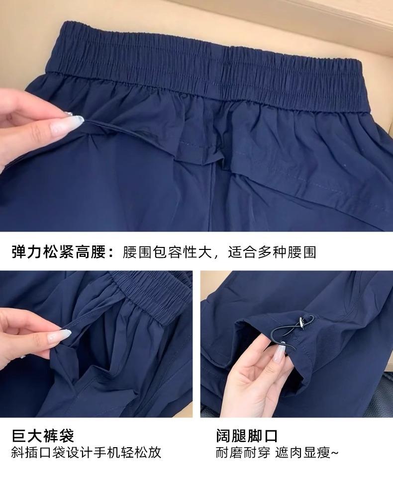Azul marino Peto de secado rápido para mujer Verano 2025 Nuevo Cintura alta Holgado Drapeado Casual Adelgazante Deportivo Pantalón de pierna ancha