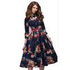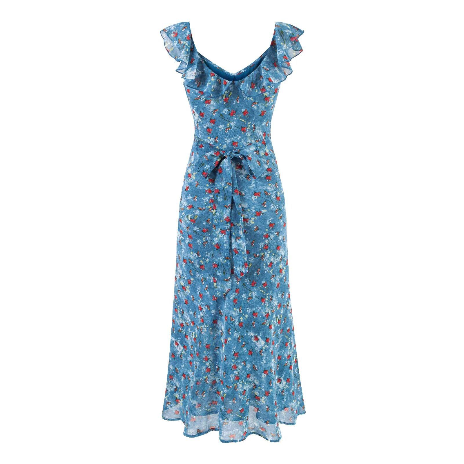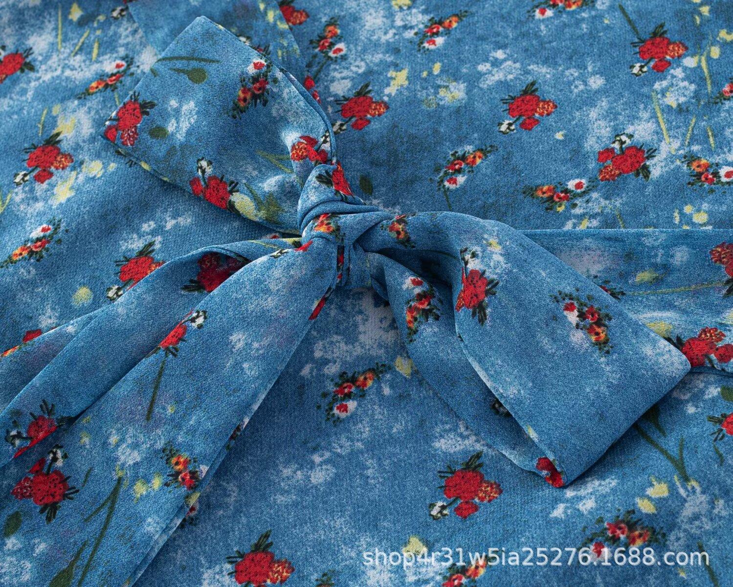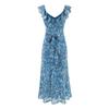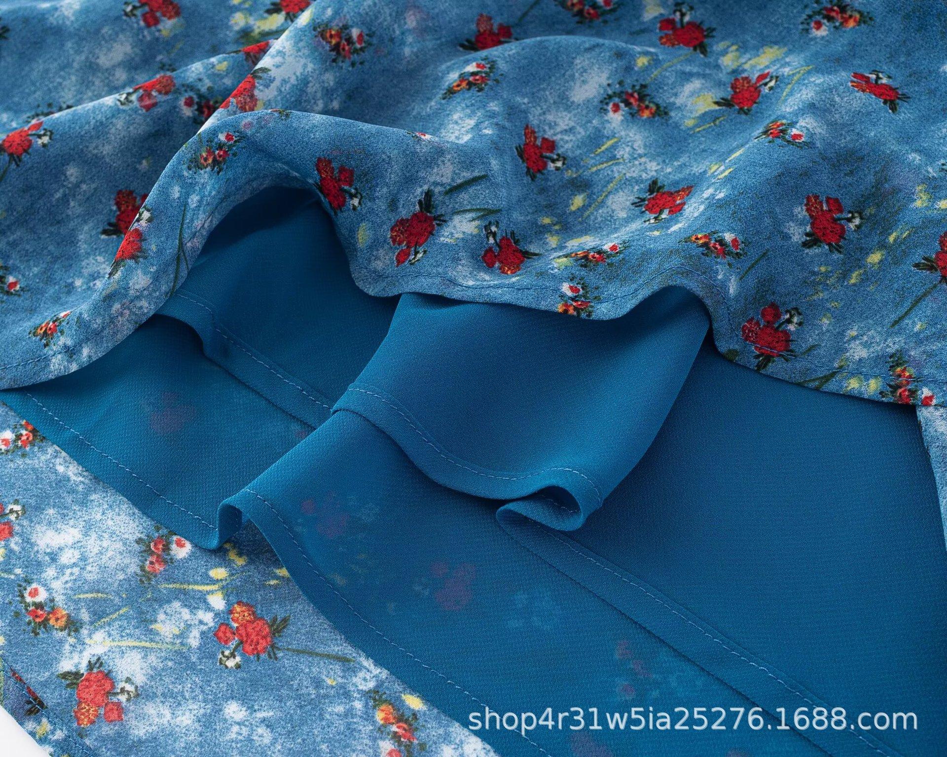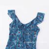 Venta al por mayor de Comercio Exterior Ropa de Mujer 2025 Verano Nuevo Estilo Vacacional Vestido Azul Estampado con Volantes en la Cintura
