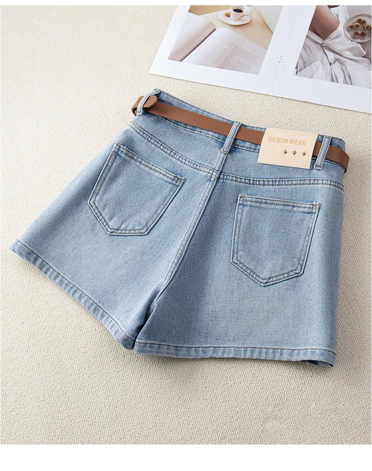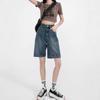 Shorts de Mezclilla Delgados de Verano para Mujer 2025 Nuevos Cintura Alta Línea A Ropa Exterior Adelgazantes Populares Pierna Ancha Largo a la Rodilla Pantalones Cortos