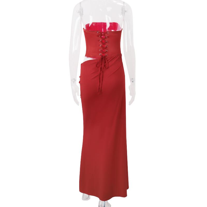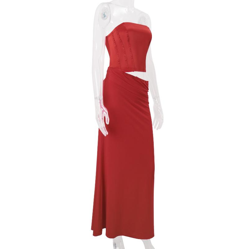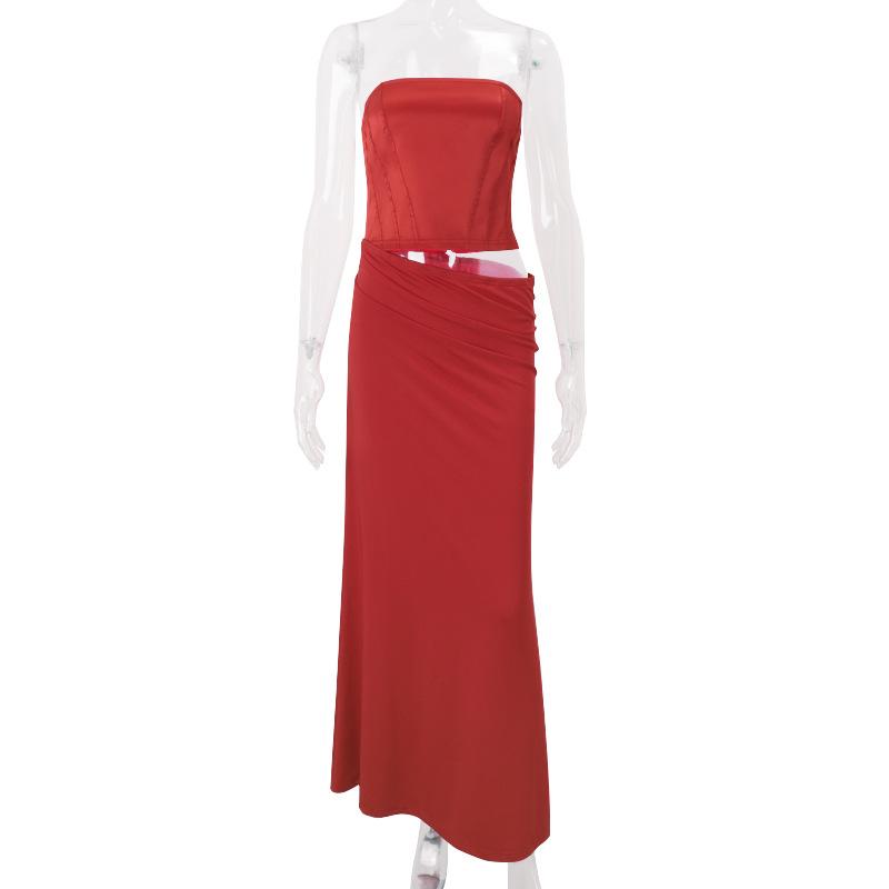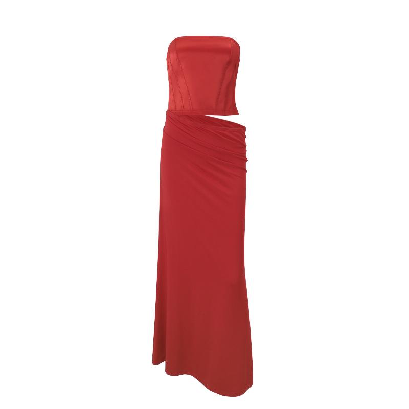 Ropa de mujer de estilo europeo y americano 2025 verano nueva moda sexy cuello palabra de honor tirantes tubo falso dos piezas vestido de cadera