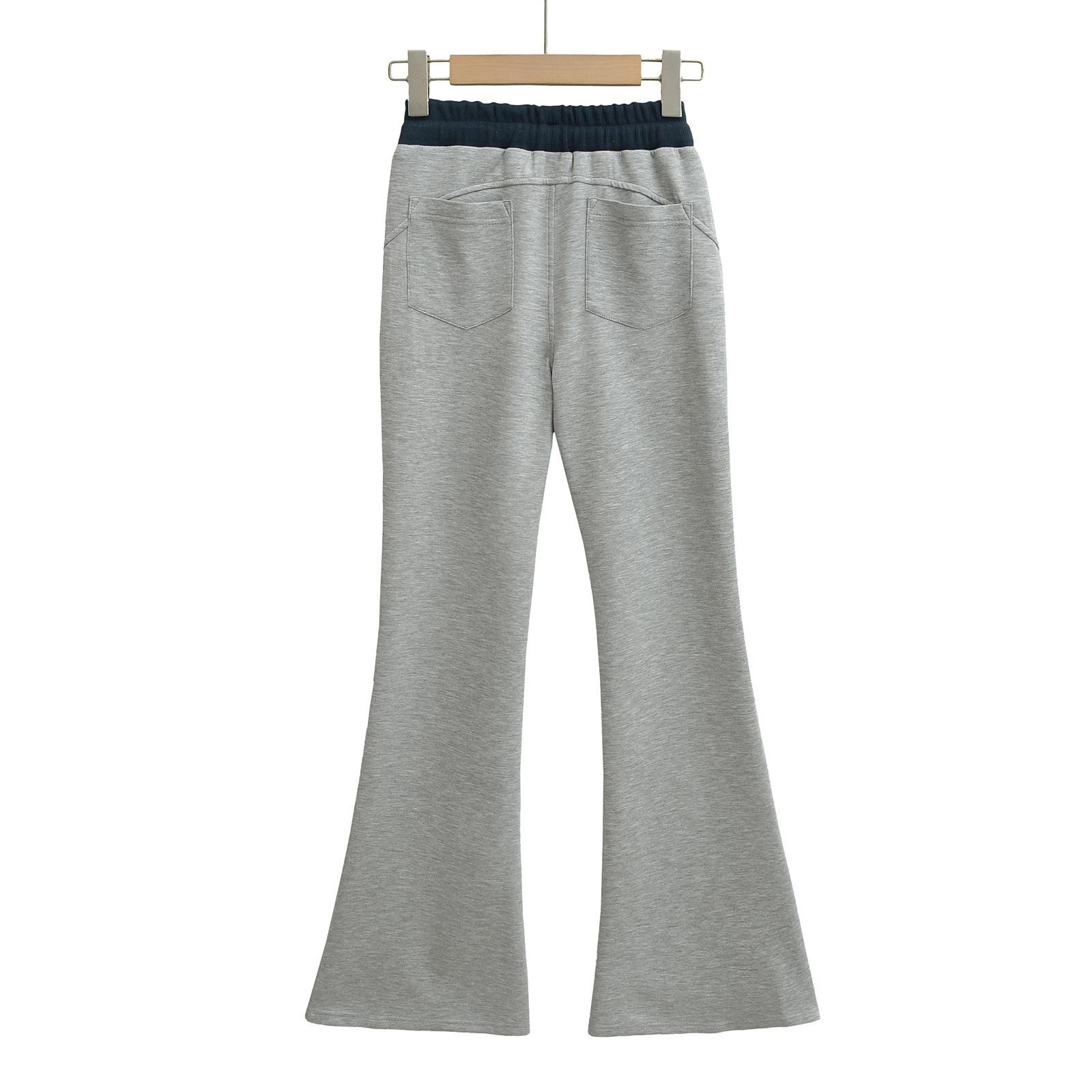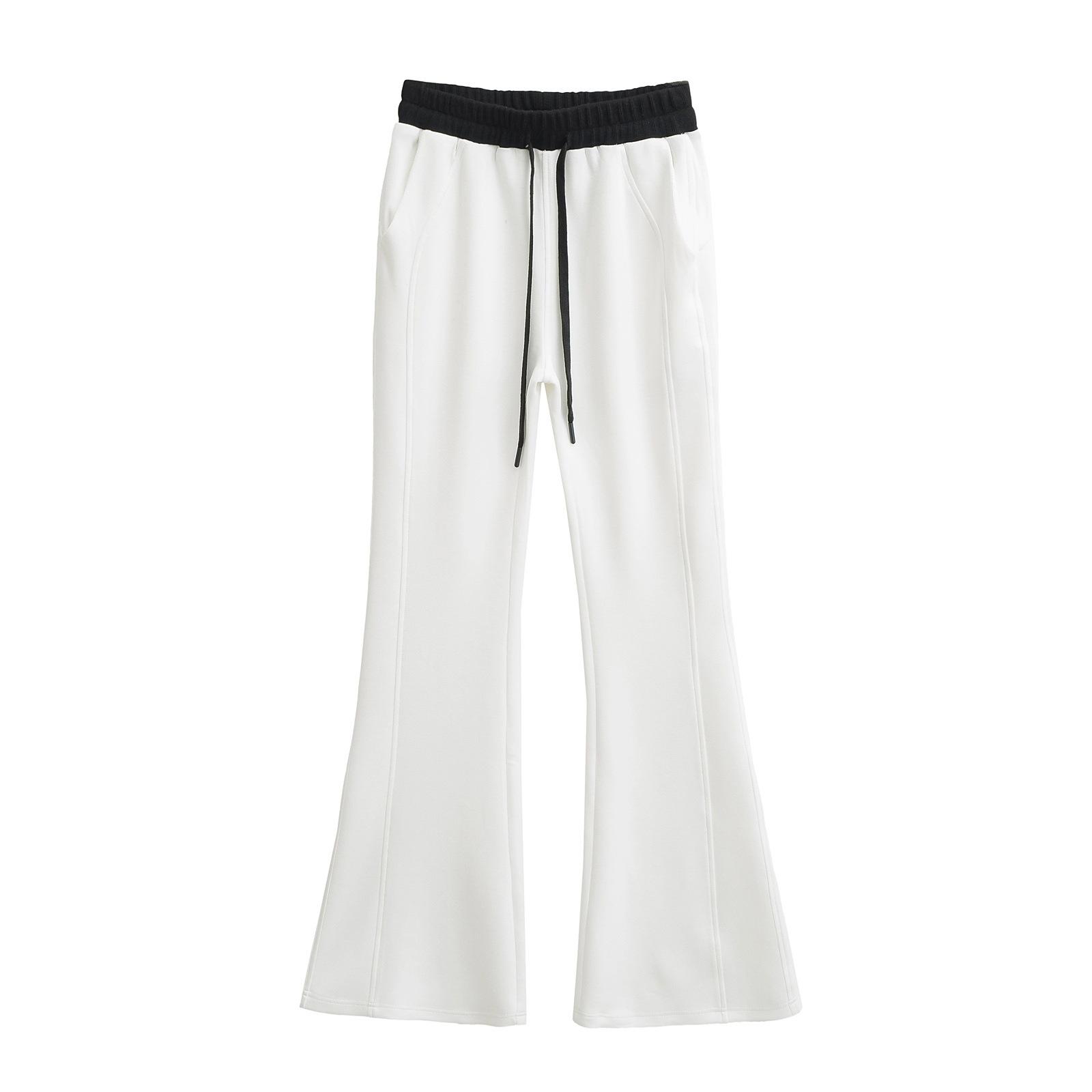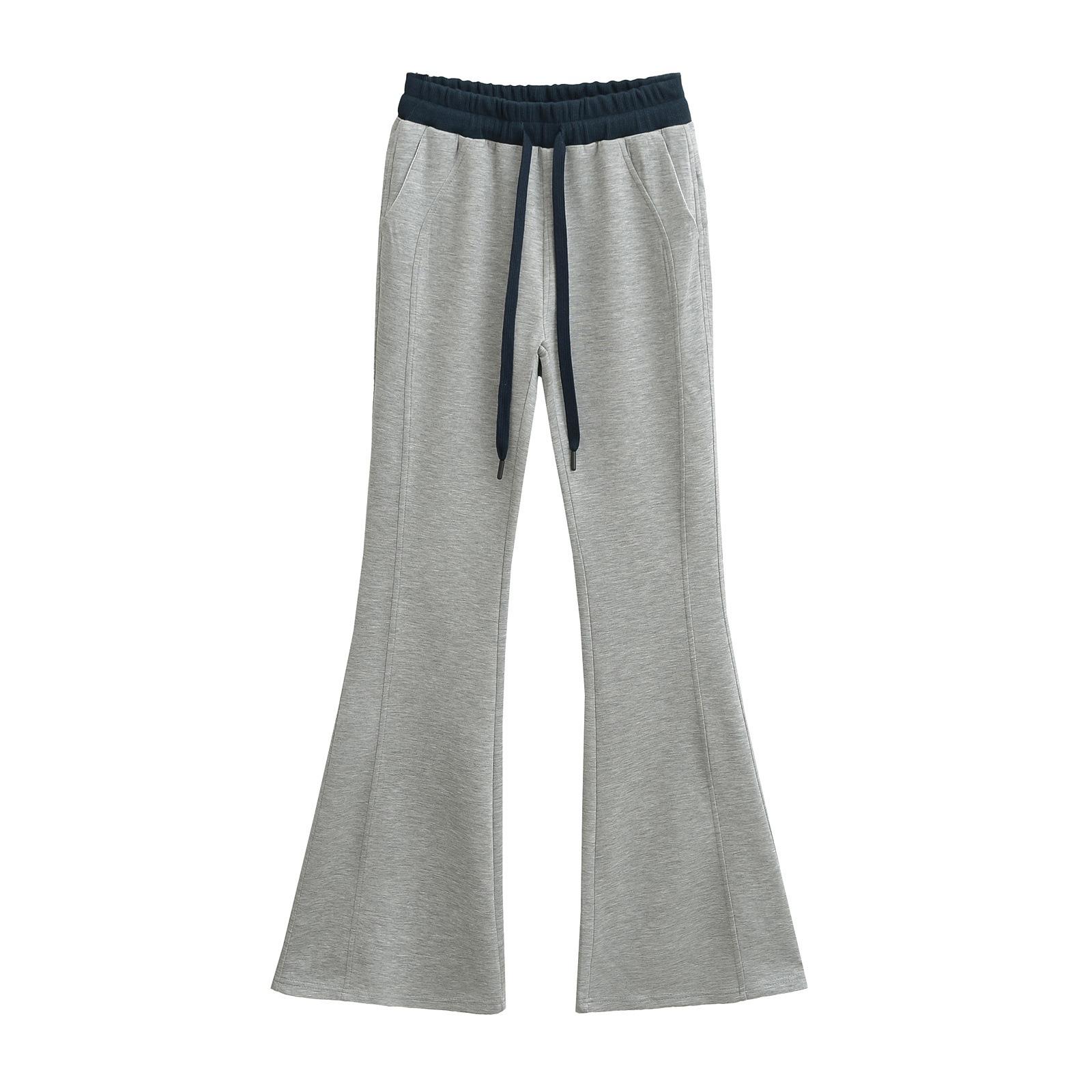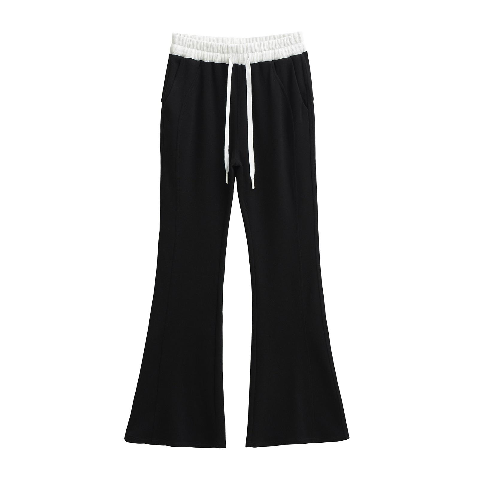 Pantalones Casuales Acampanados con Cordón de Cintura Alta y Bloque de Color de Moda para Mujer, Primavera/Verano 2025 Nueva Moda Pantalones Deportivos Ajustados
