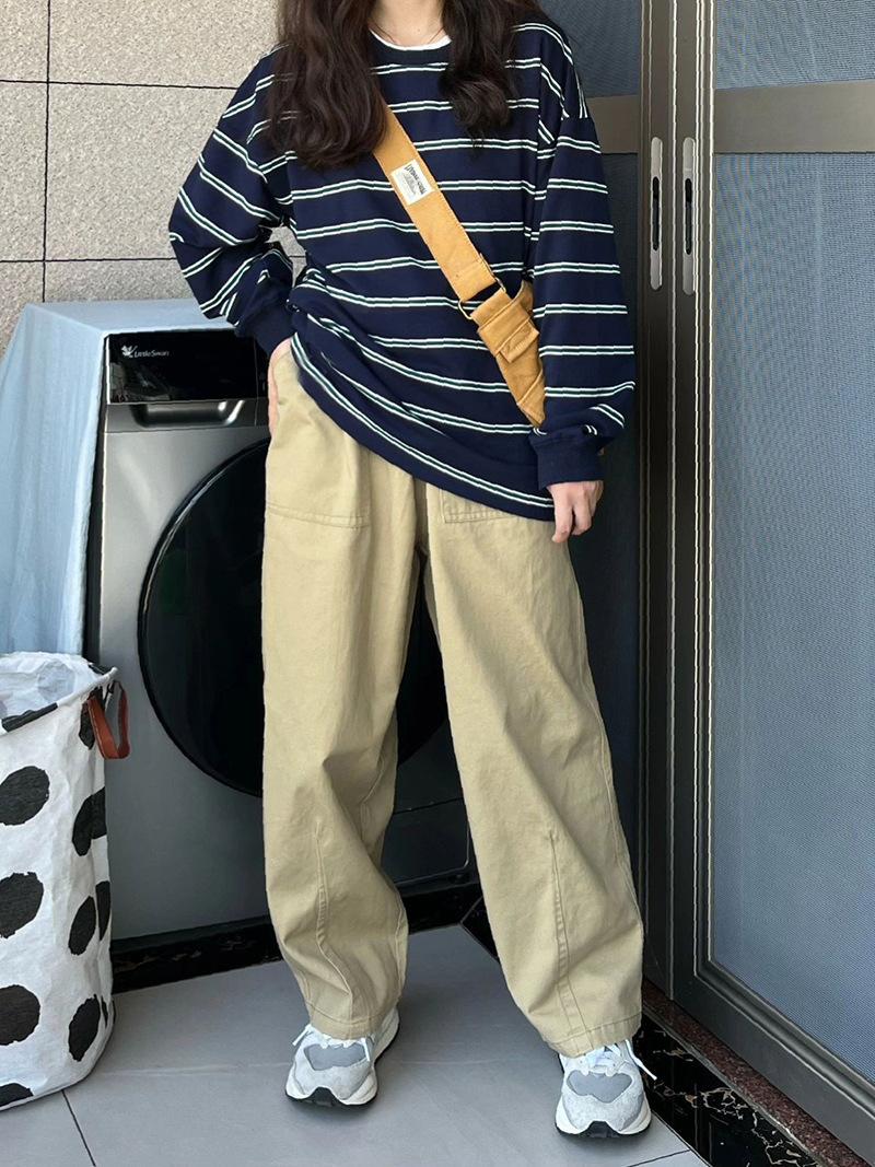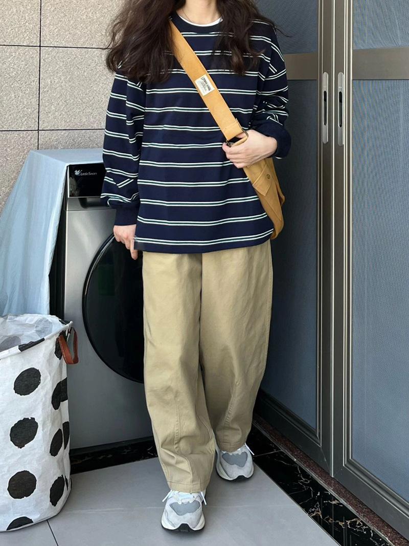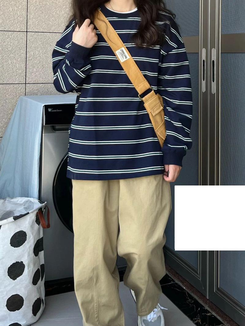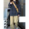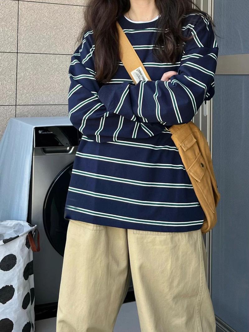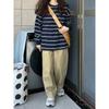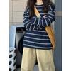 2025 Otoño/Invierno Nuevo Sudadera Delgada a Rayas Estilo Coreano Chic para Mujer, Talla Grande Holgada Vintage Manga Larga Top Trendy