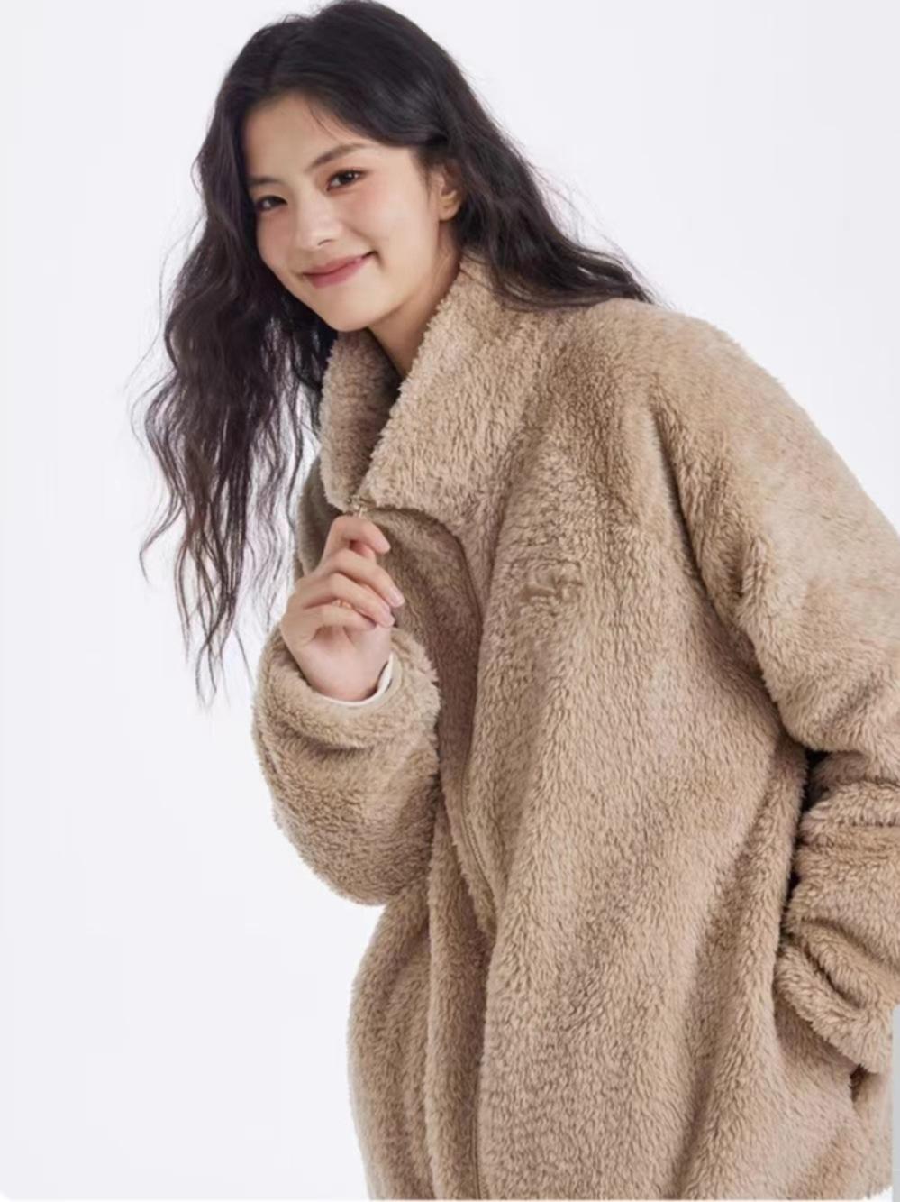 Chaqueta de Forro Polar Estilo Similar de Youujia para Mujer Otoño e Invierno Nueva Moda Versátil Cálida Antiestática Manga Larga Felpa